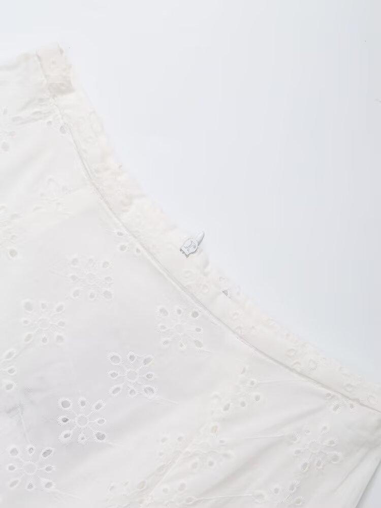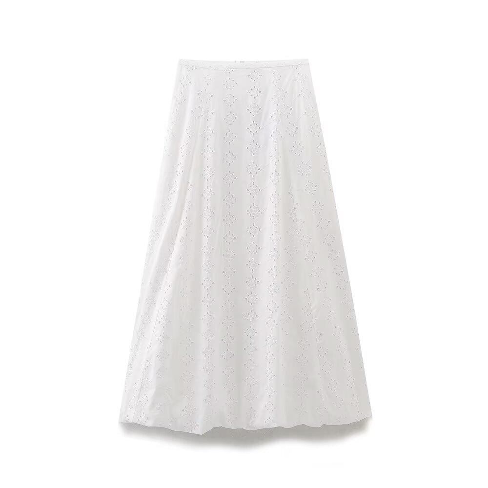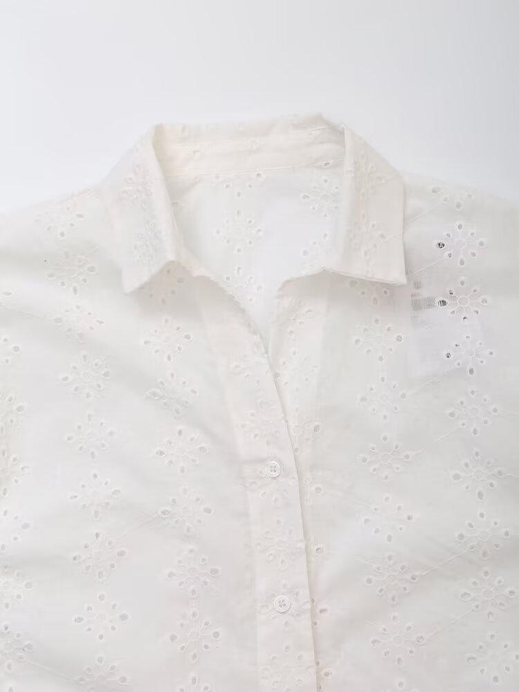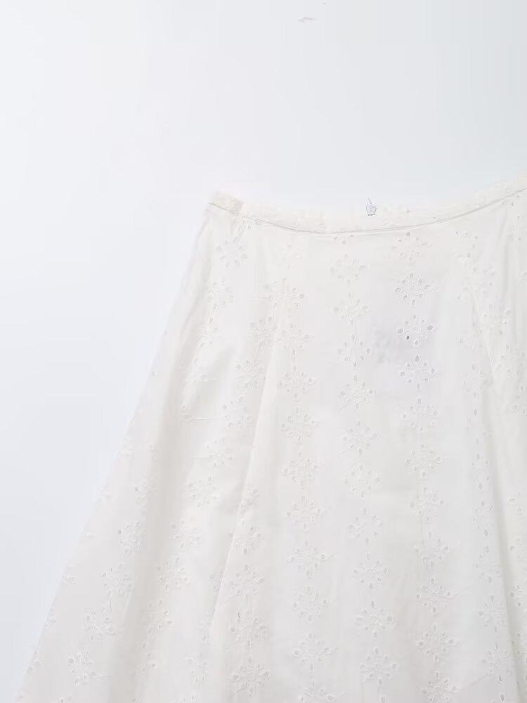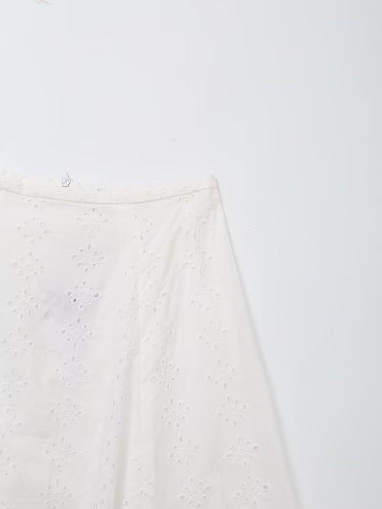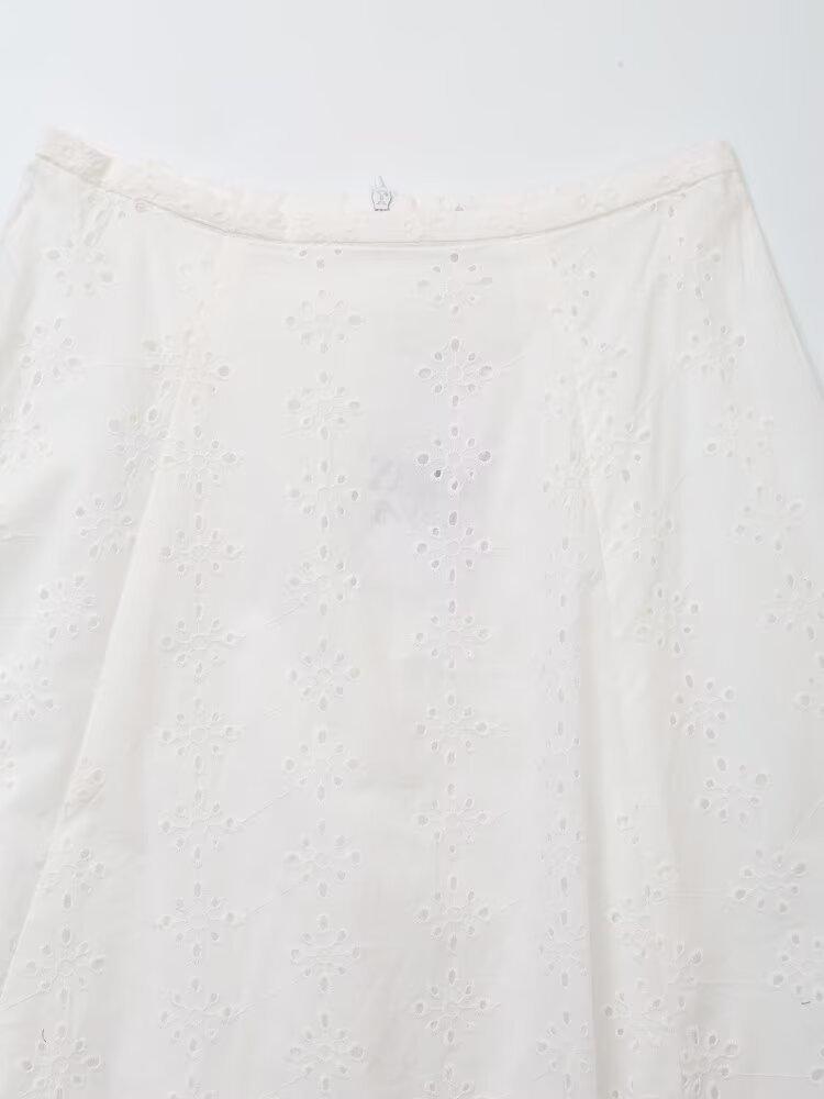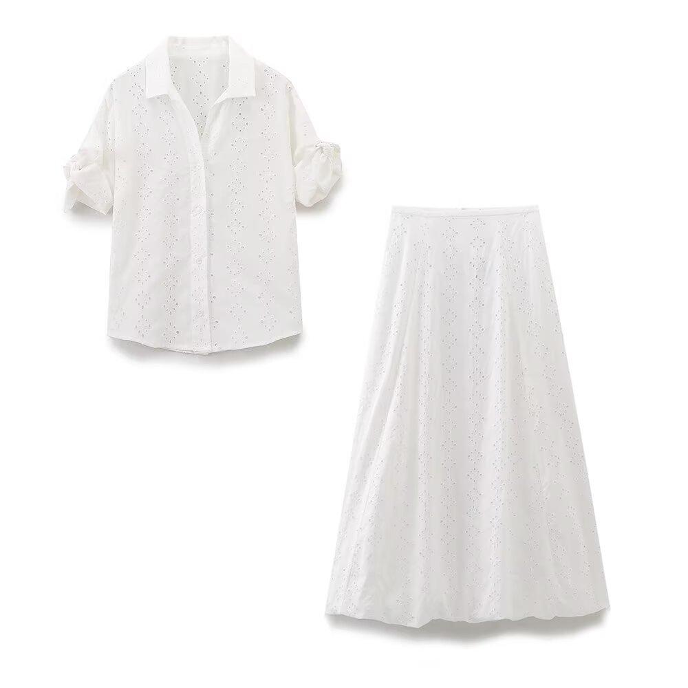 Exportación Transfronteriza Ropa de Mujer 2025 Primavera y Verano Estilo Europeo y Americano Camisa Bordada Calada + Traje de Falda para Mujer E74117/8