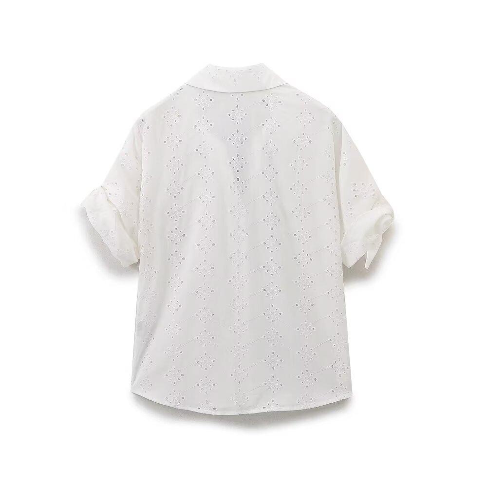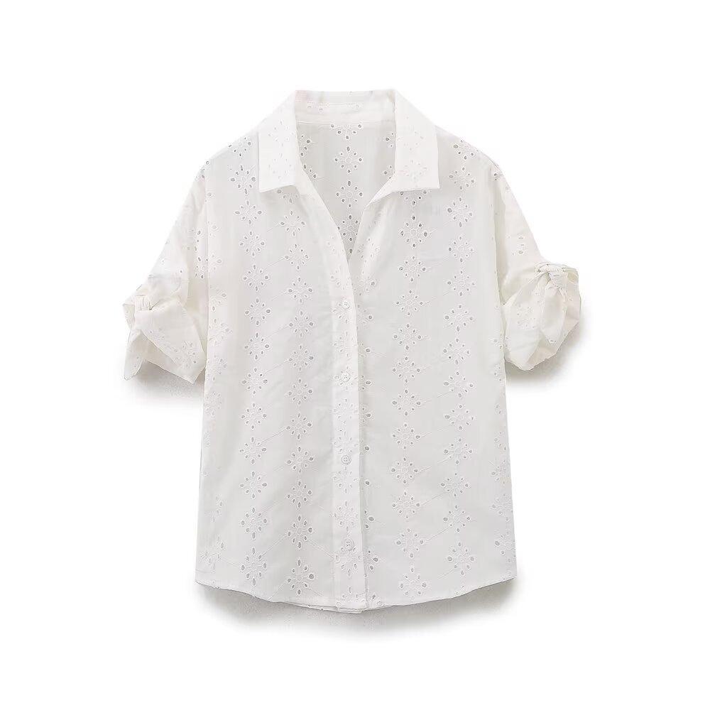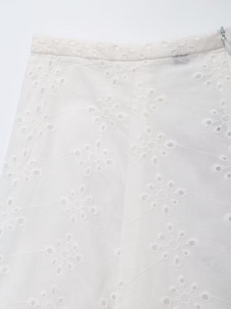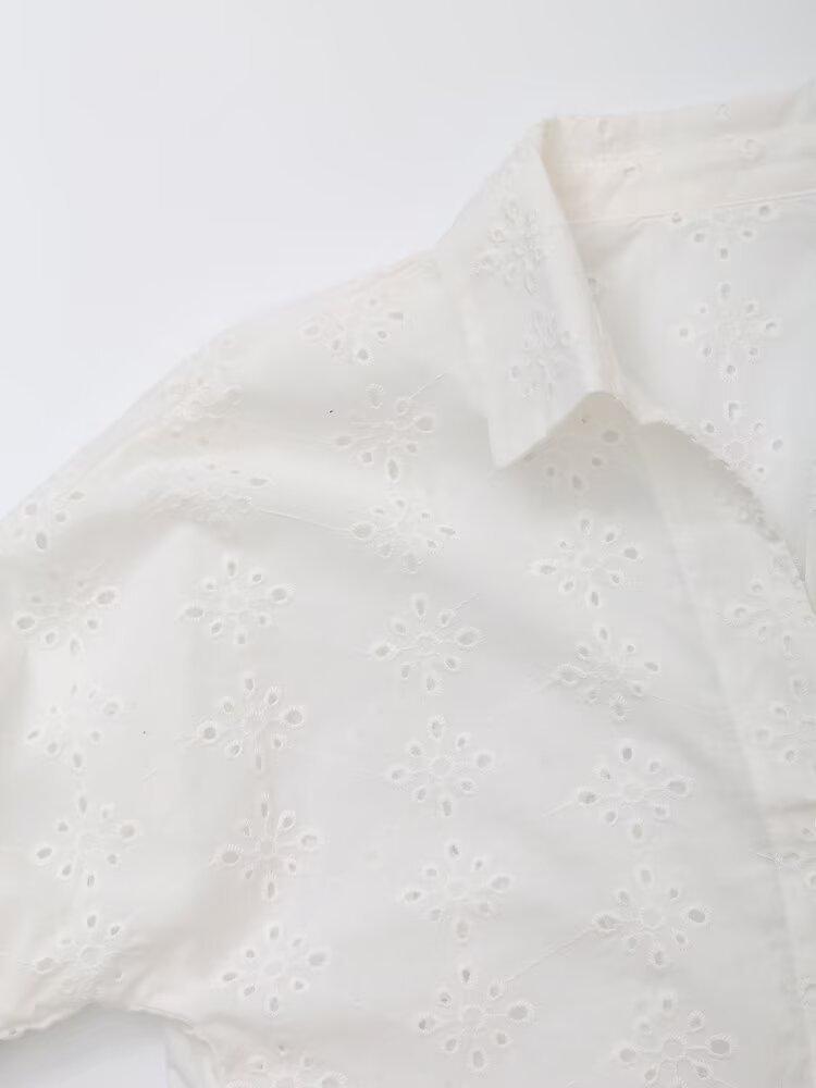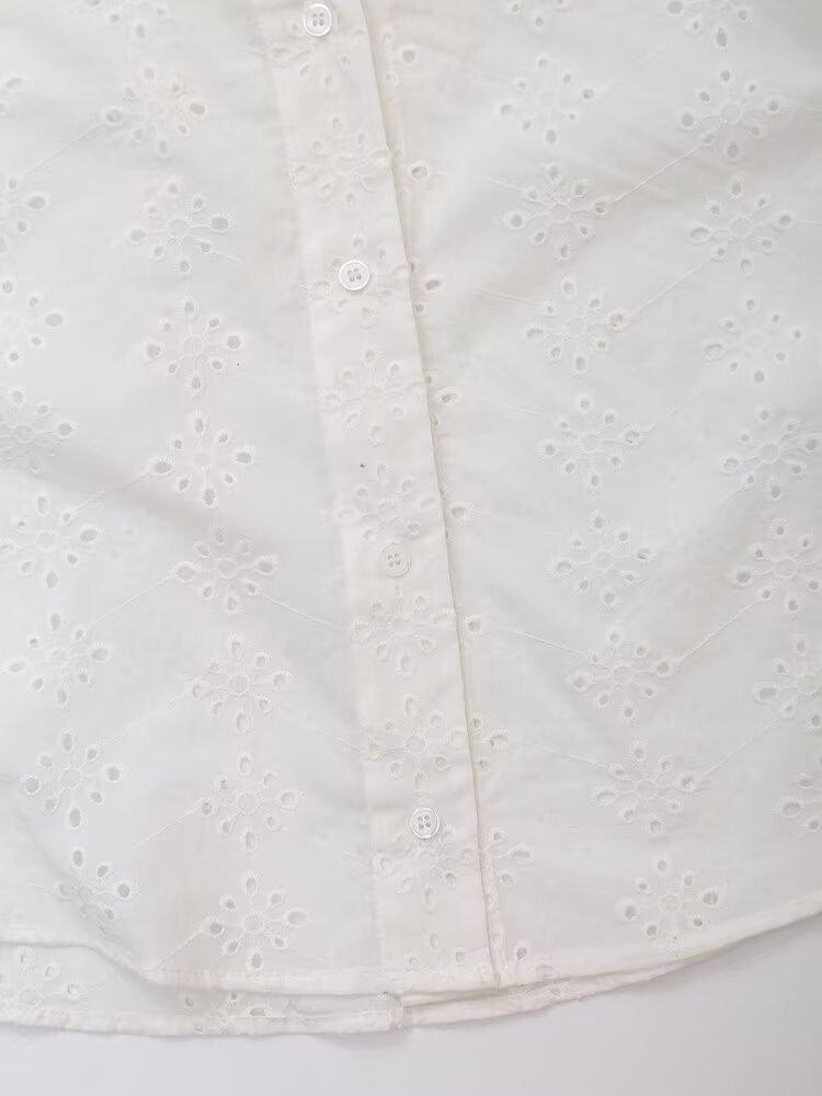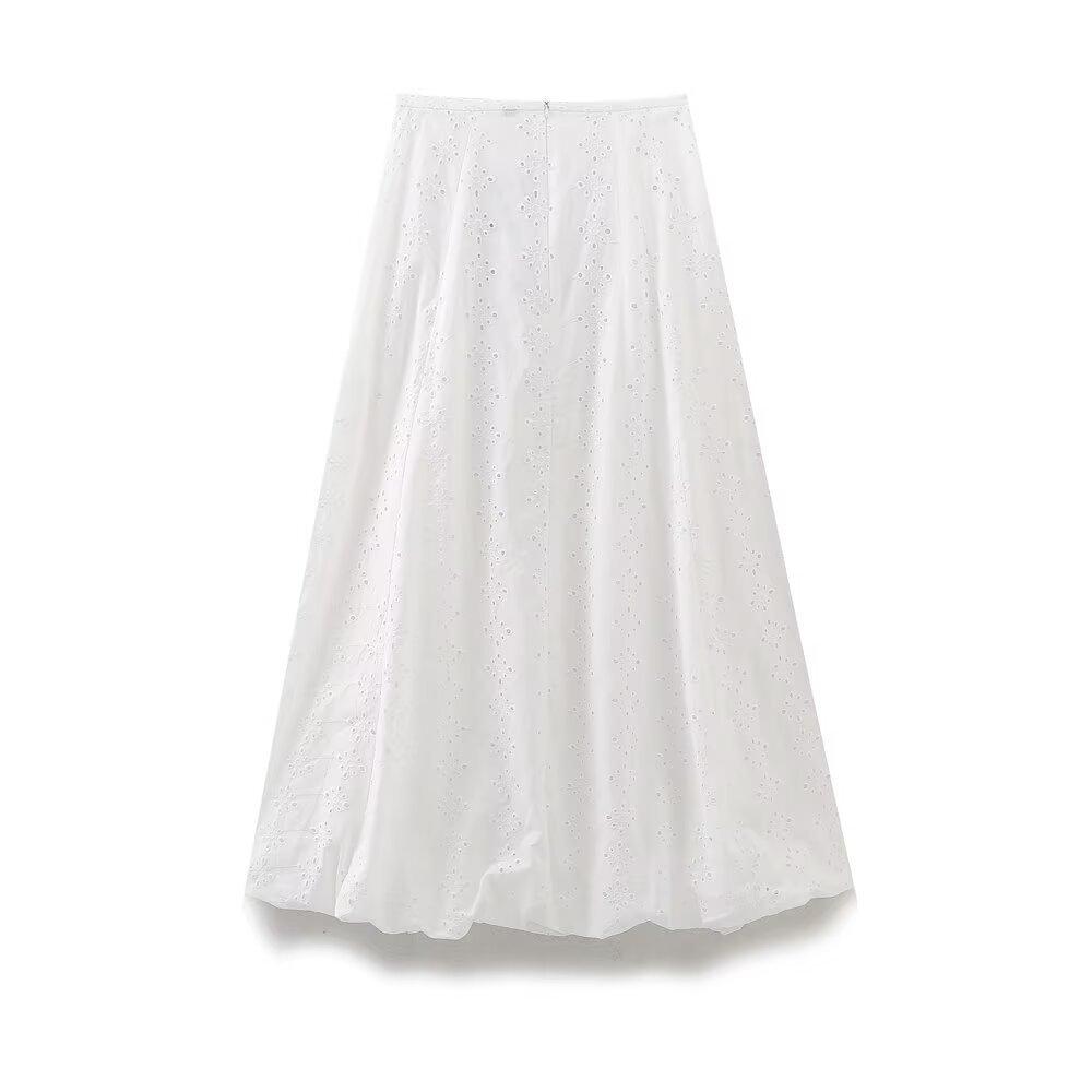 Exportación Transfronteriza Ropa de Mujer 2025 Primavera y Verano Estilo Europeo y Americano Camisa Bordada Calada + Traje de Falda para Mujer E74117/8