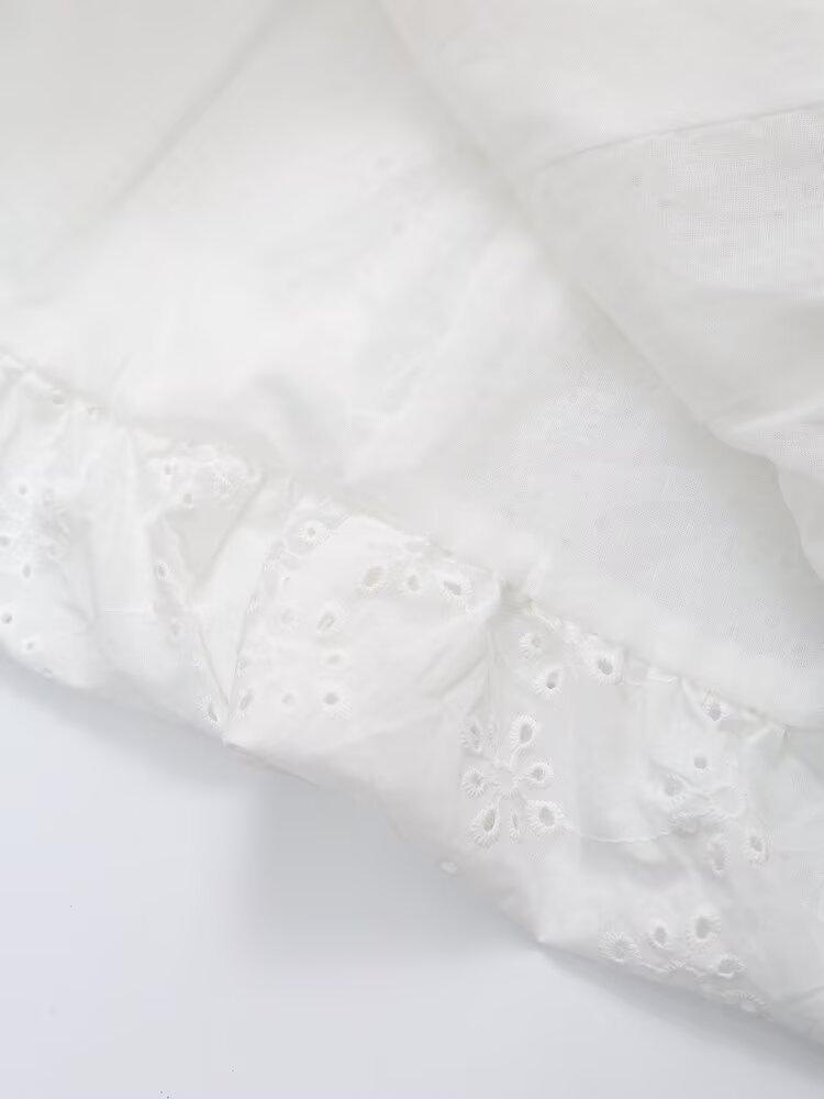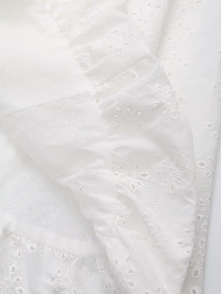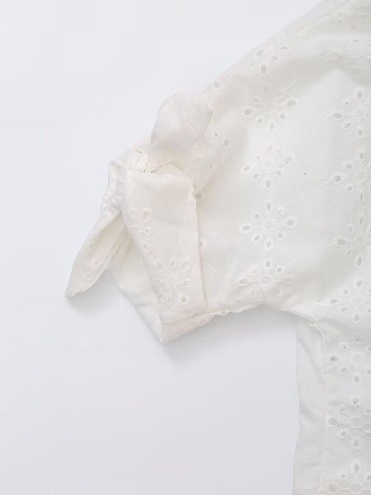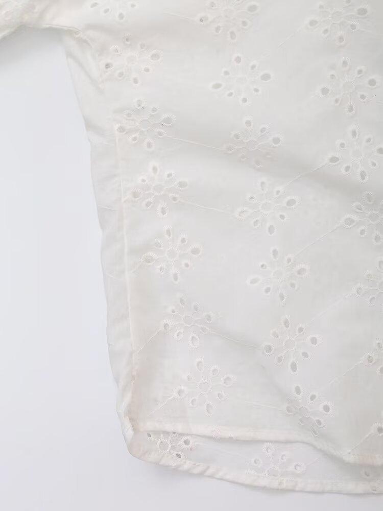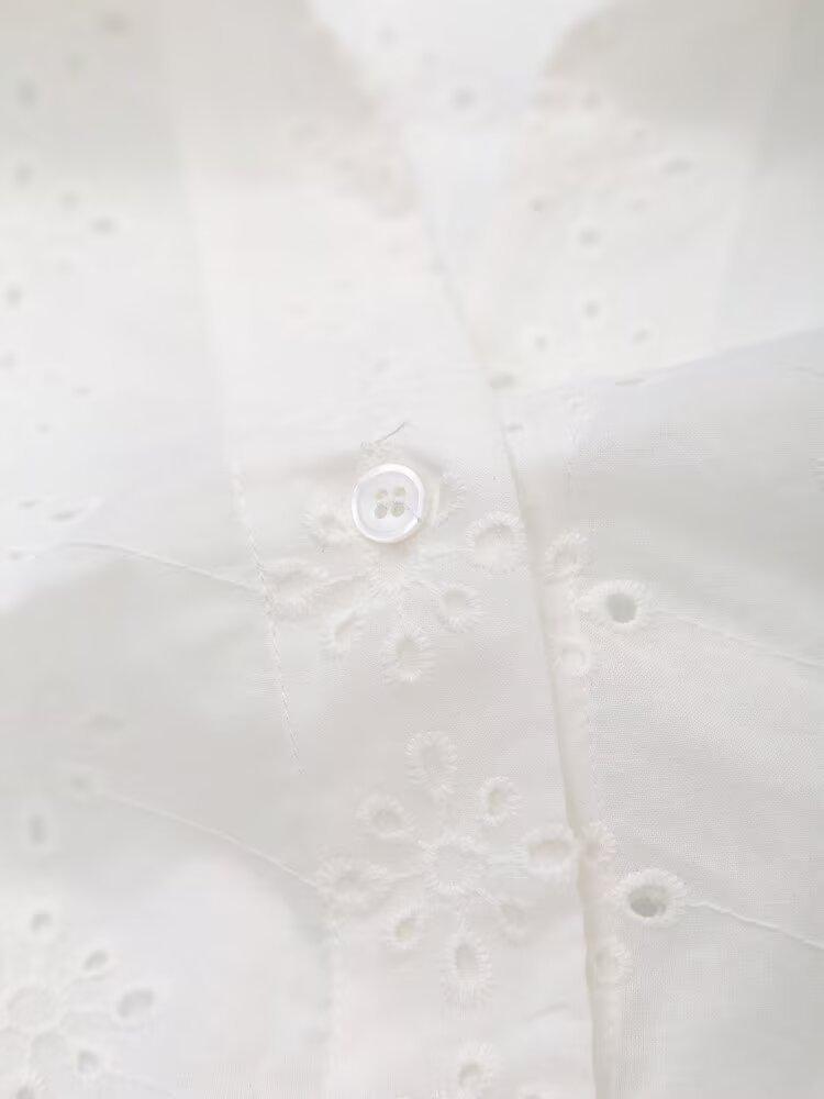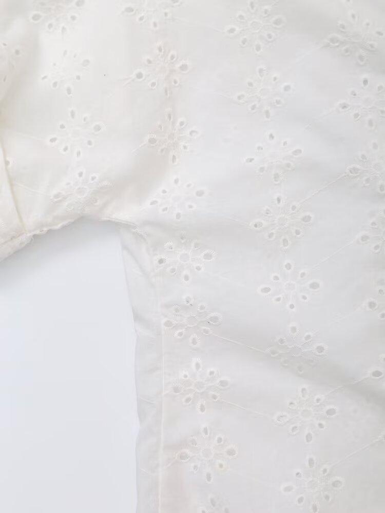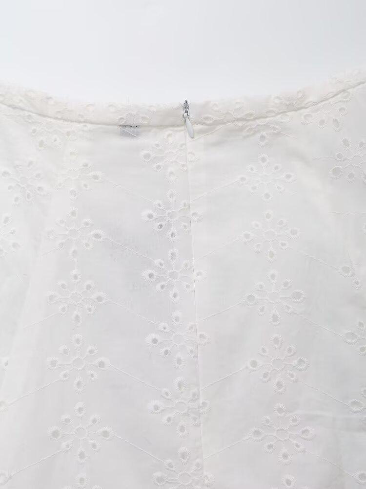 Exportación Transfronteriza Ropa de Mujer 2025 Primavera y Verano Estilo Europeo y Americano Camisa Bordada Calada + Traje de Falda para Mujer E74117/8