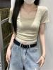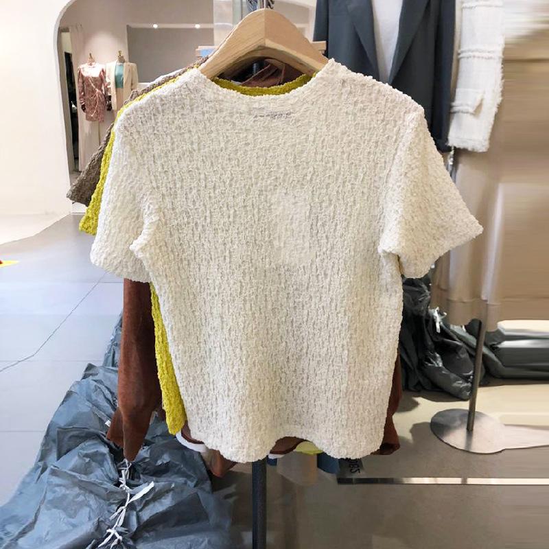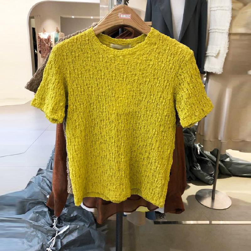 Nueva Llegada en Verano 2025~Diseño Coreano para Mujer Camiseta de Manga Corta Plisada de Color Puro Look Simple Adelgazante Top Pulóver Trendy