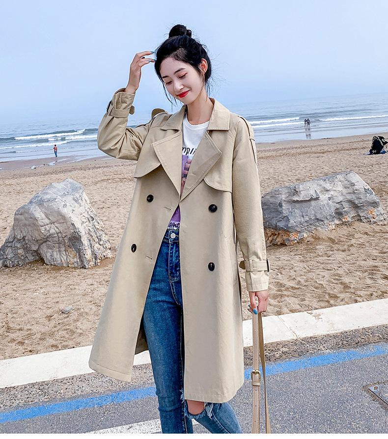 Abrigo Truco de Largo Medio de Color Sólido Estilo Británico para Hombres Pequeños Primavera y Otoño Nuevo Abrigo Truco Holgado Estilo Coreano Otoño Mujeres