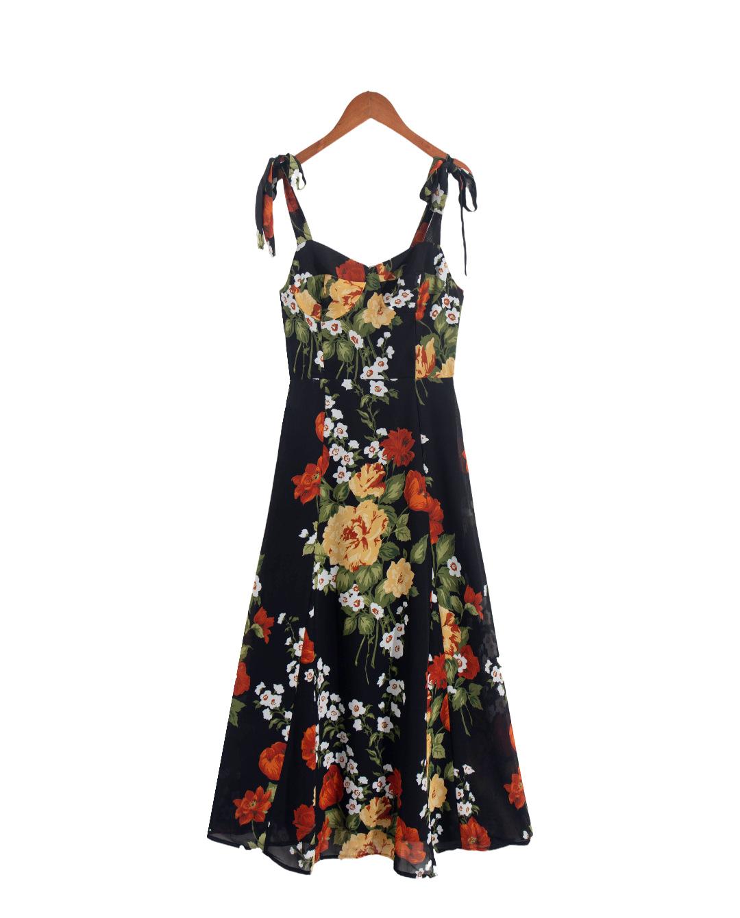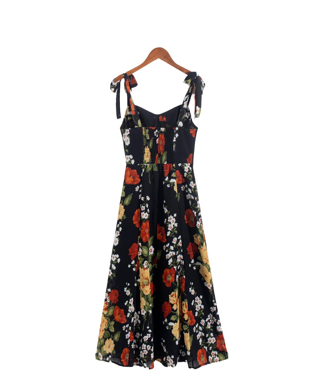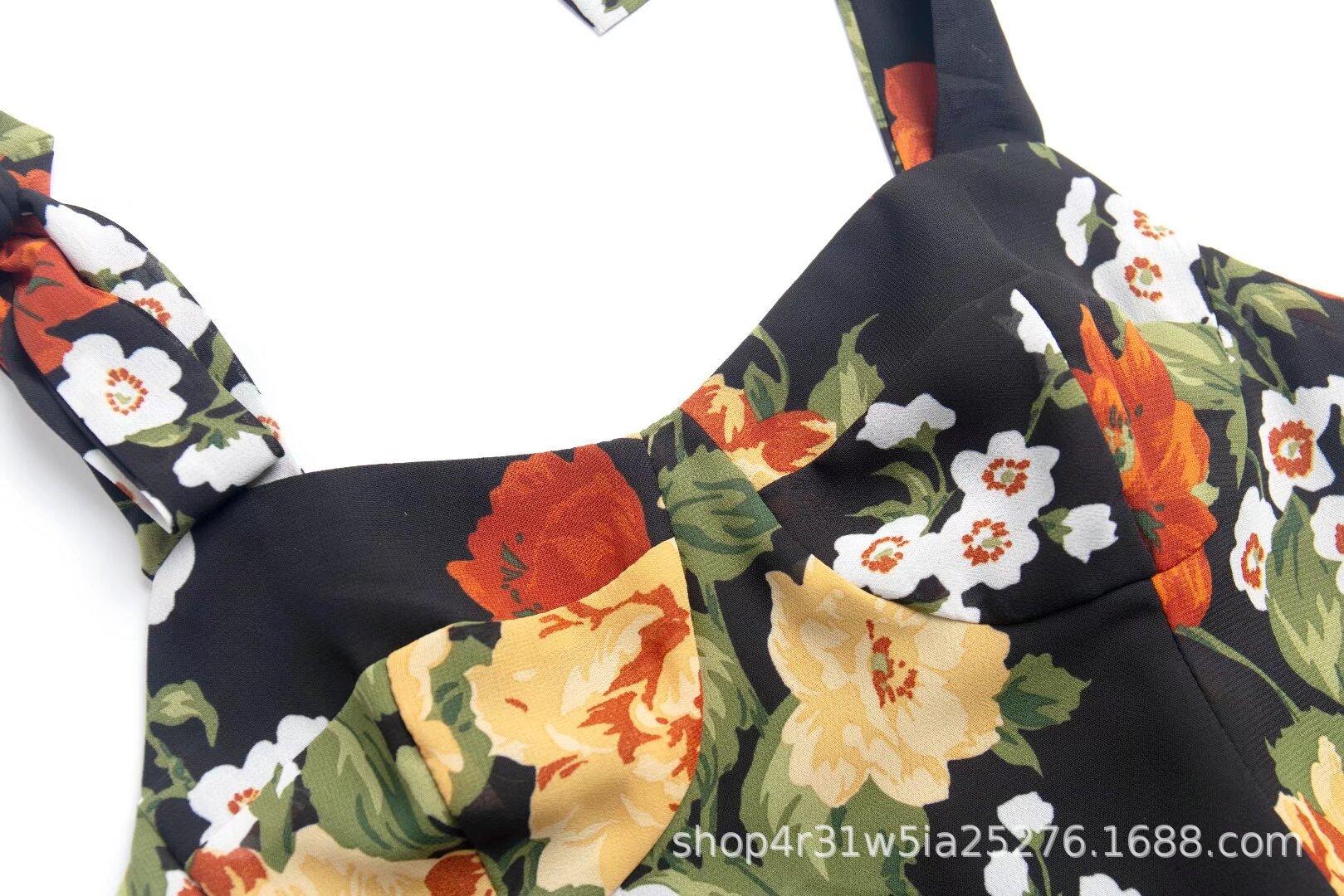 Venta al por mayor transfronteriza Nuevo vestido delgado adelgazante versátil francés estampado de tirantes para mujer