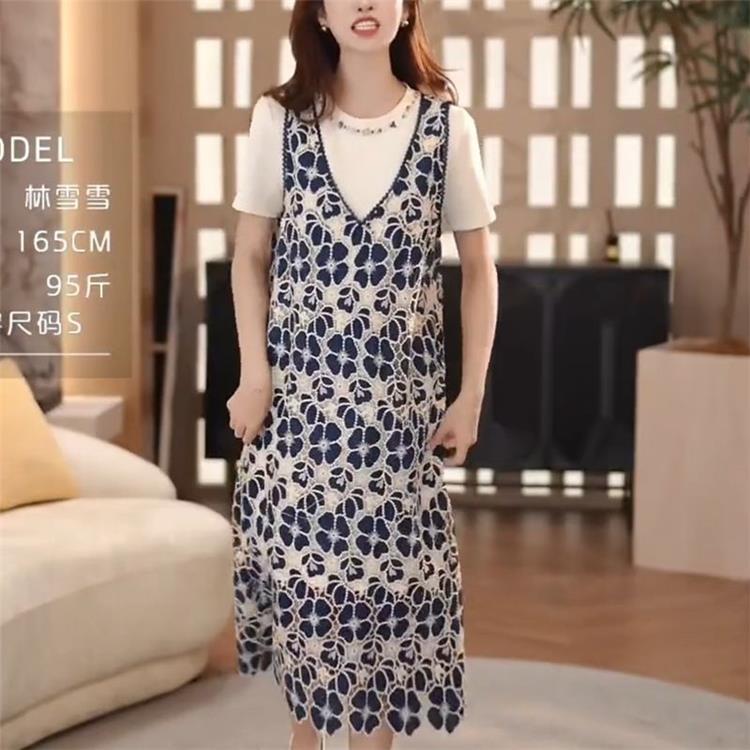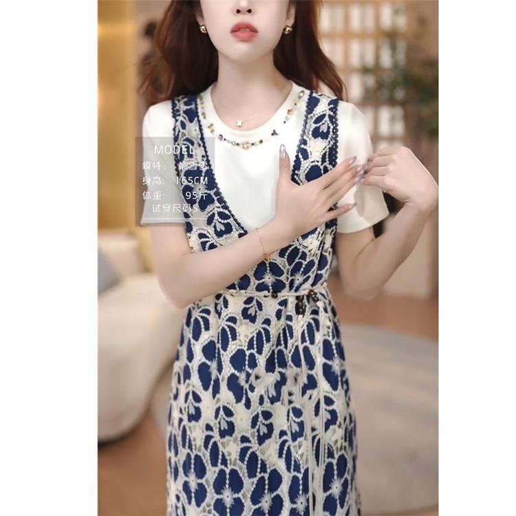 Conjunto de Vestido de Dos Piezas 2025, Falda Estilo Verano Nuevo, Adelgazante, Moderno, Ropa de Mujer Floral de Alta Gama que Reduce la Edad