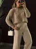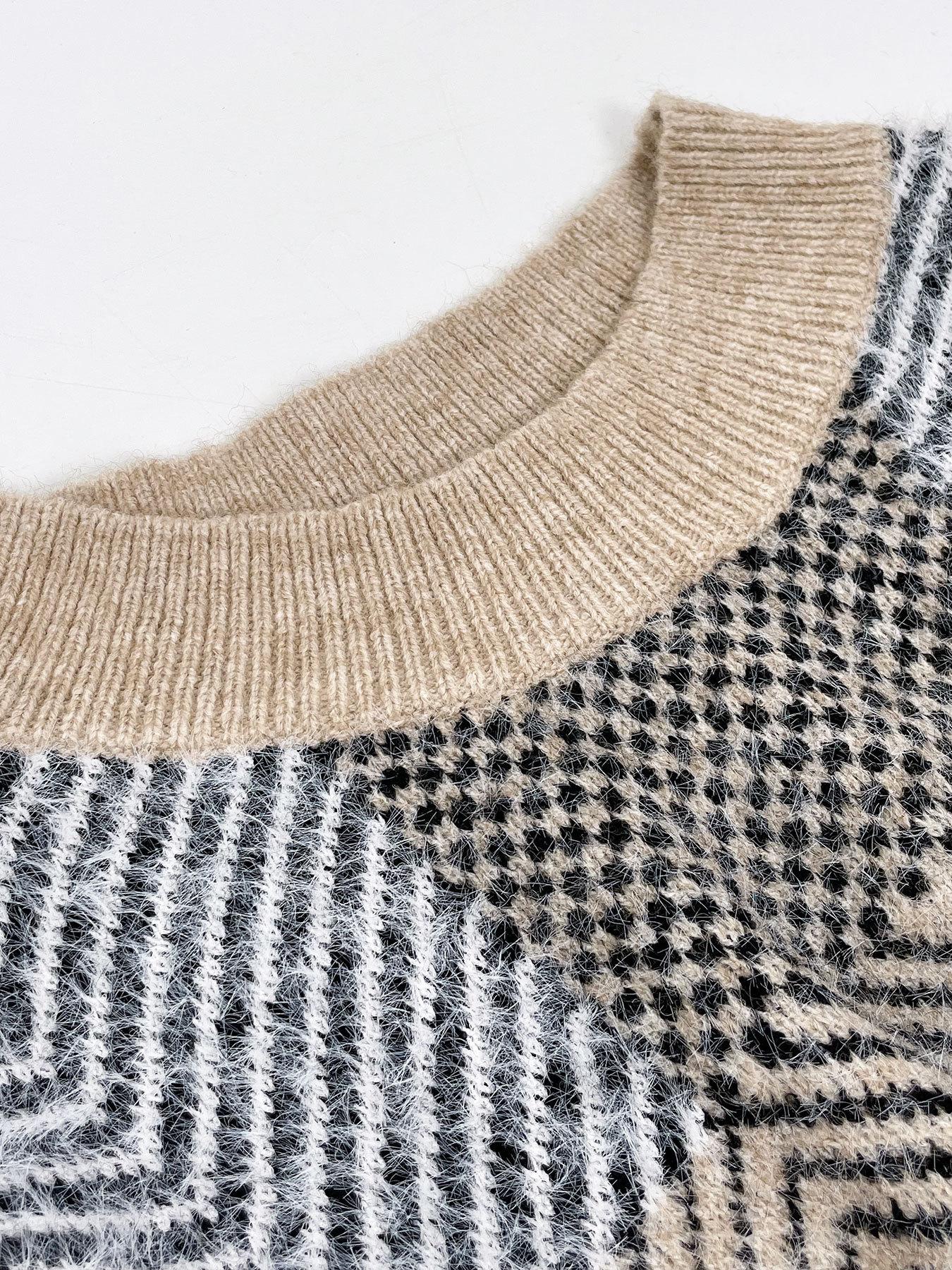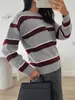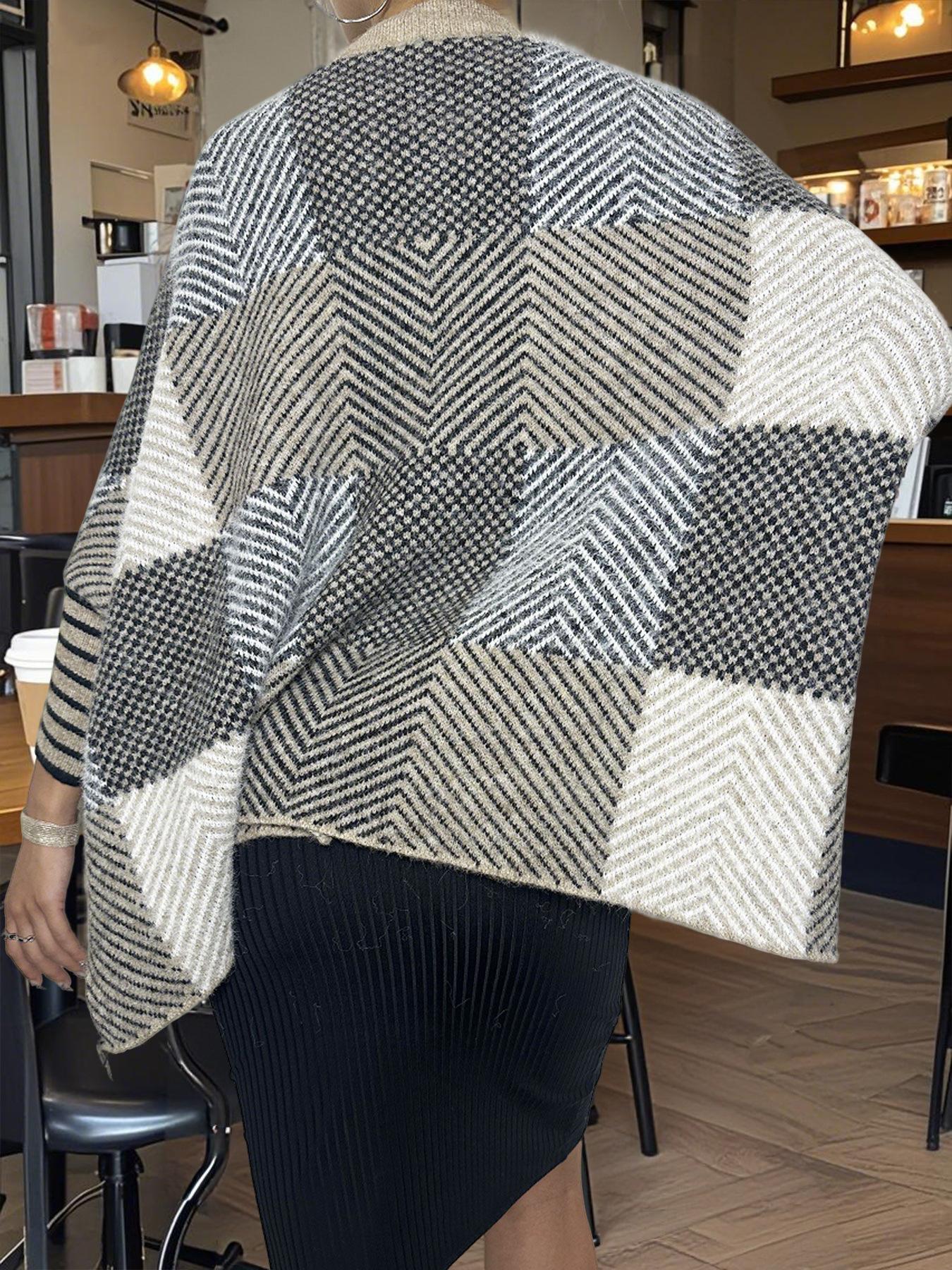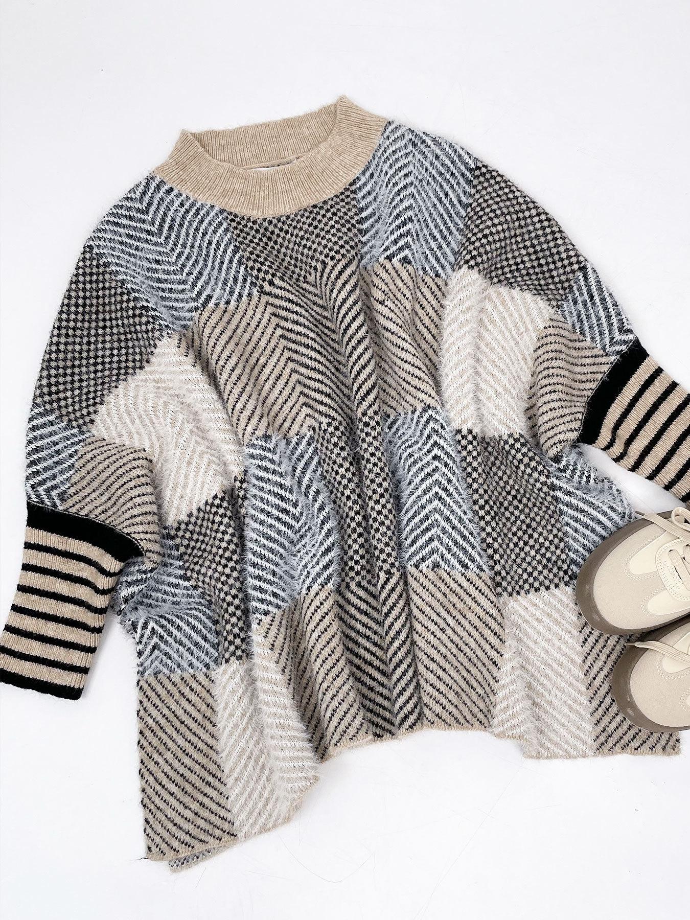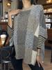 Otoño e Invierno Nuevo Suéter de Punto Europeo y Americano Transfronterizo de Manga Murciélago a Cuadros Largo Holgado Versátil Top Jersey para Mujer
