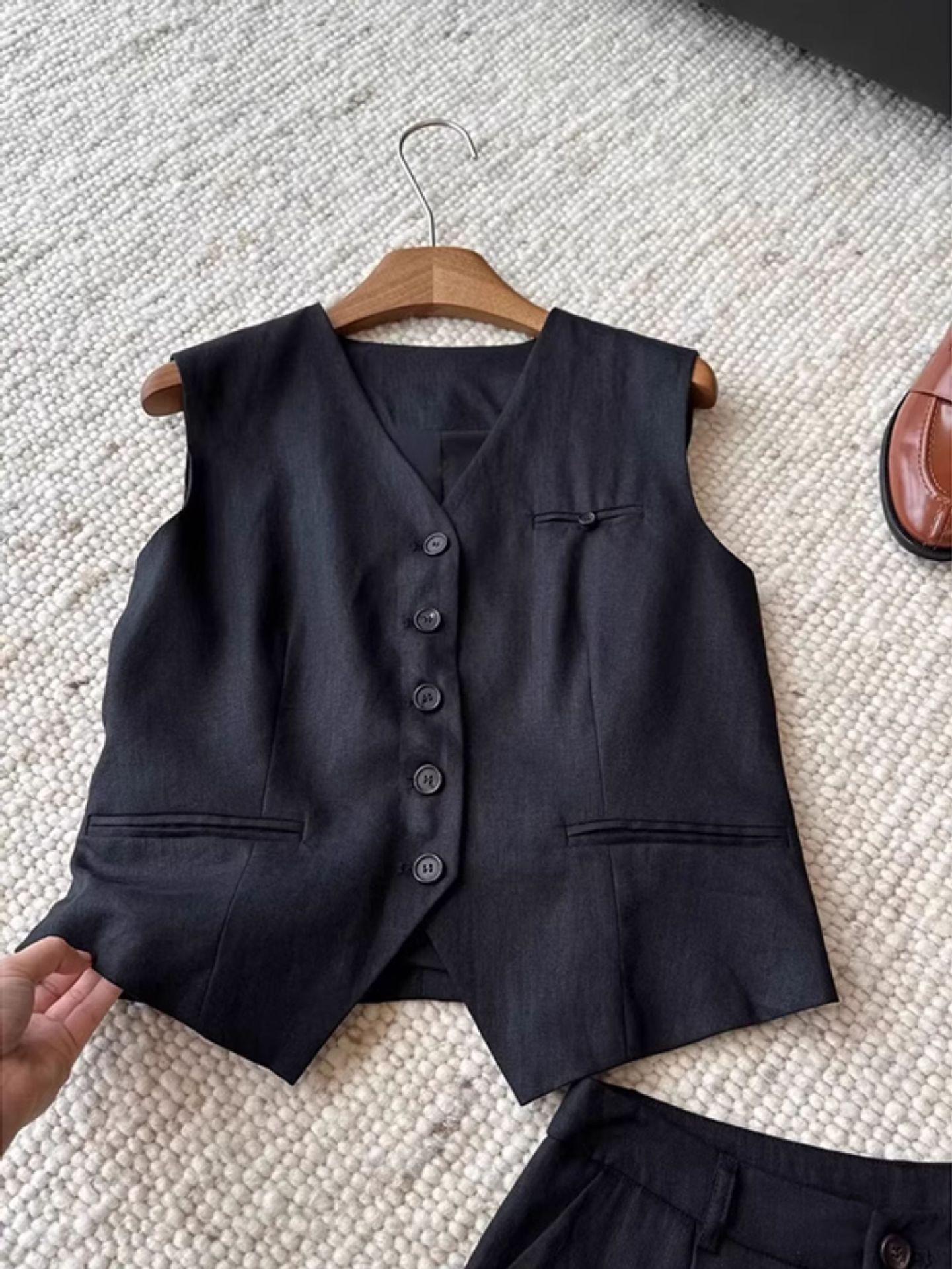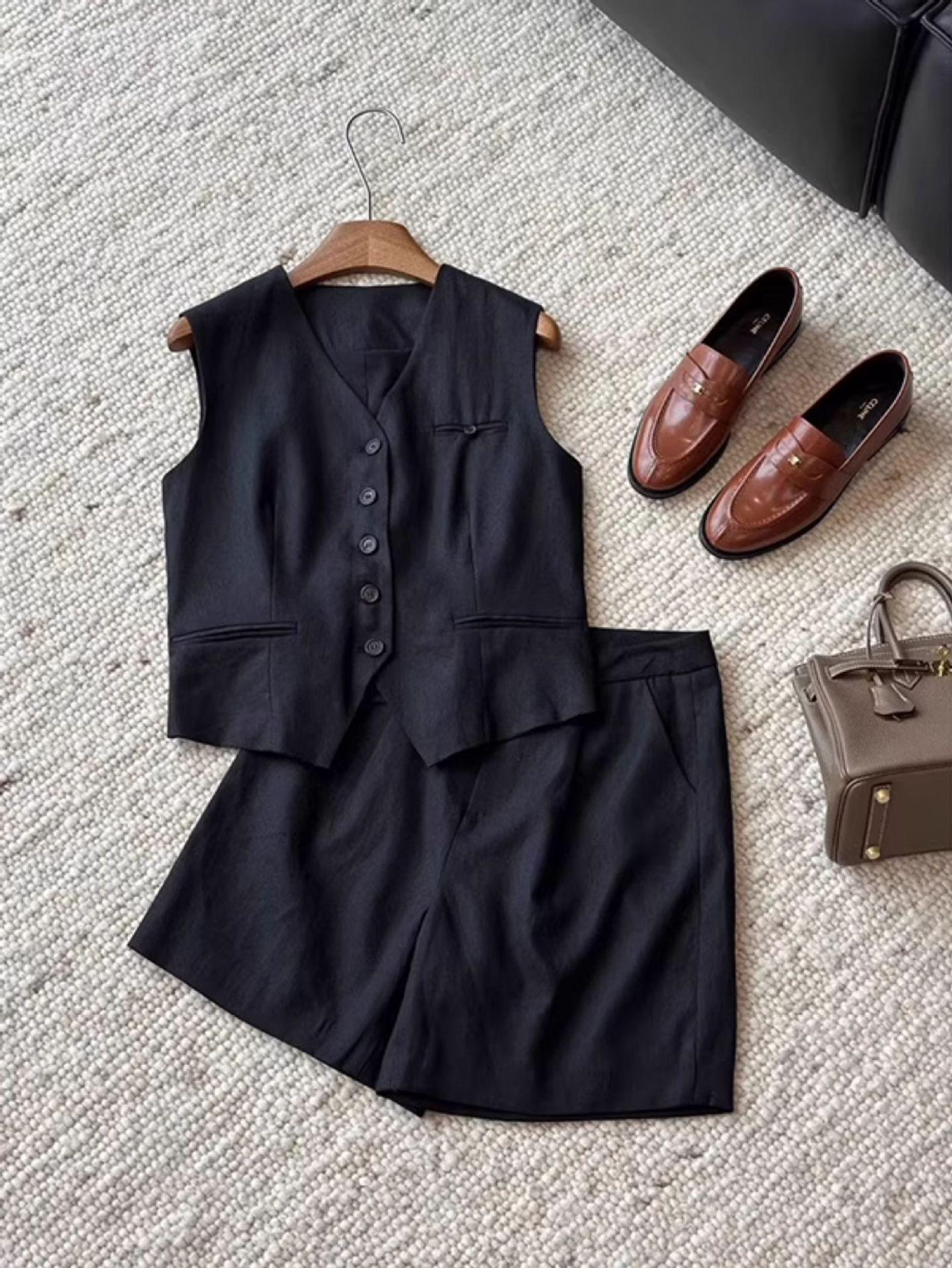Traje Casual Estilo Old Money Chaleco Pantalones Cortos Traje Chaleco Temperamento de Gama Alta para Mujer Traje Pantalones Cortos Reductores de Edad Conjunto de Dos Piezas