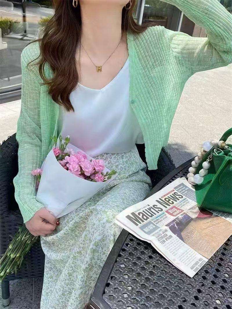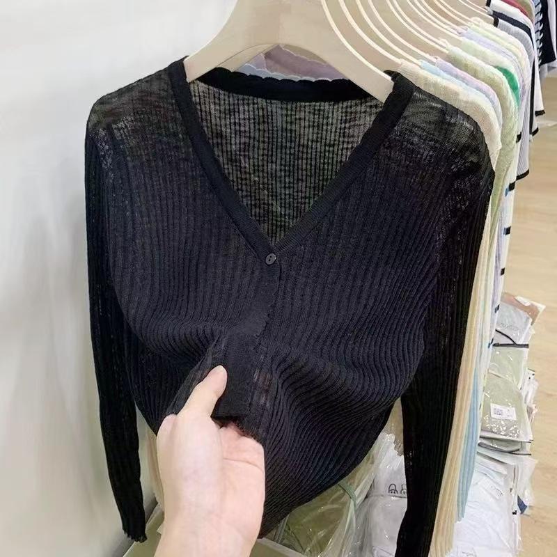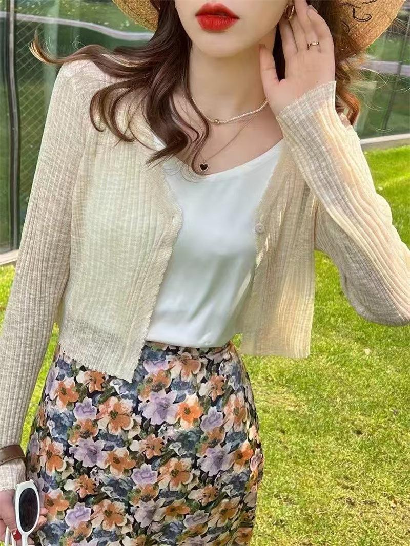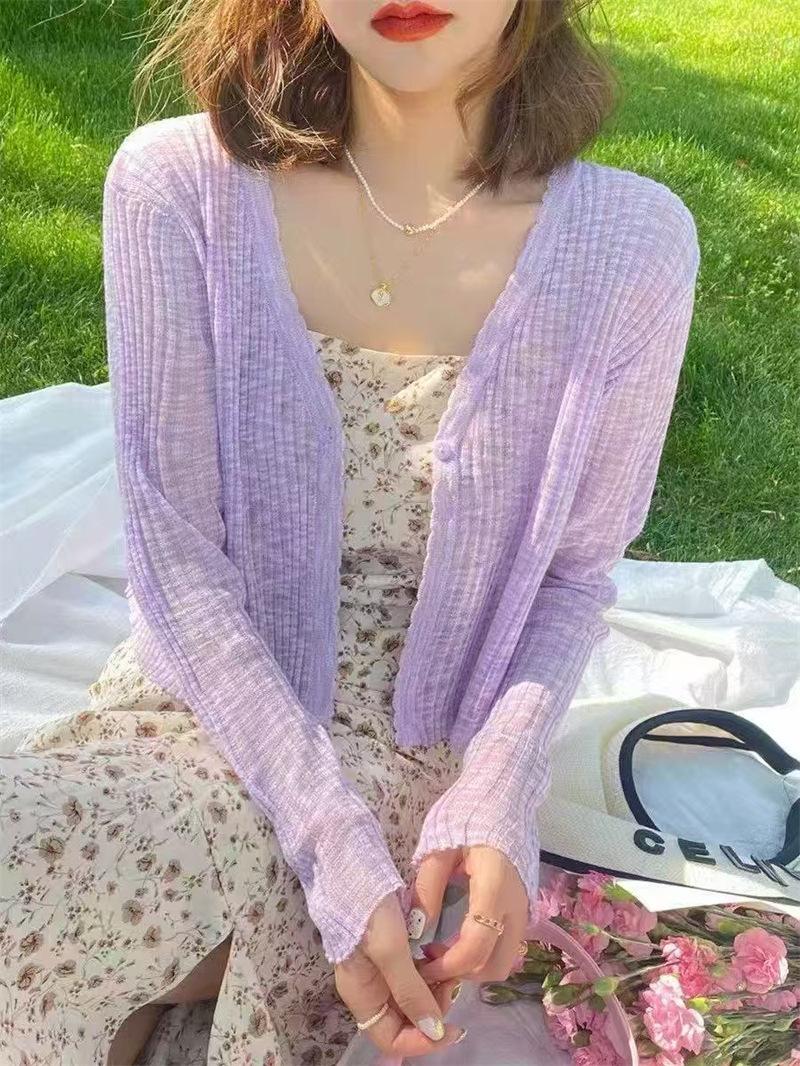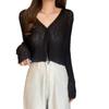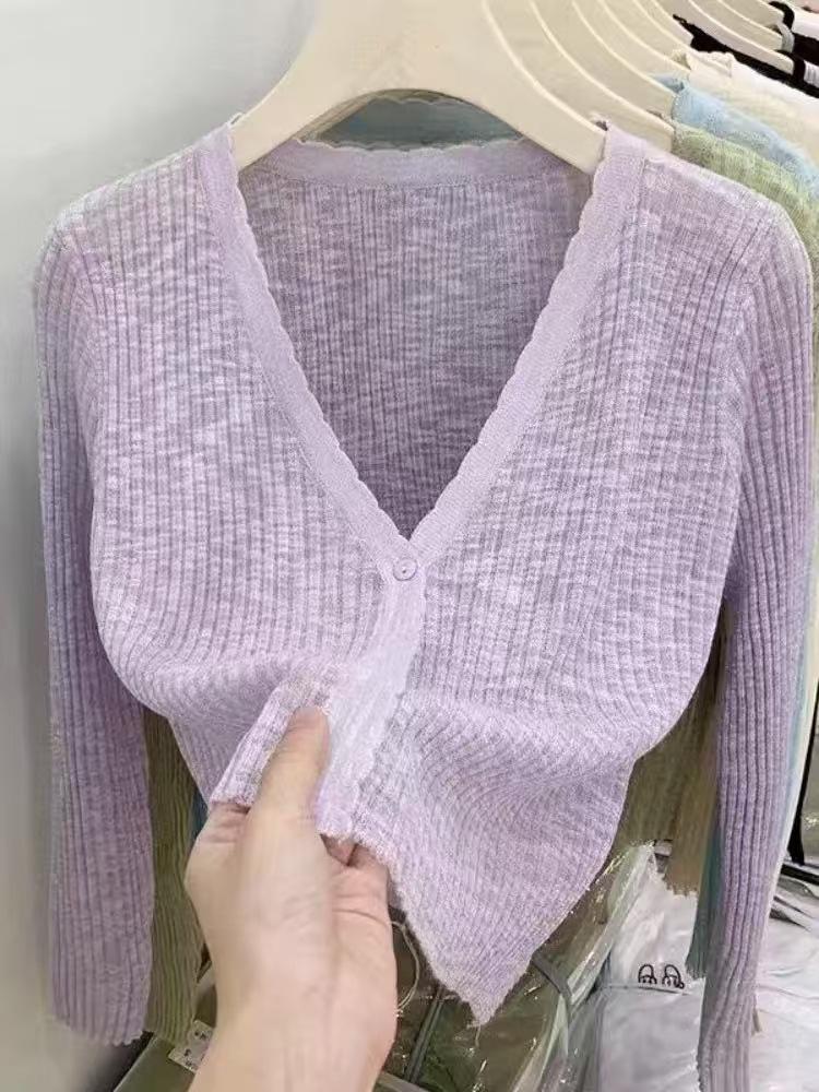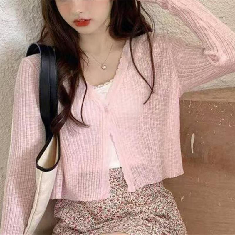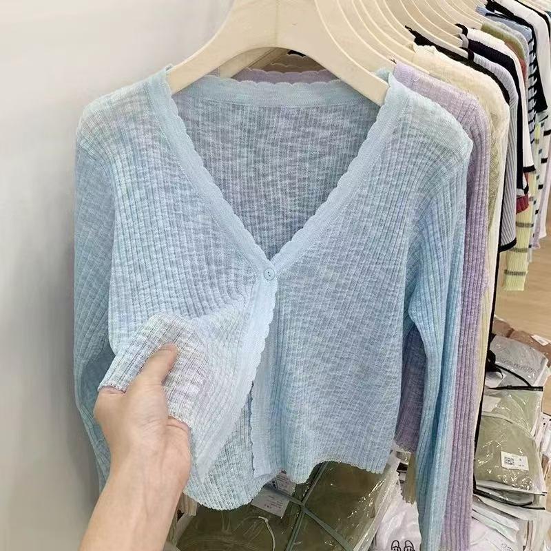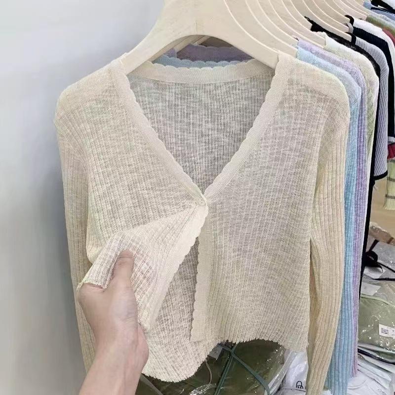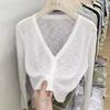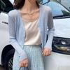 Cárdigan fino de punto de seda de hielo para mujer, verano, fino, chal pequeño, cuello en V, corto, camisa para aire acondicionado, ropa de protección solar