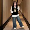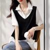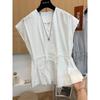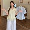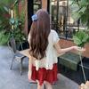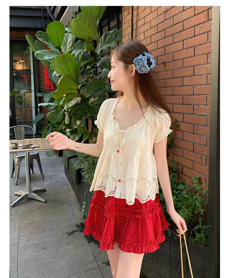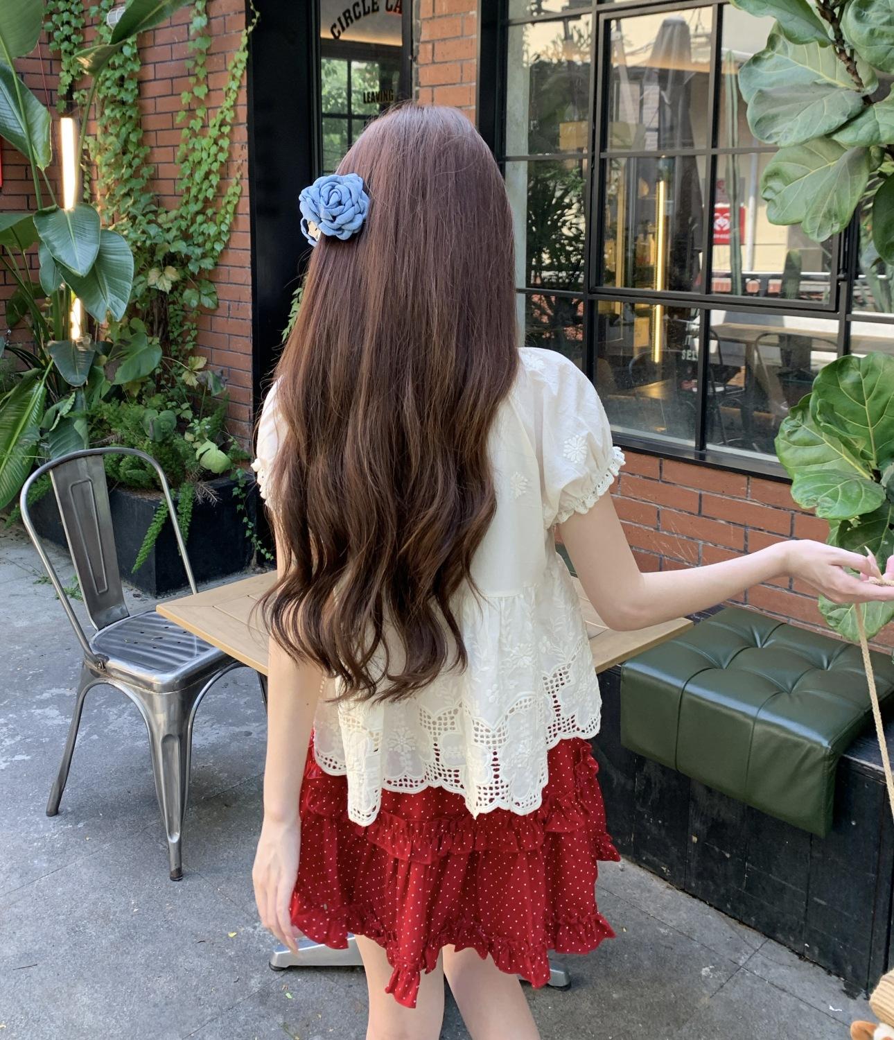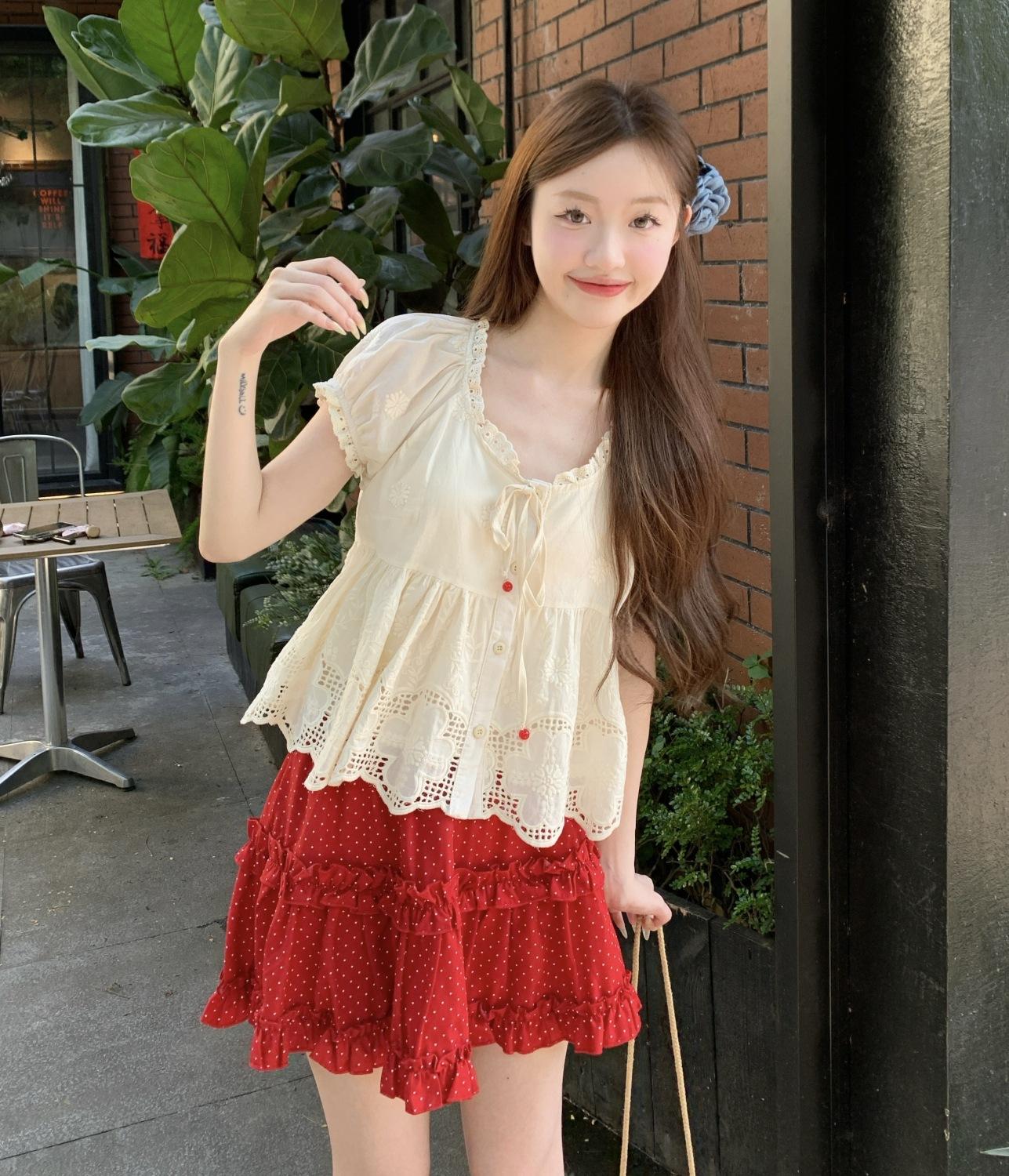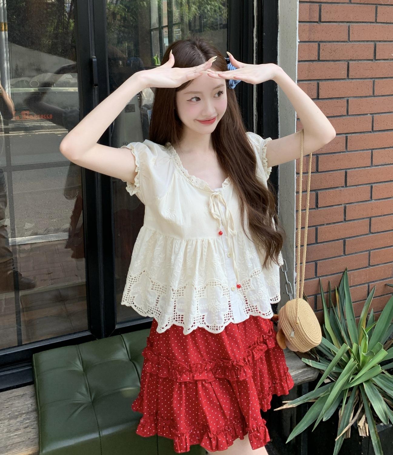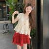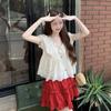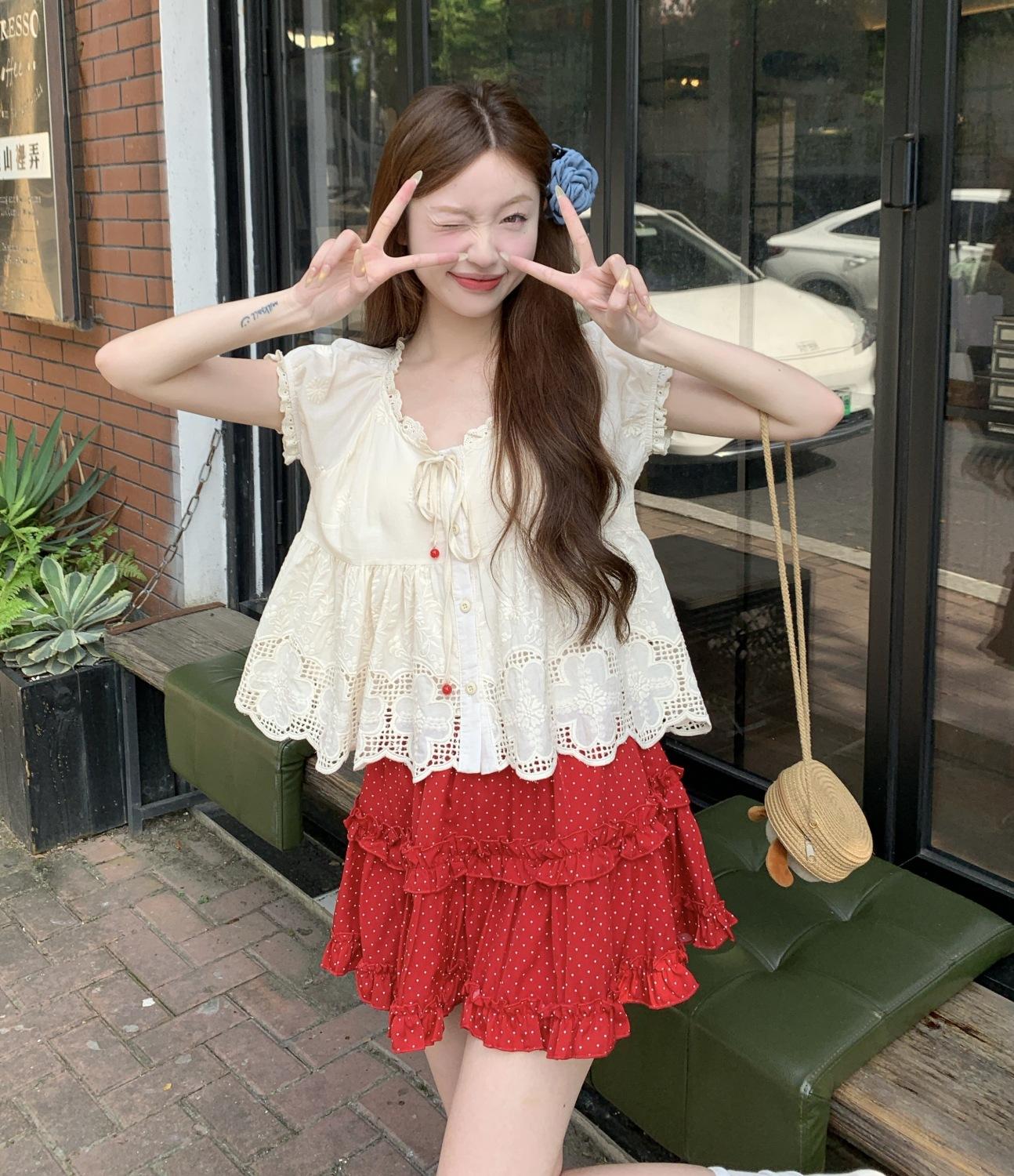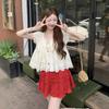 Talla grande Francés Suelto Reductor de edad Encaje Camisa Top Falda de puntos ondulada abullonada Conjunto de dos piezas Mujer 2025 Verano