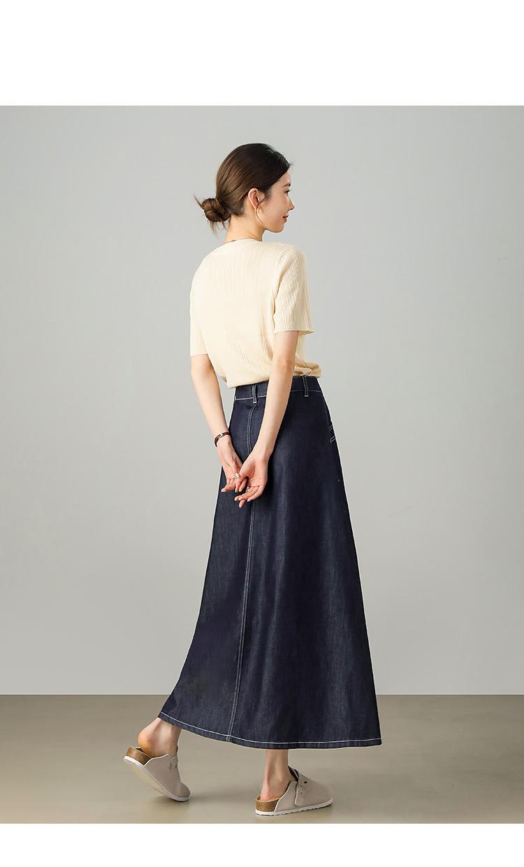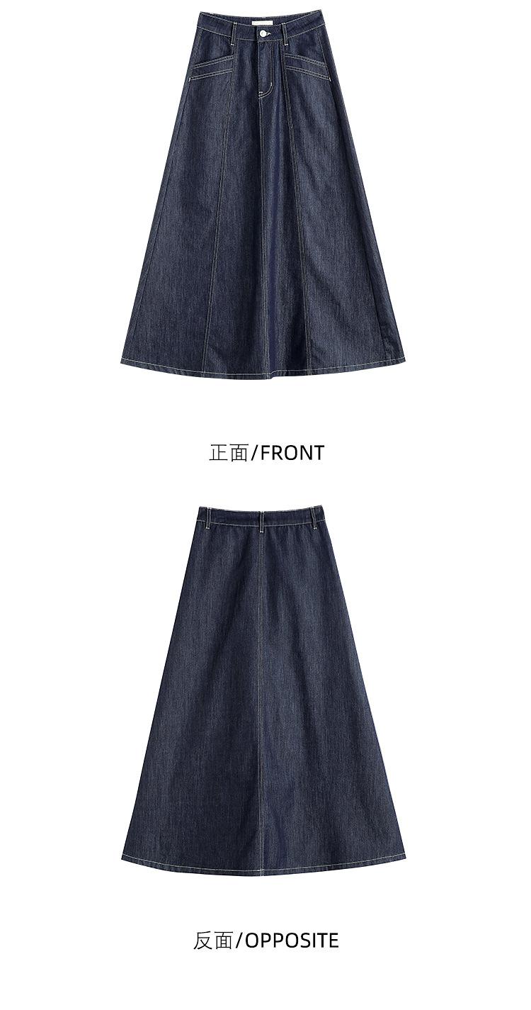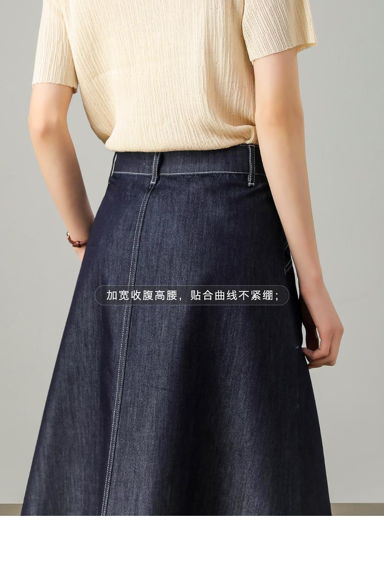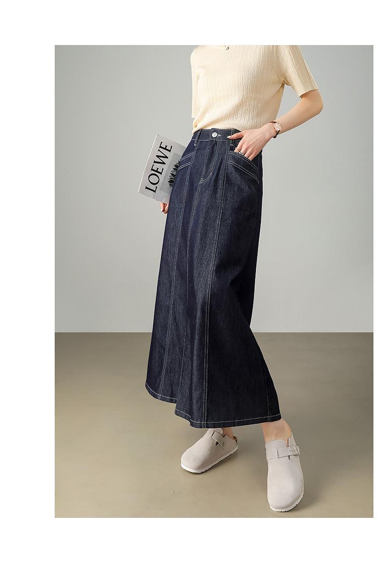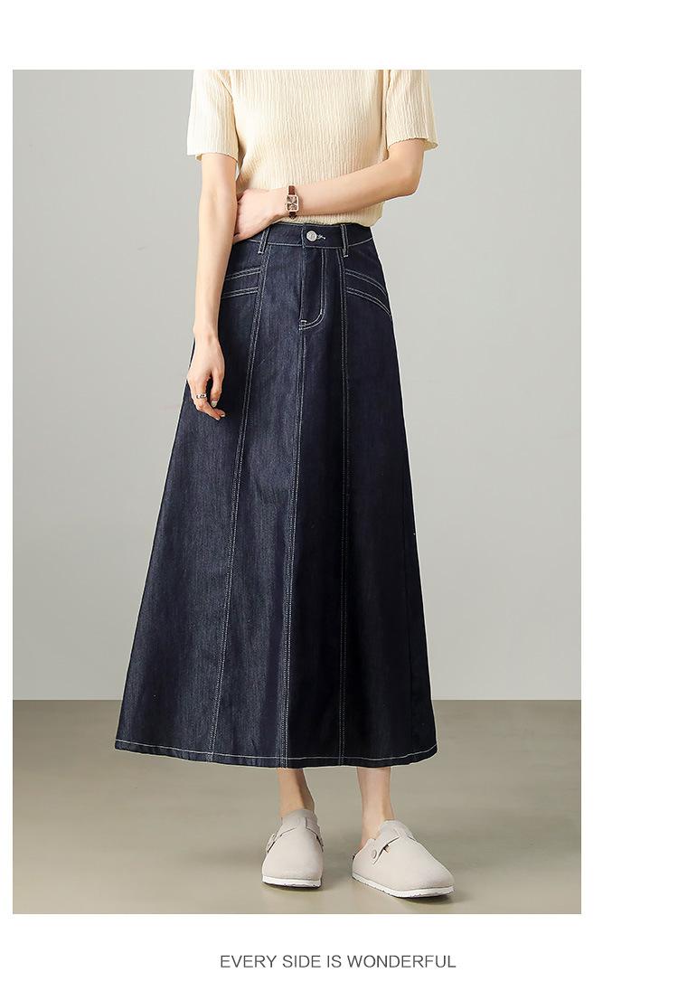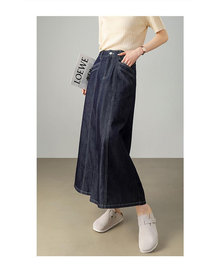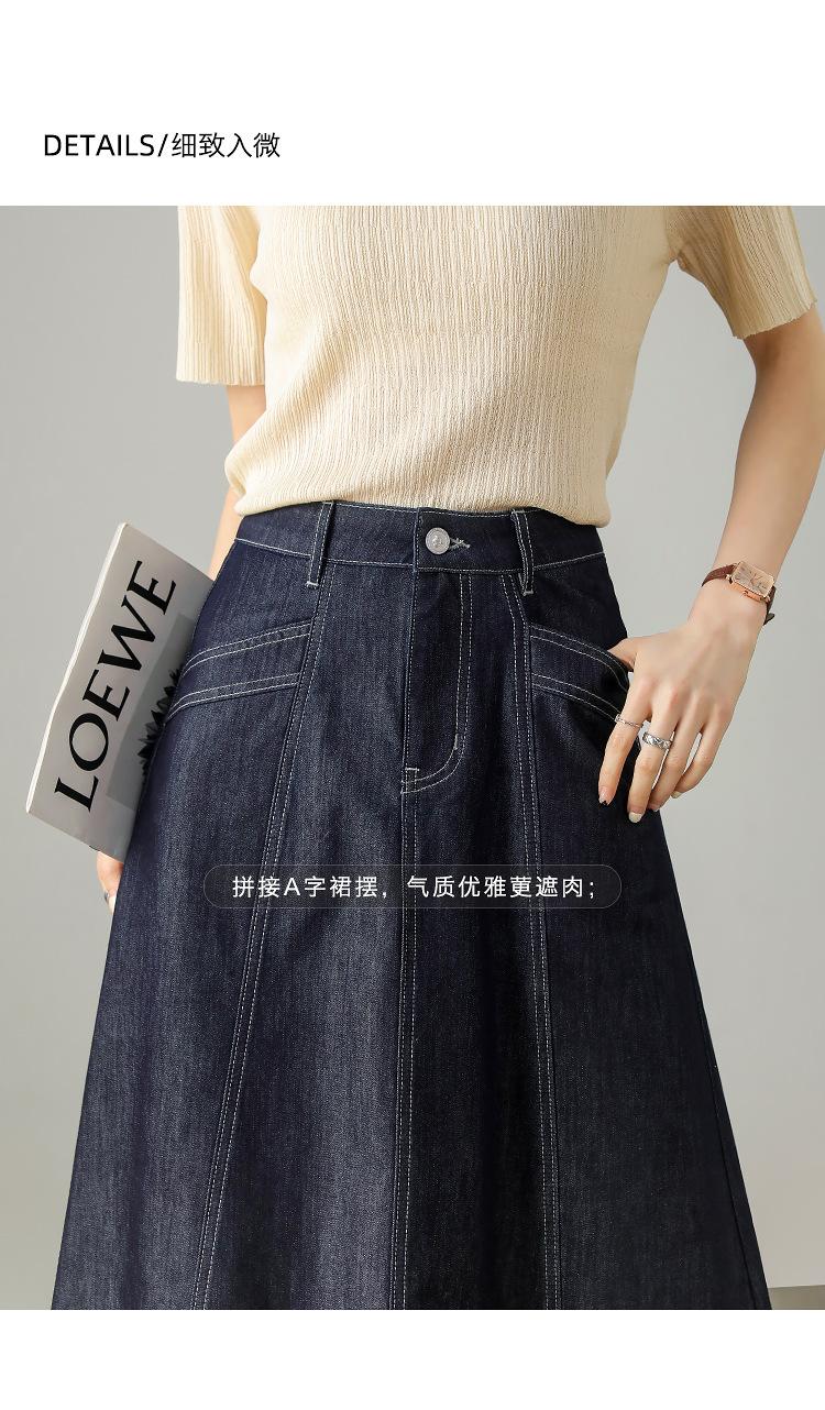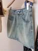 Falda Línea A Nueva Moda de Primavera Personalizada, Cintura Alta, Delgada y Versátil, Falda Denim de Largo Medio que Cubre la Entrepierna