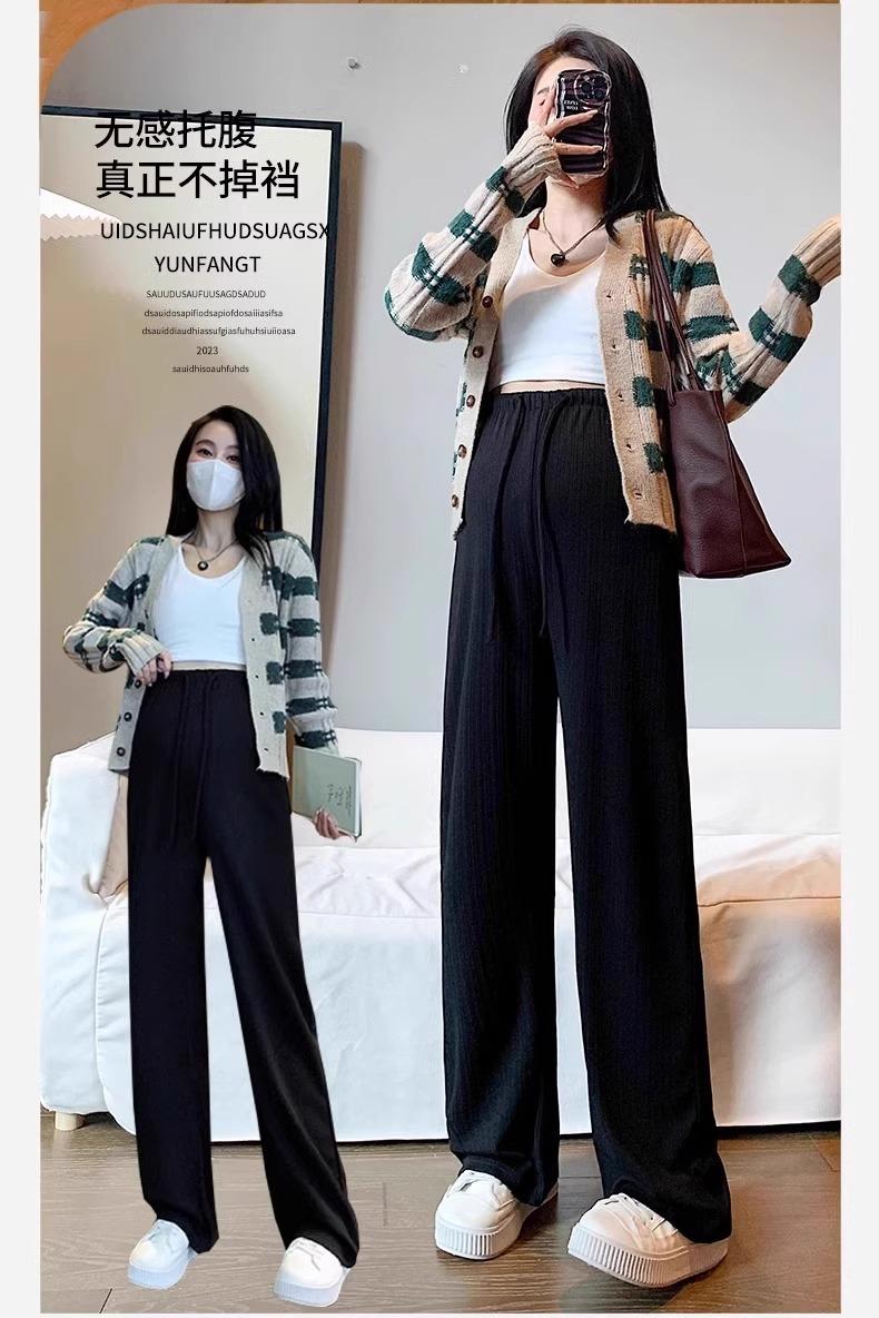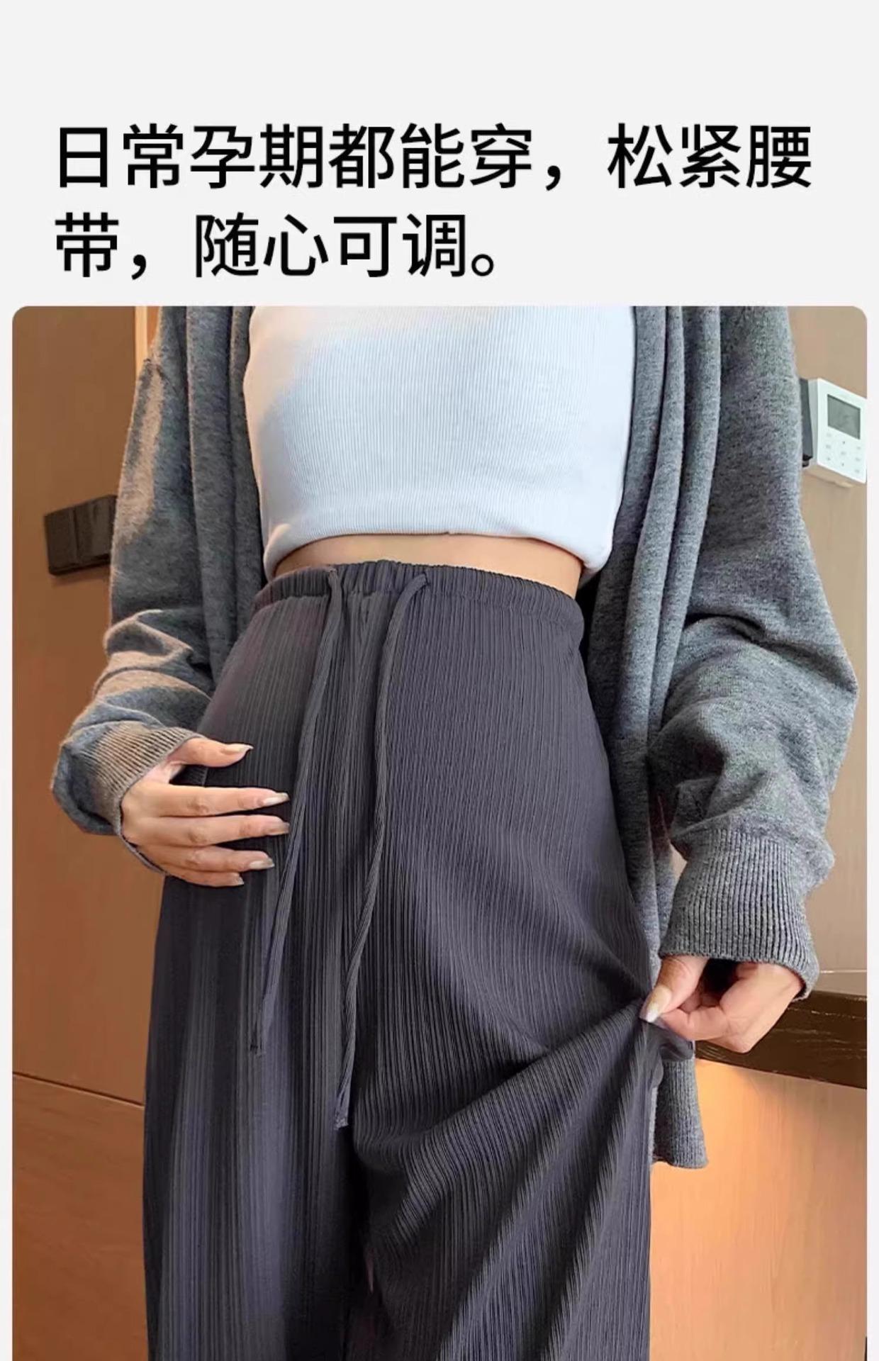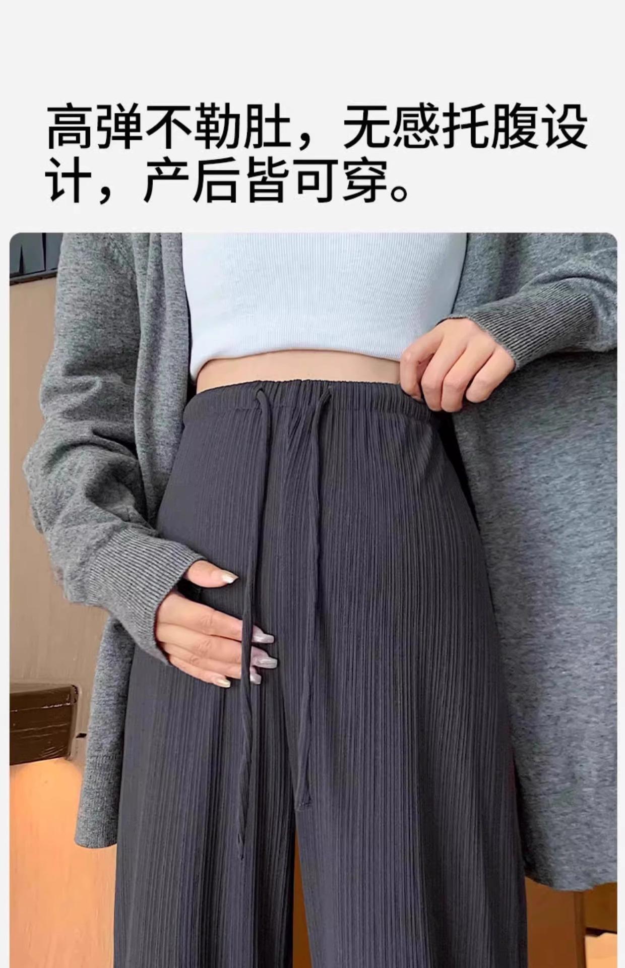 Pantalones de Mujer Embarazada Verano Delgados de Pierna Ancha para Uso Exterior Seda de Hielo Pequeña Sin Soporte 2025 Nueva Ropa de Maternidad Primavera y Verano