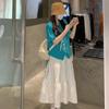Falda Blanca para Mujer Verano Largo Medio Cintura Alta Falda Plisada Falda Pequeña para Mujer Drapeada Línea A Falda Paraguas Cubre Caderas Falda Larga