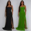 C7398 Transfronterizo Aliexpress Amazon Moda Europea y Americana Vestido de Verano de Malla Sexy con Abertura de Color Puro para Mujer