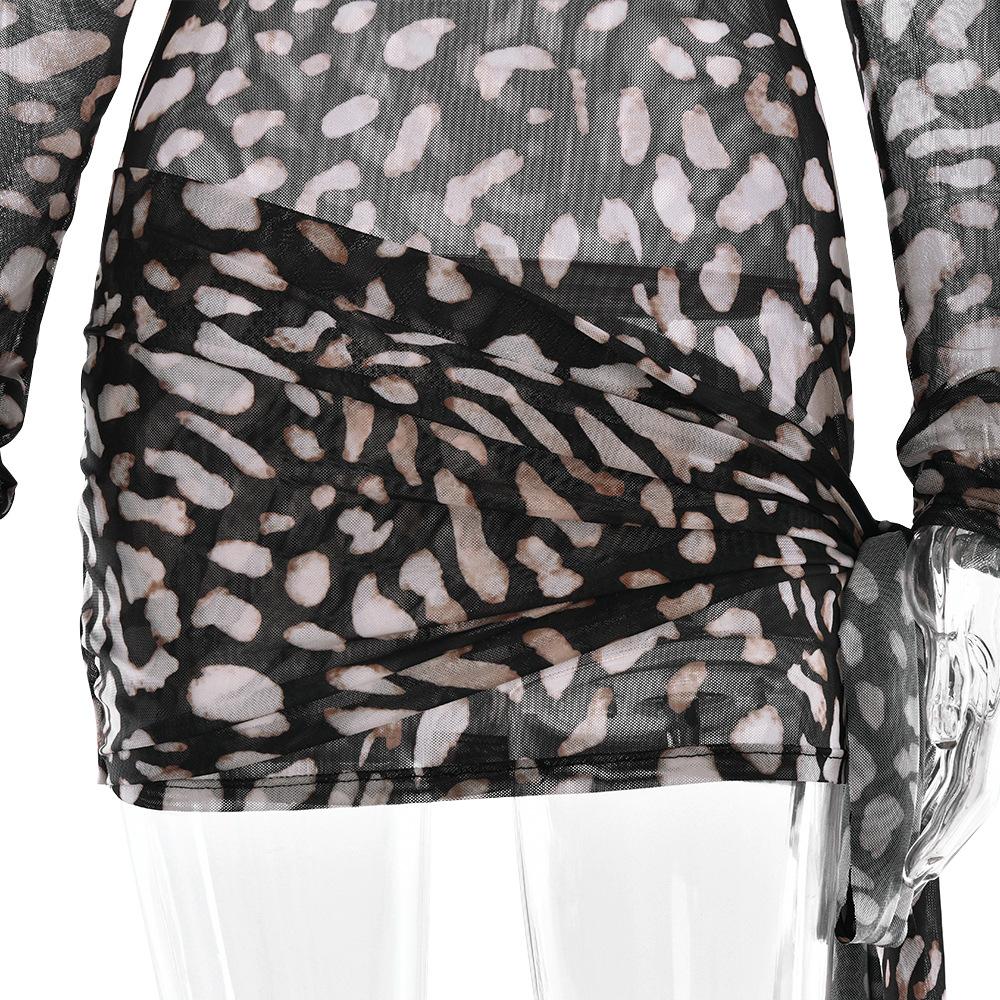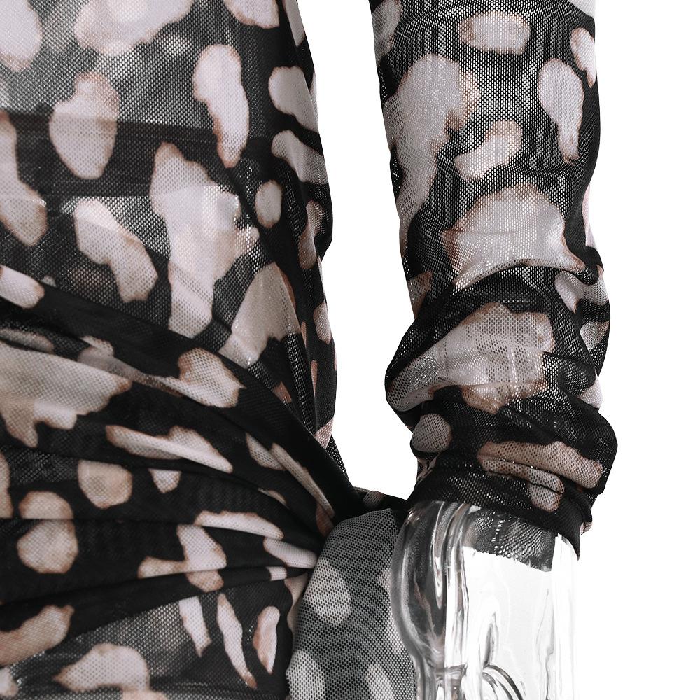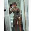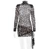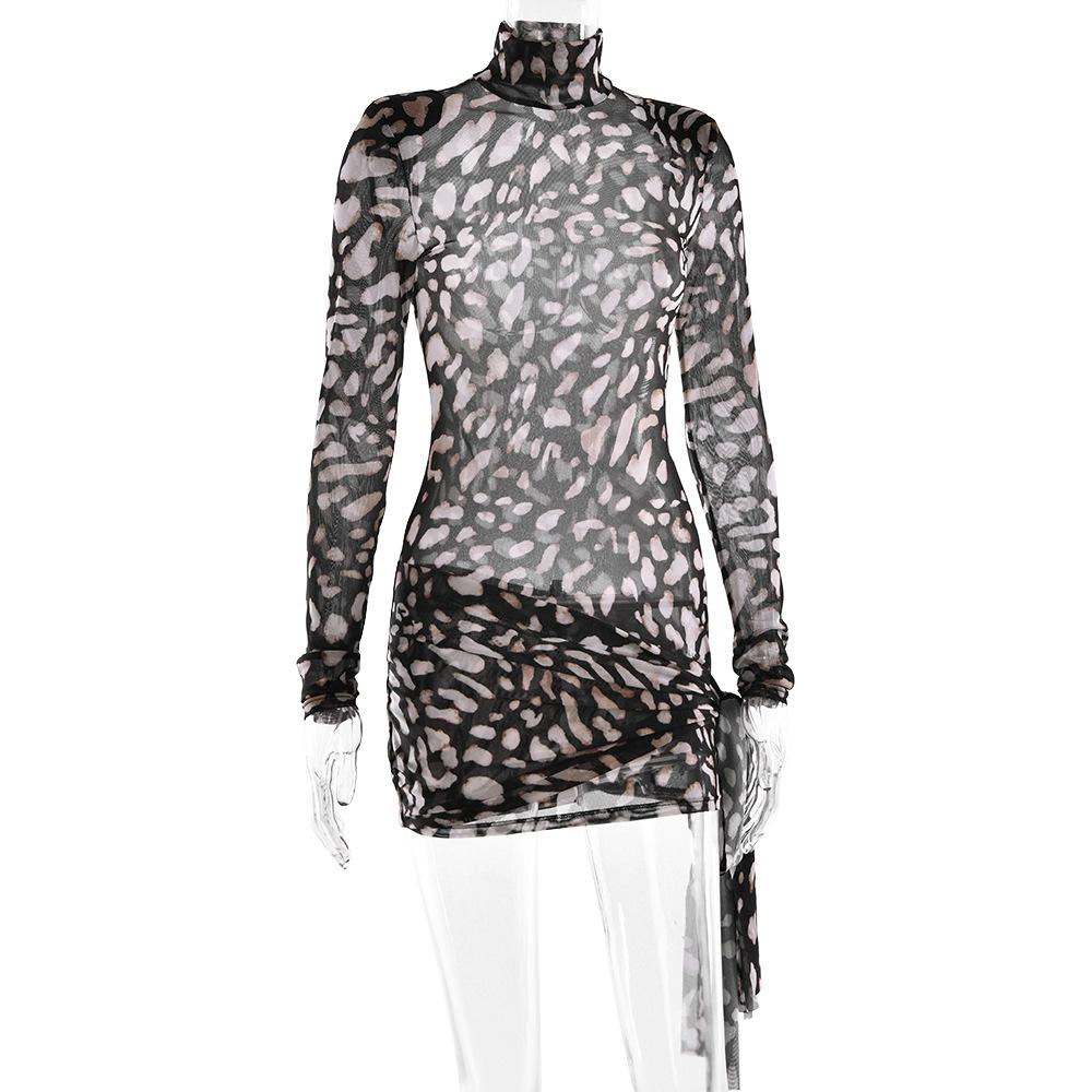 Vestido de mujer de nuevo estilo transfronterizo europeo y americano de malla de cuello alto Sexy manga larga estampado de leopardo tirantes falda ajustada a la cadera