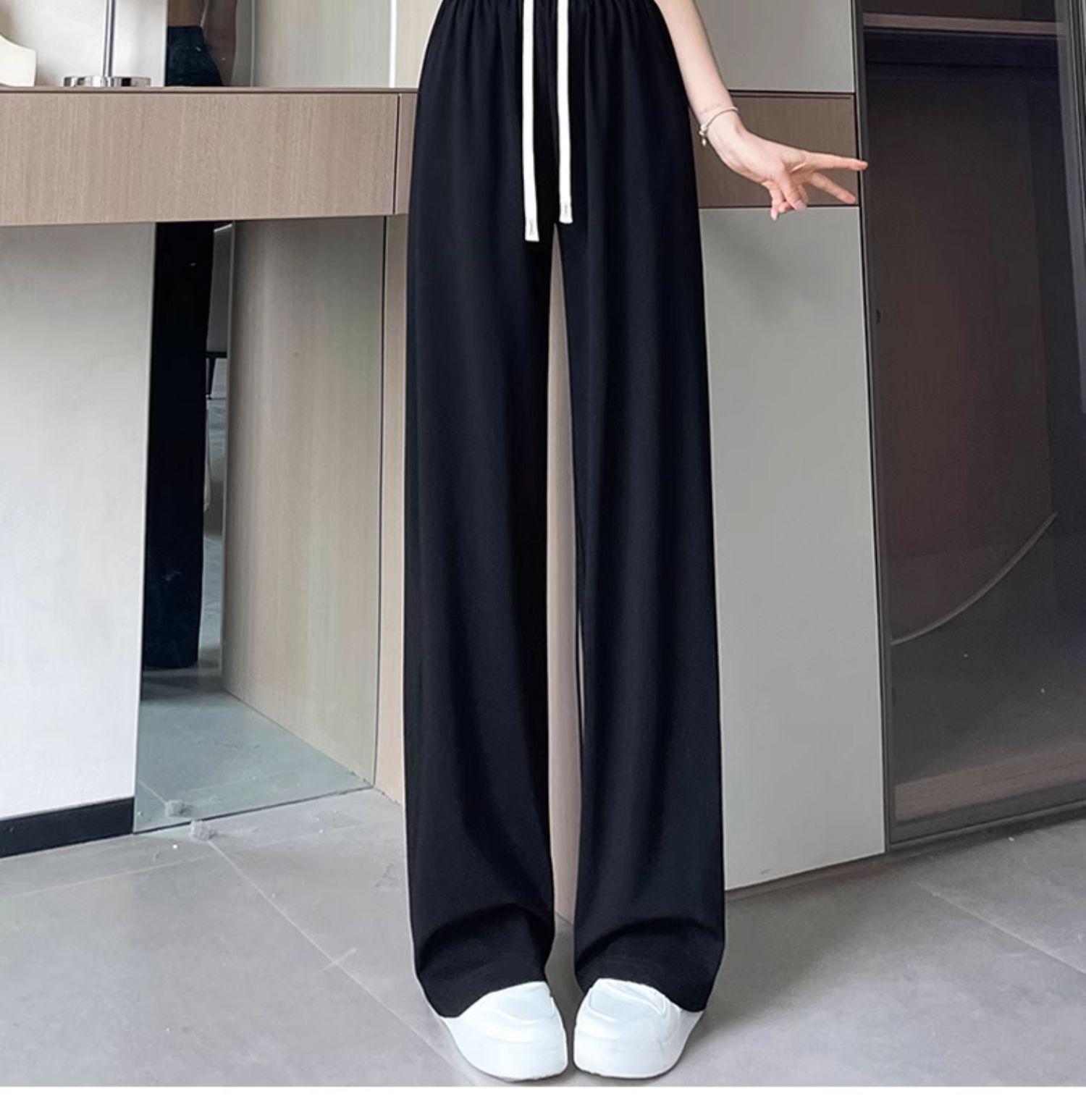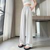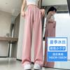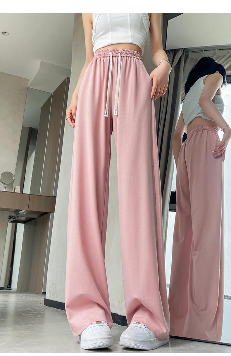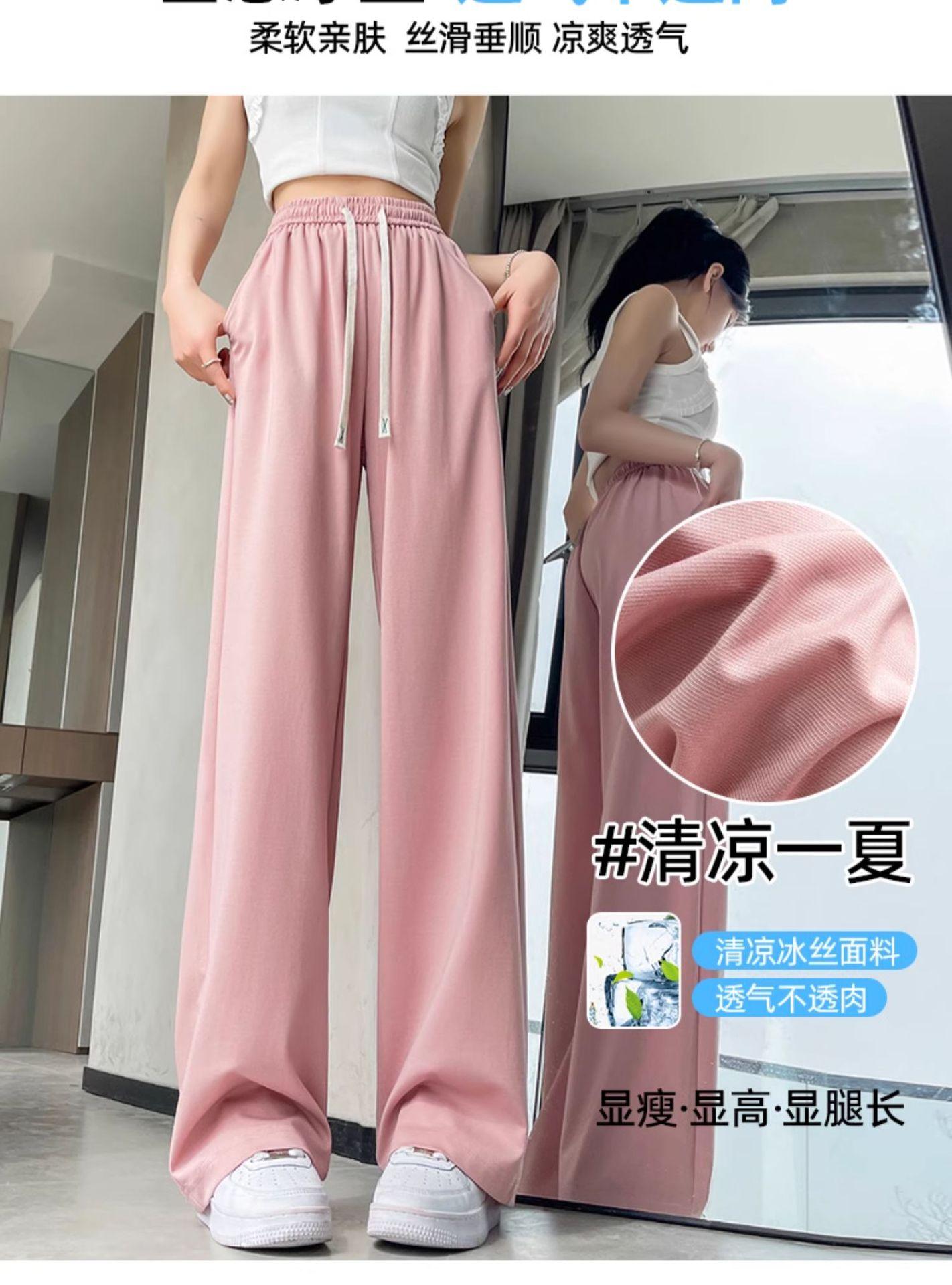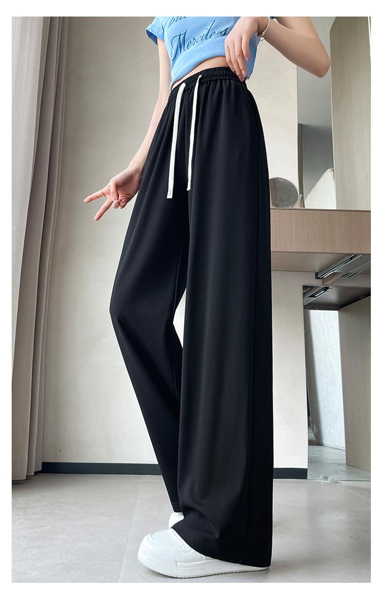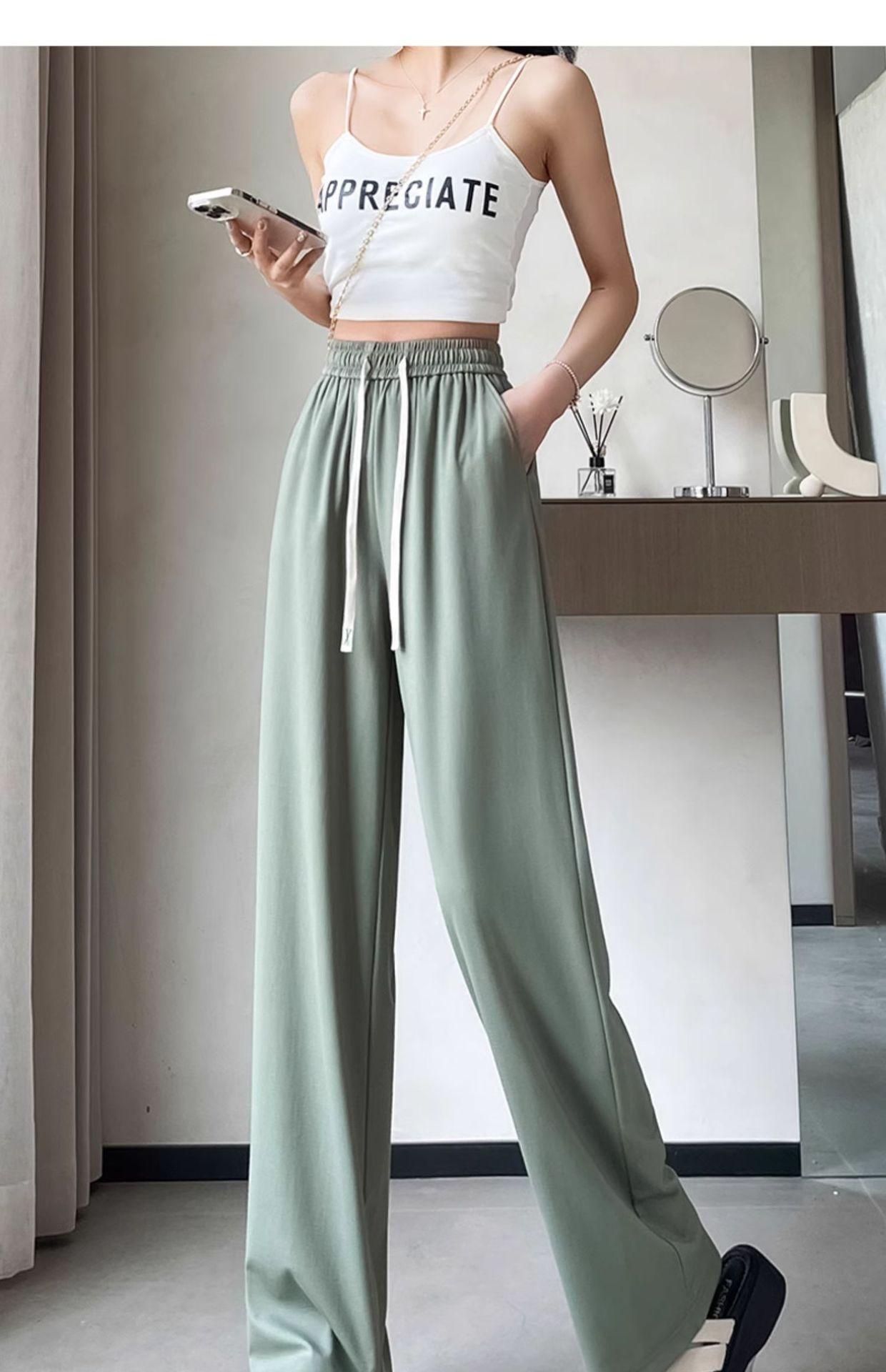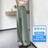 Pantalones drapeados de seda helada de pierna ancha para mujer 2025 verano delgados de cintura alta ajustados casuales versátiles estilo holgazán largos hasta el suelo rectos