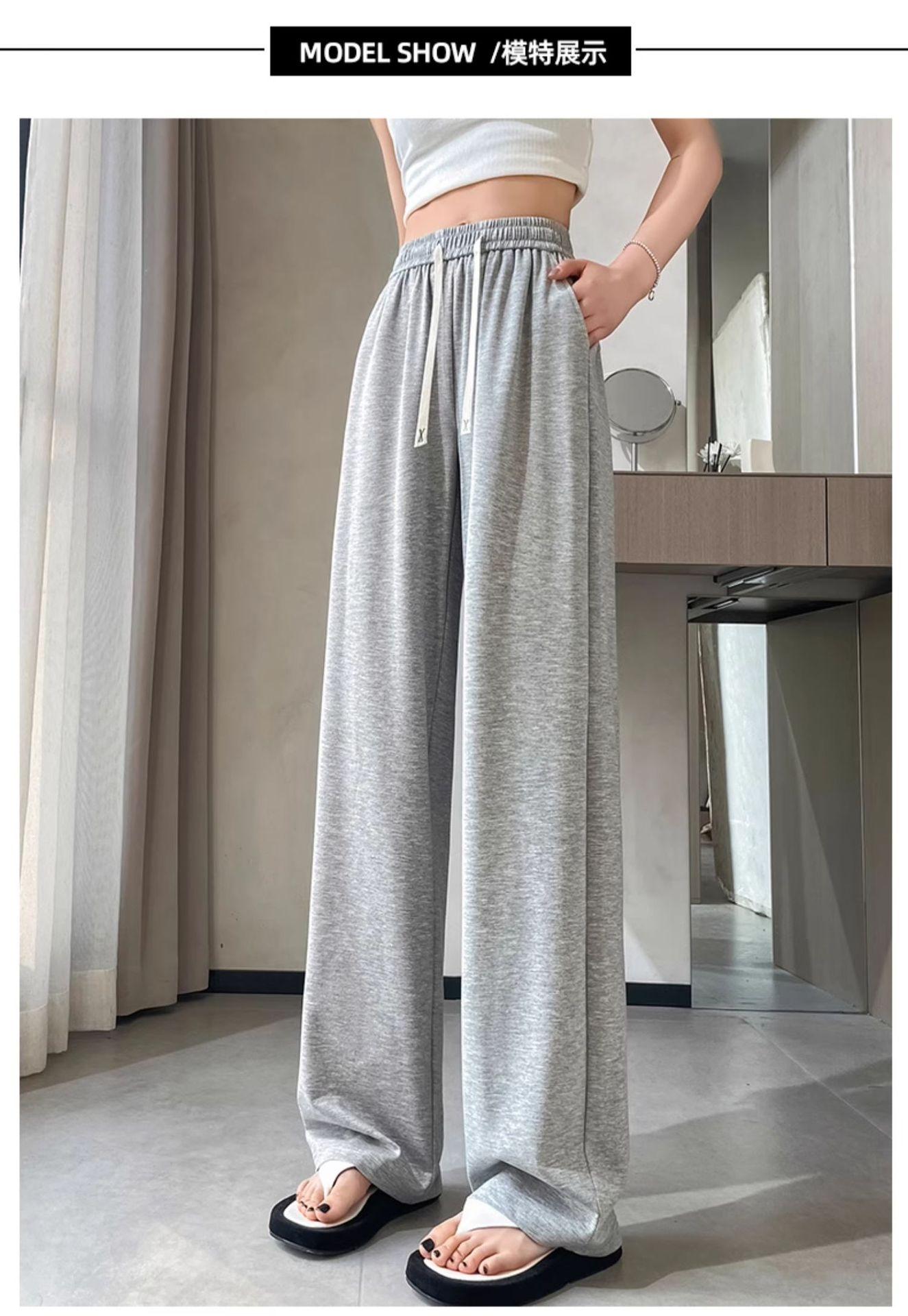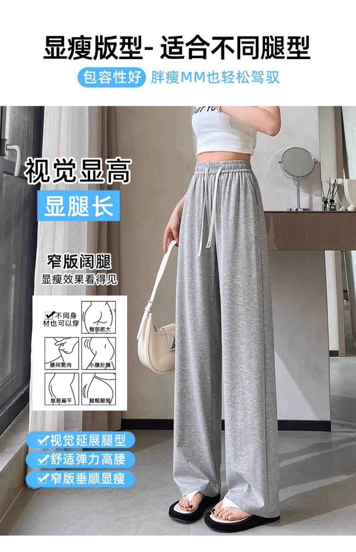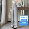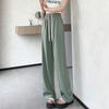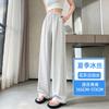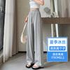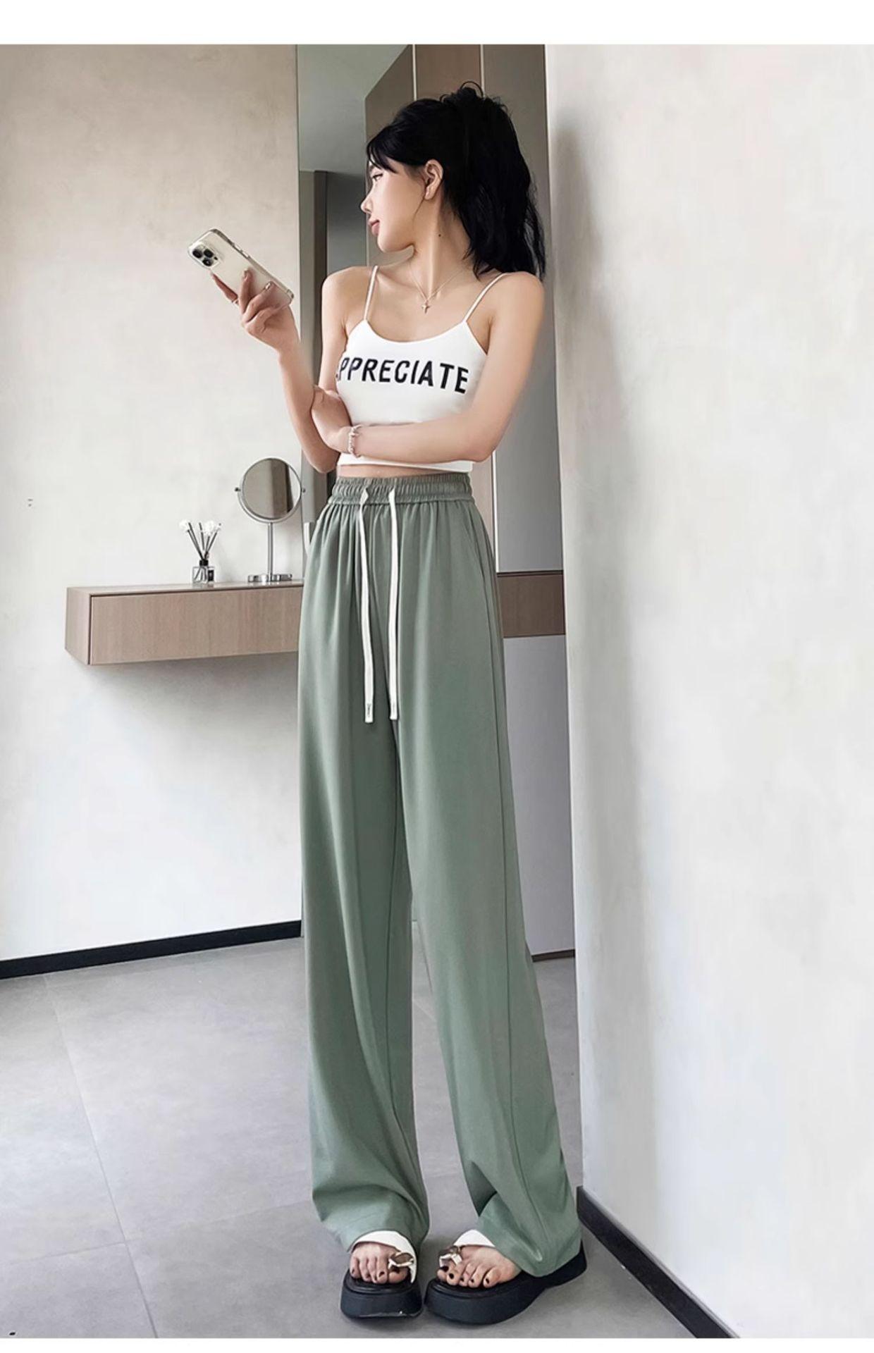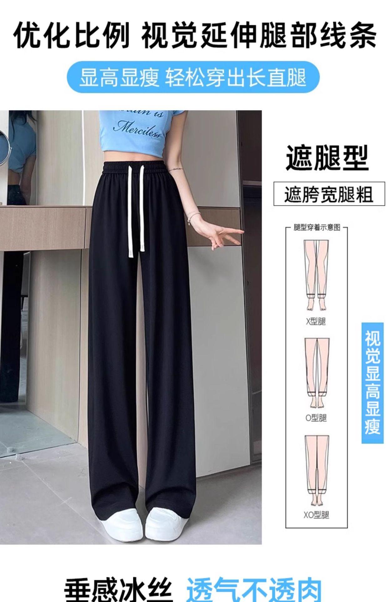 Pantalones drapeados de seda helada de pierna ancha para mujer 2025 verano delgados de cintura alta ajustados casuales versátiles estilo holgazán largos hasta el suelo rectos