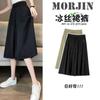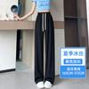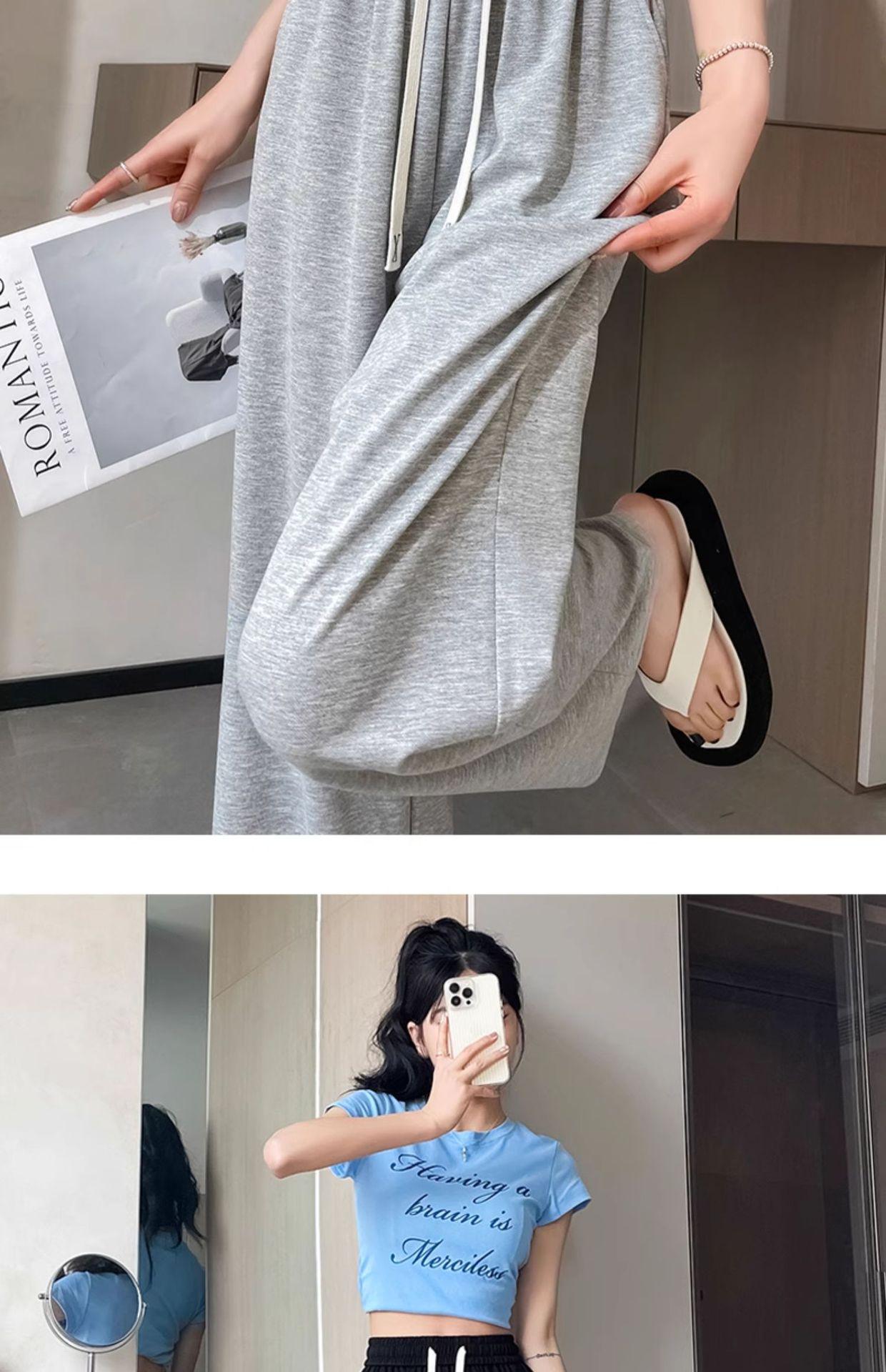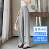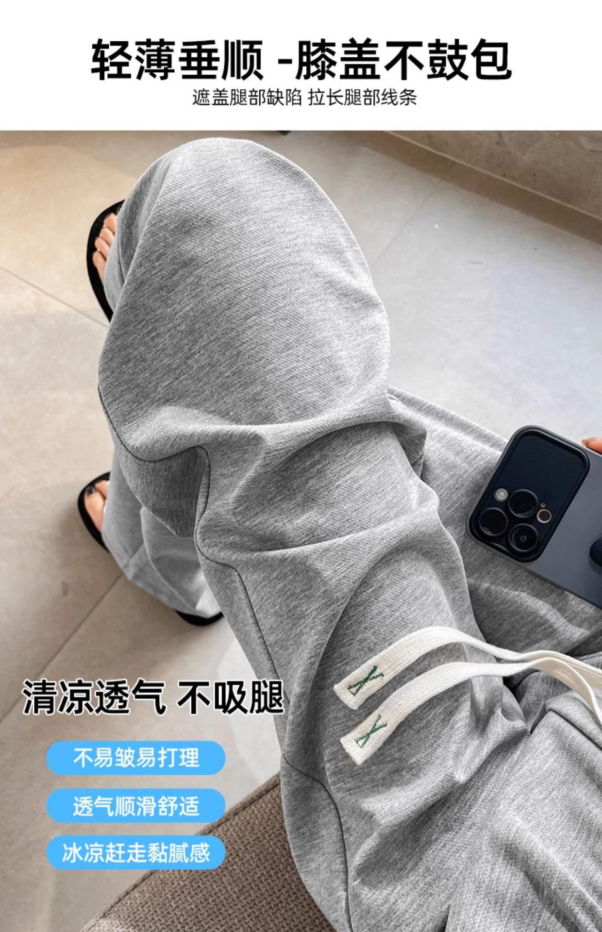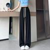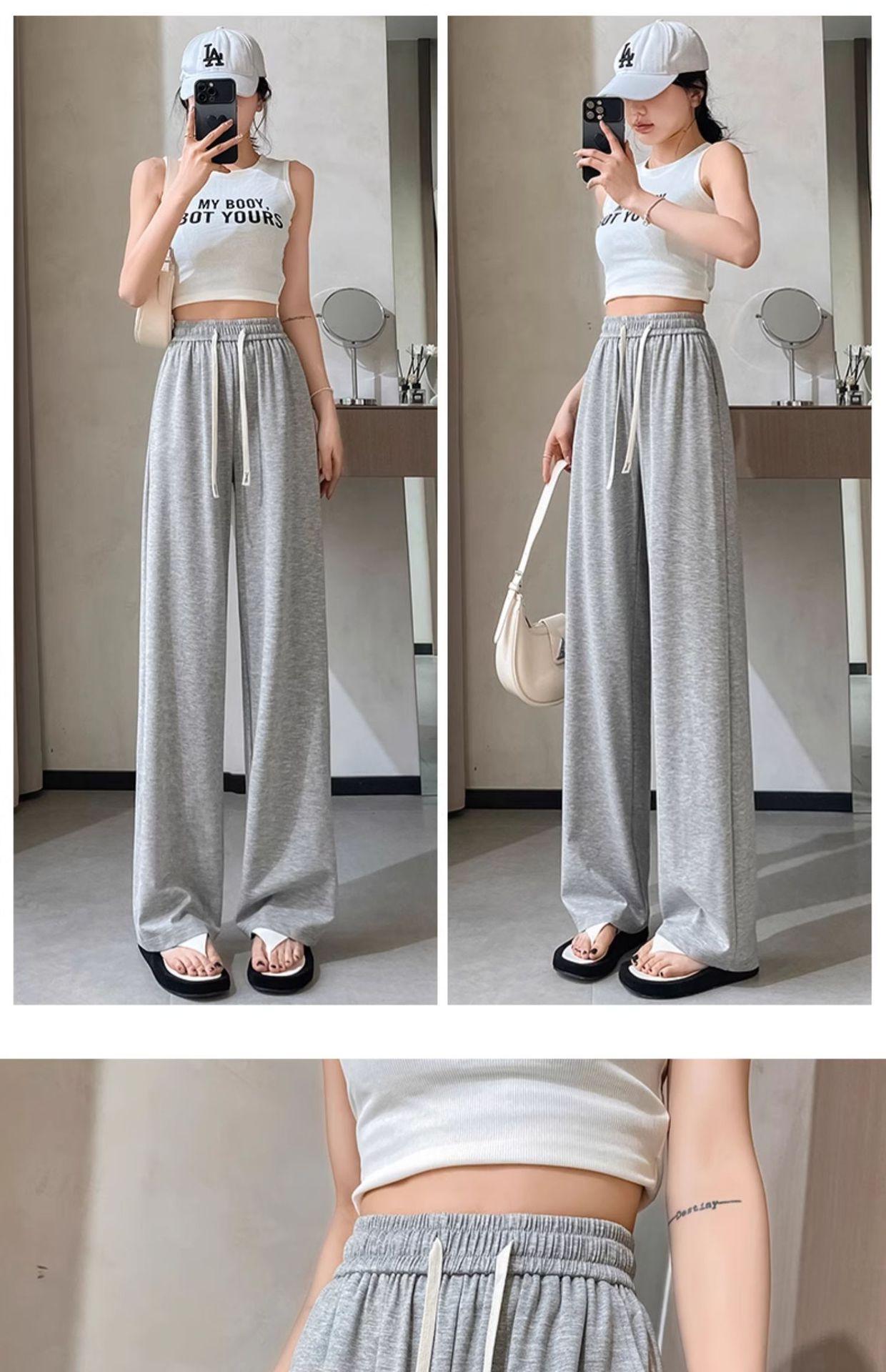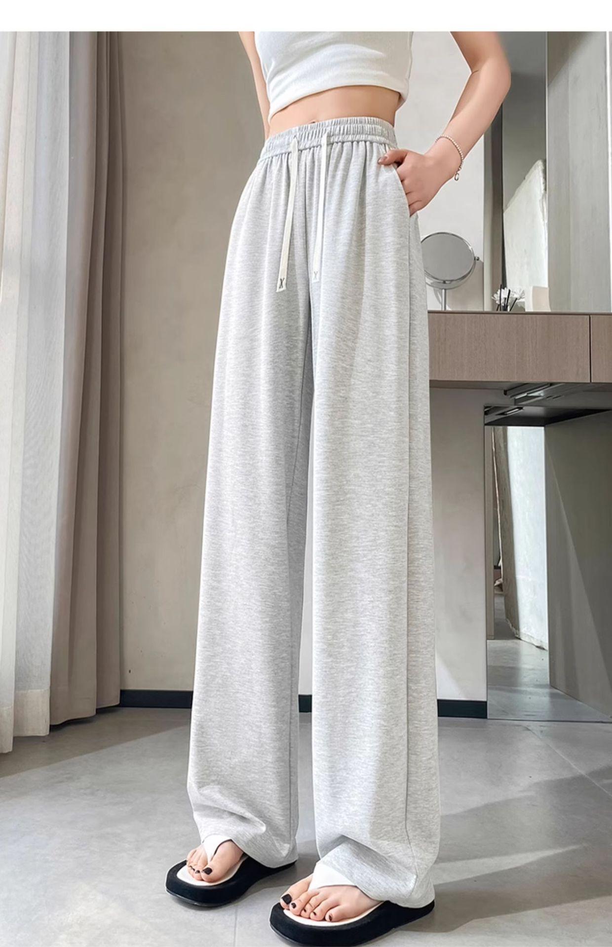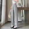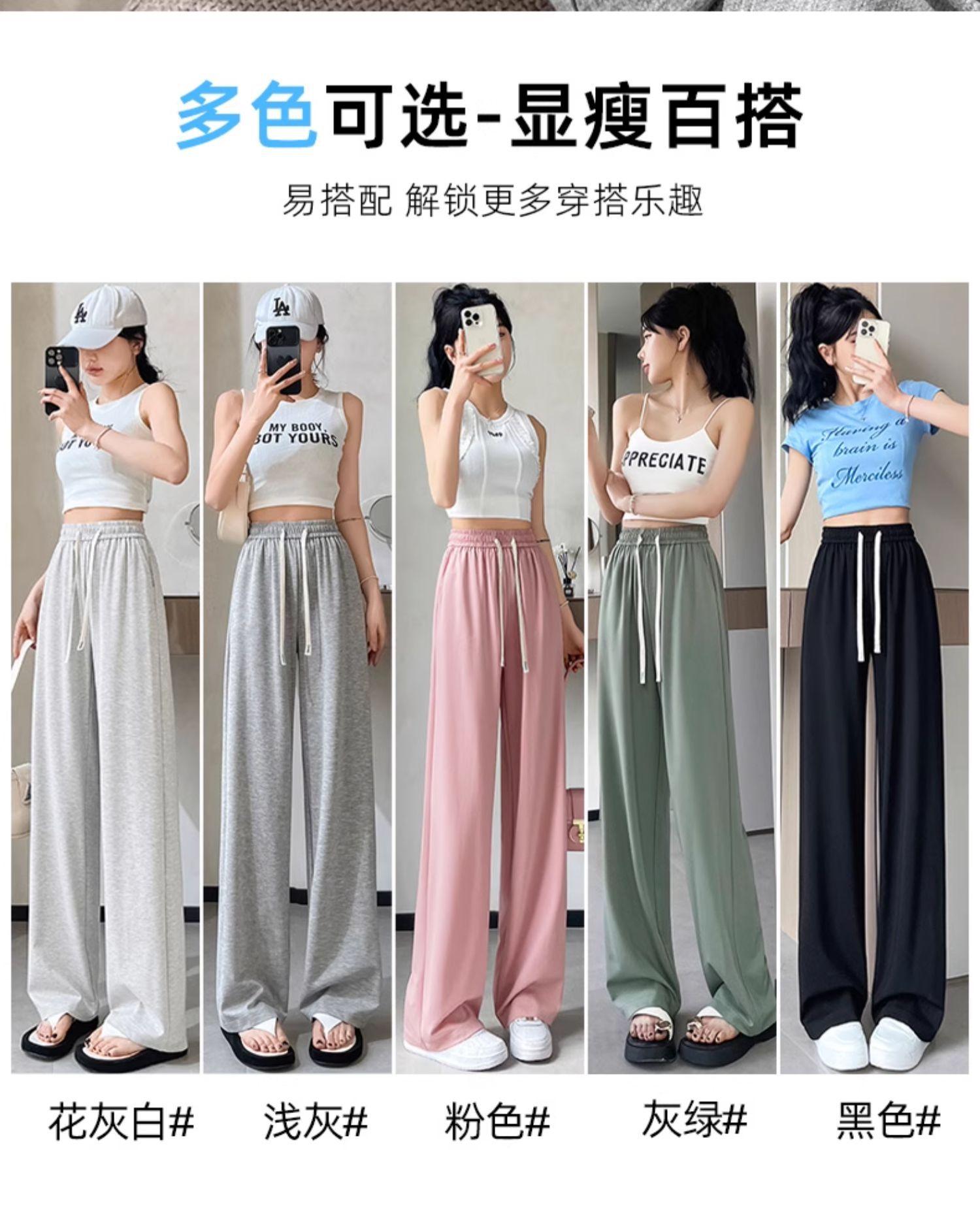 Pantalones drapeados de seda helada de pierna ancha para mujer 2025 verano delgados de cintura alta ajustados casuales versátiles estilo holgazán largos hasta el suelo rectos