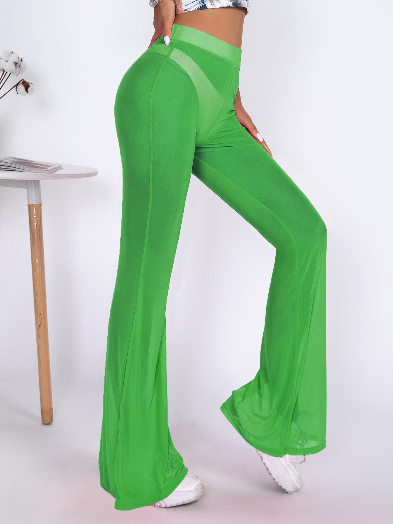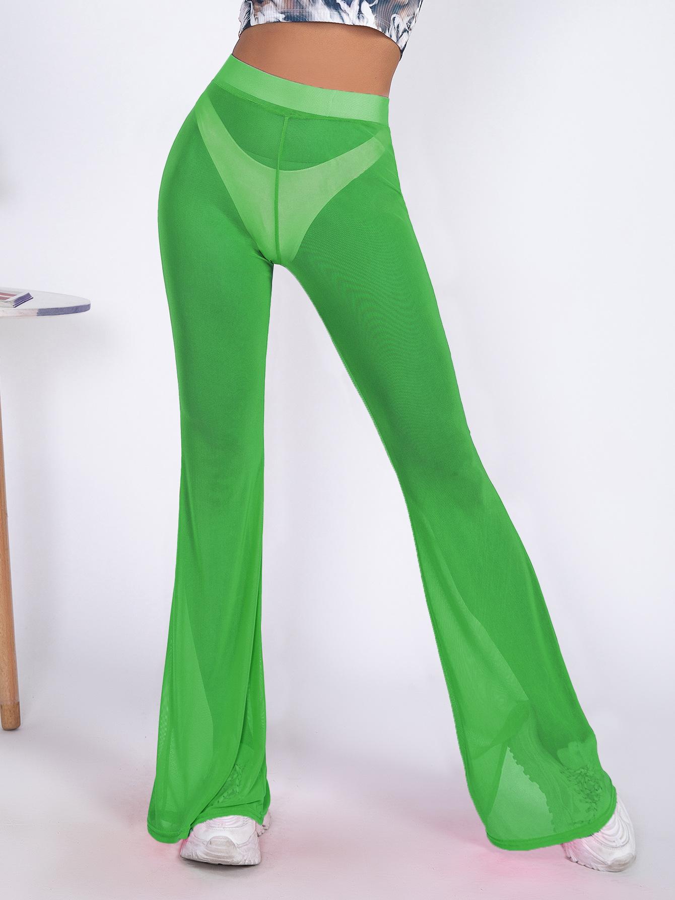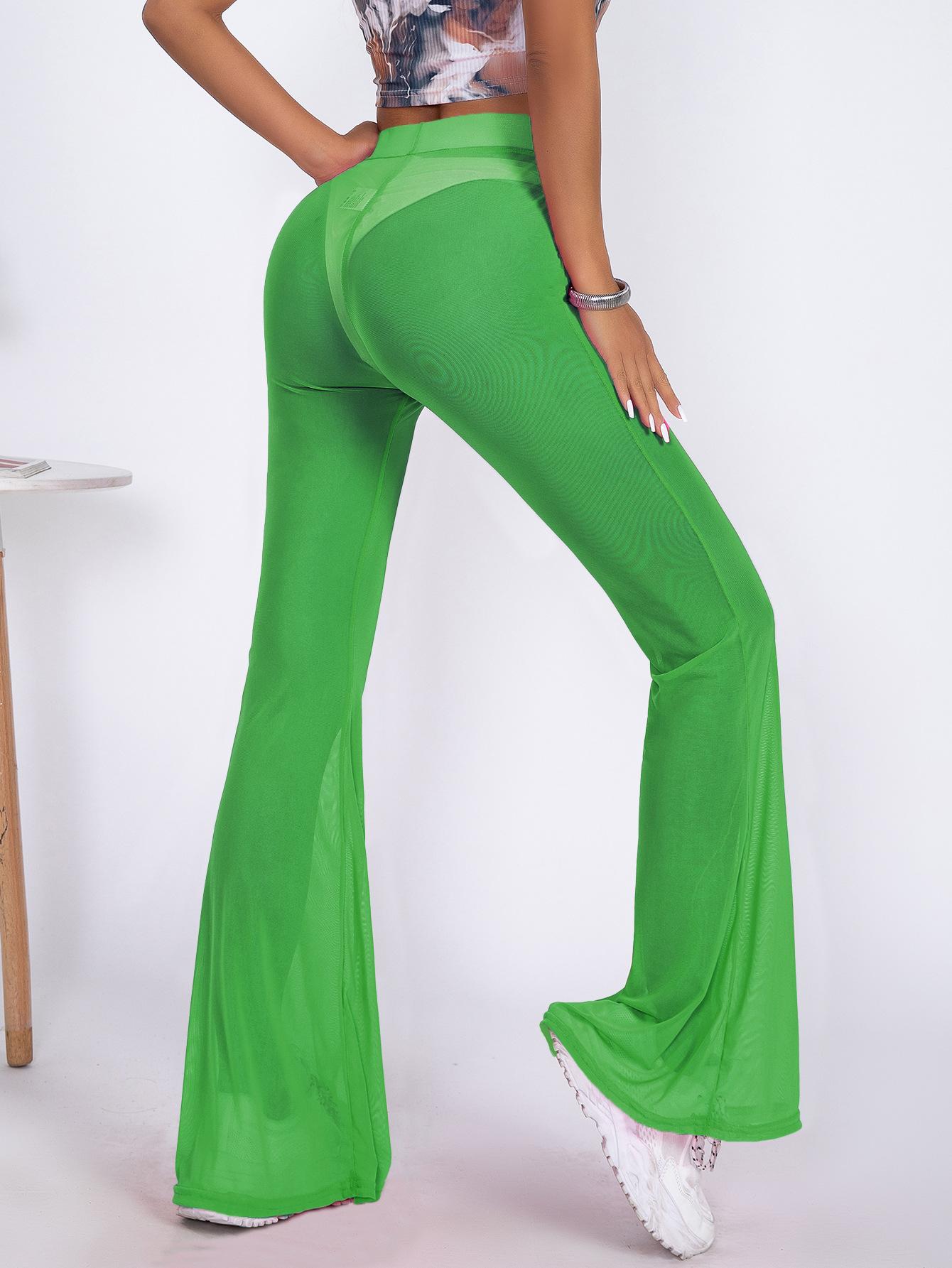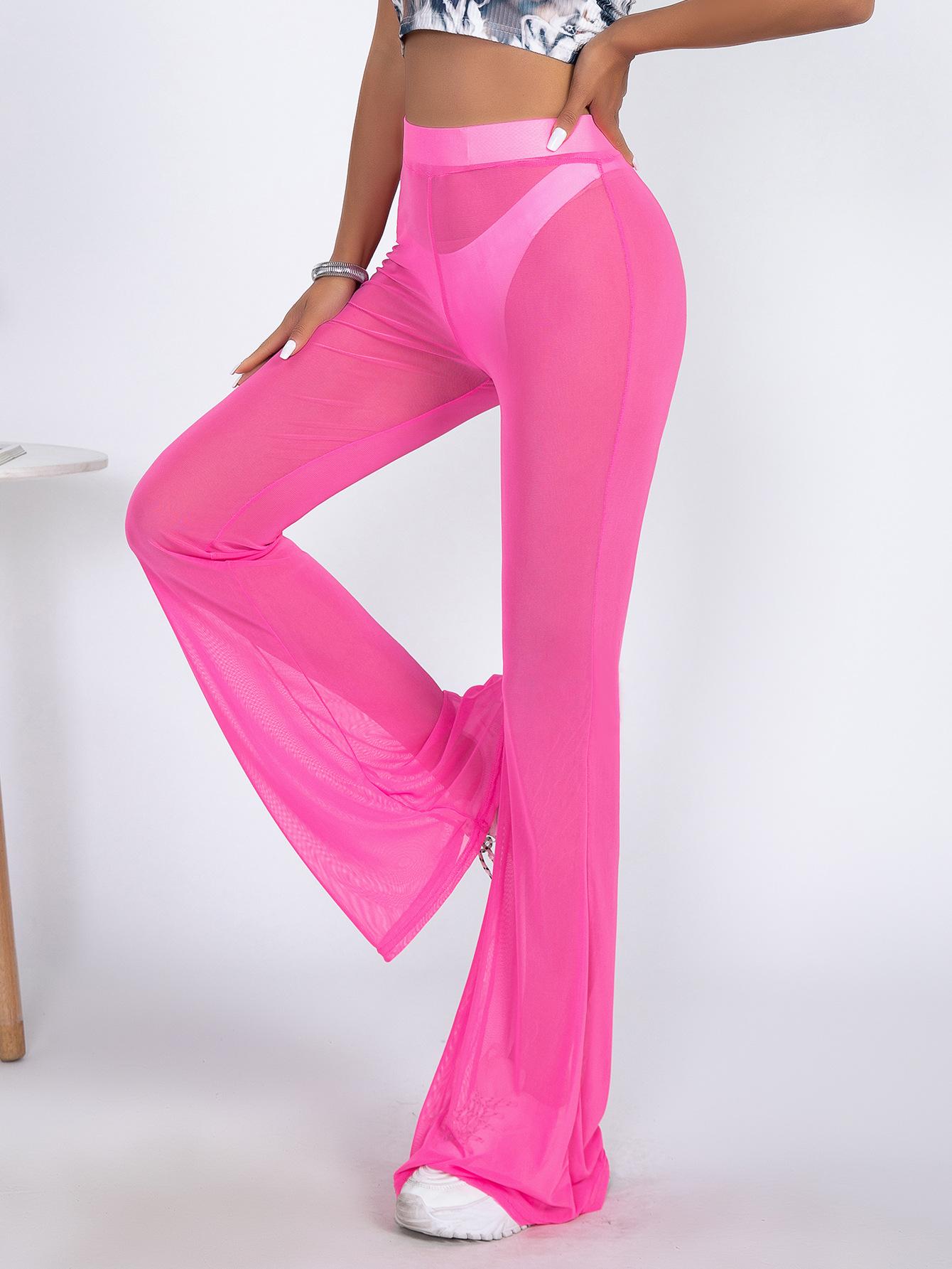 Verano de Venta Caliente Pantalones Acampanados de Malla Transparente Sexy Europeos y Americanos Elásticos Ajustados Transpirables Casuales de Pierna Ancha
