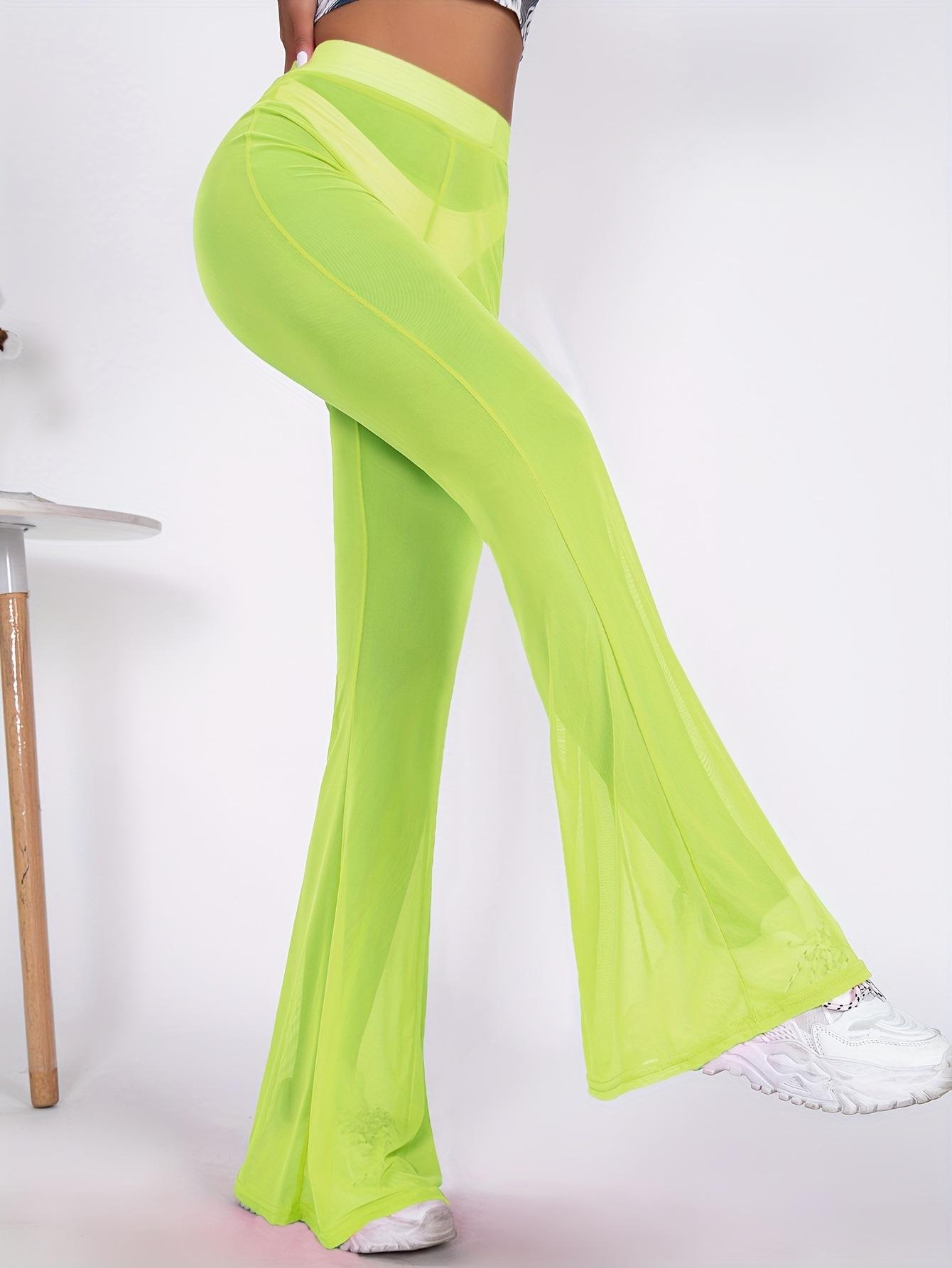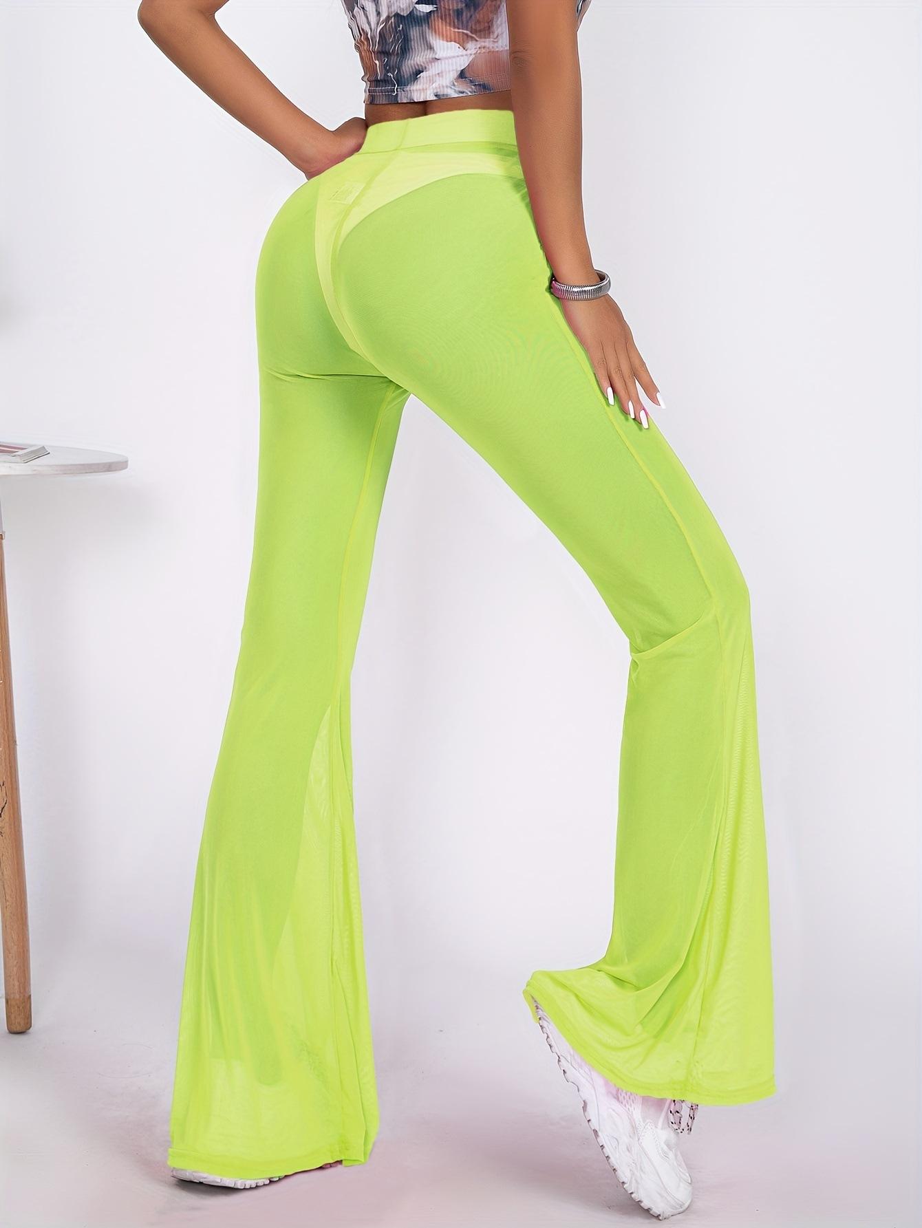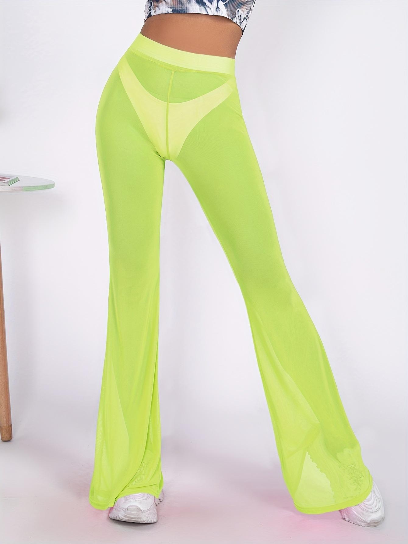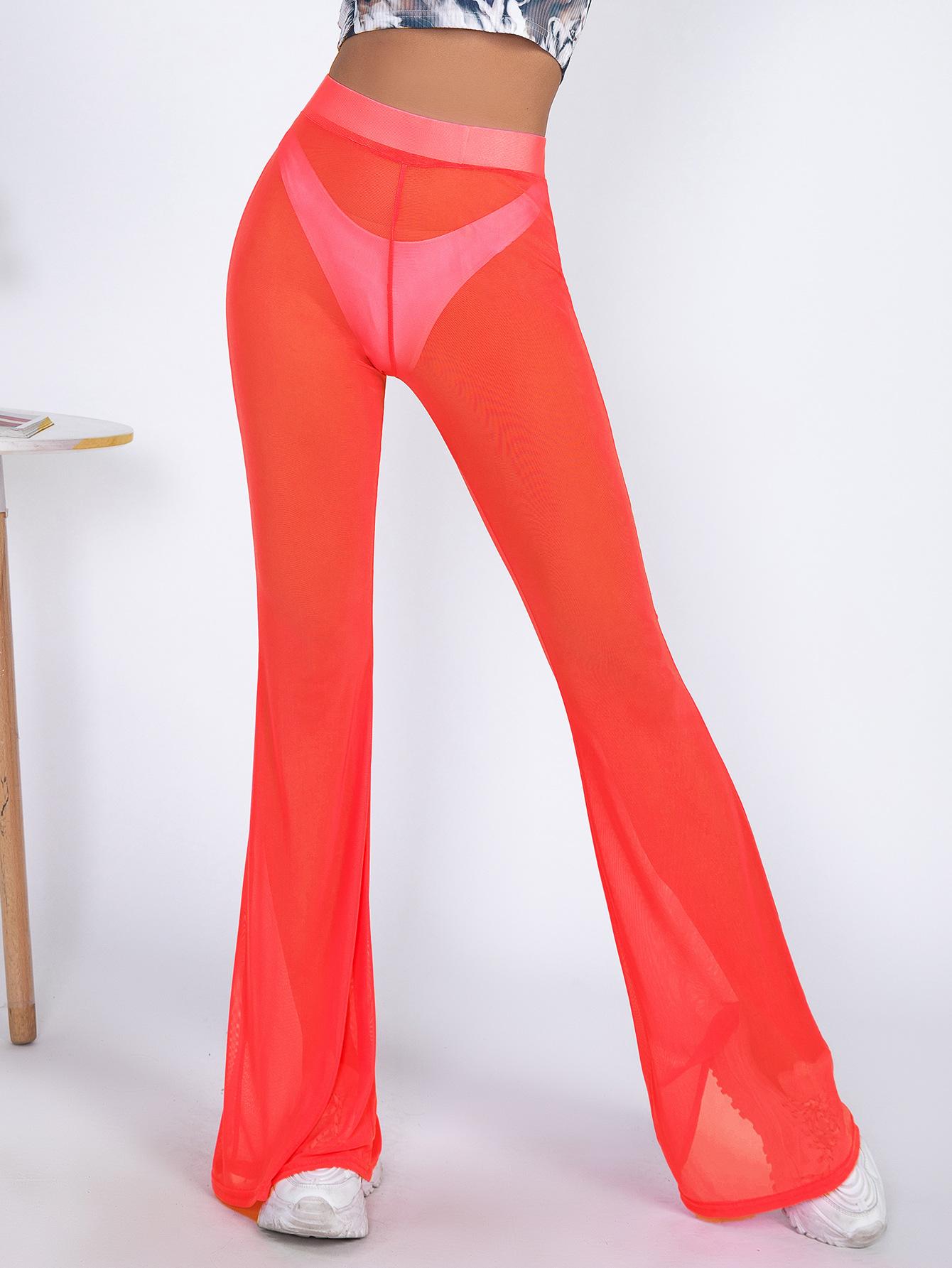 Verano de Venta Caliente Pantalones Acampanados de Malla Transparente Sexy Europeos y Americanos Elásticos Ajustados Transpirables Casuales de Pierna Ancha