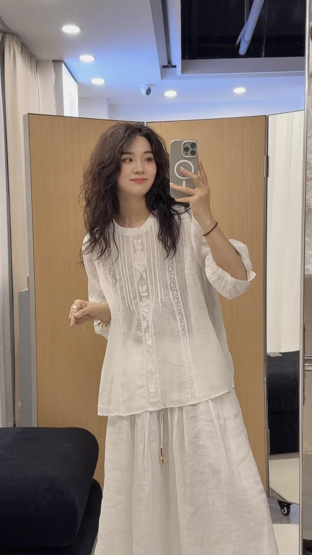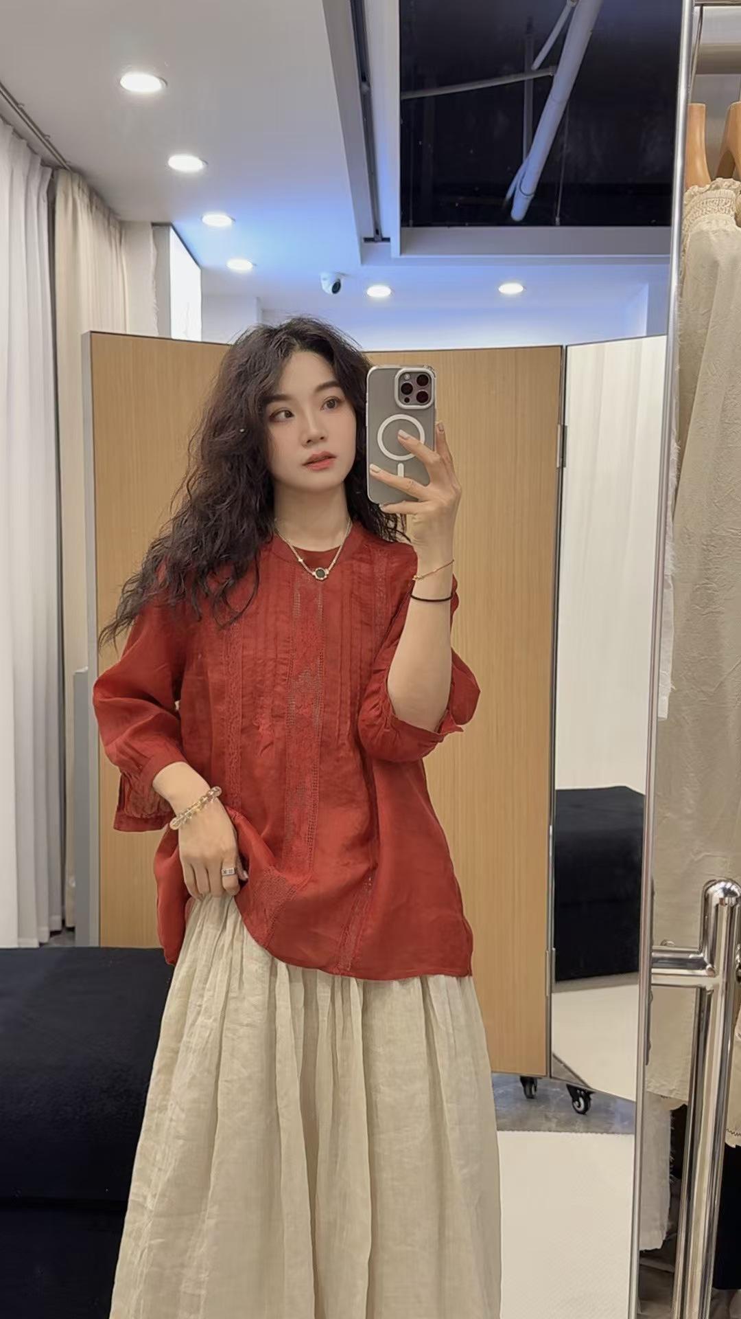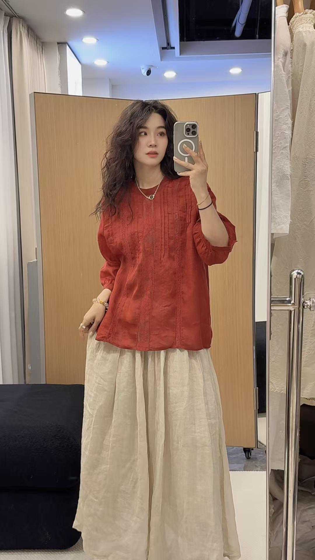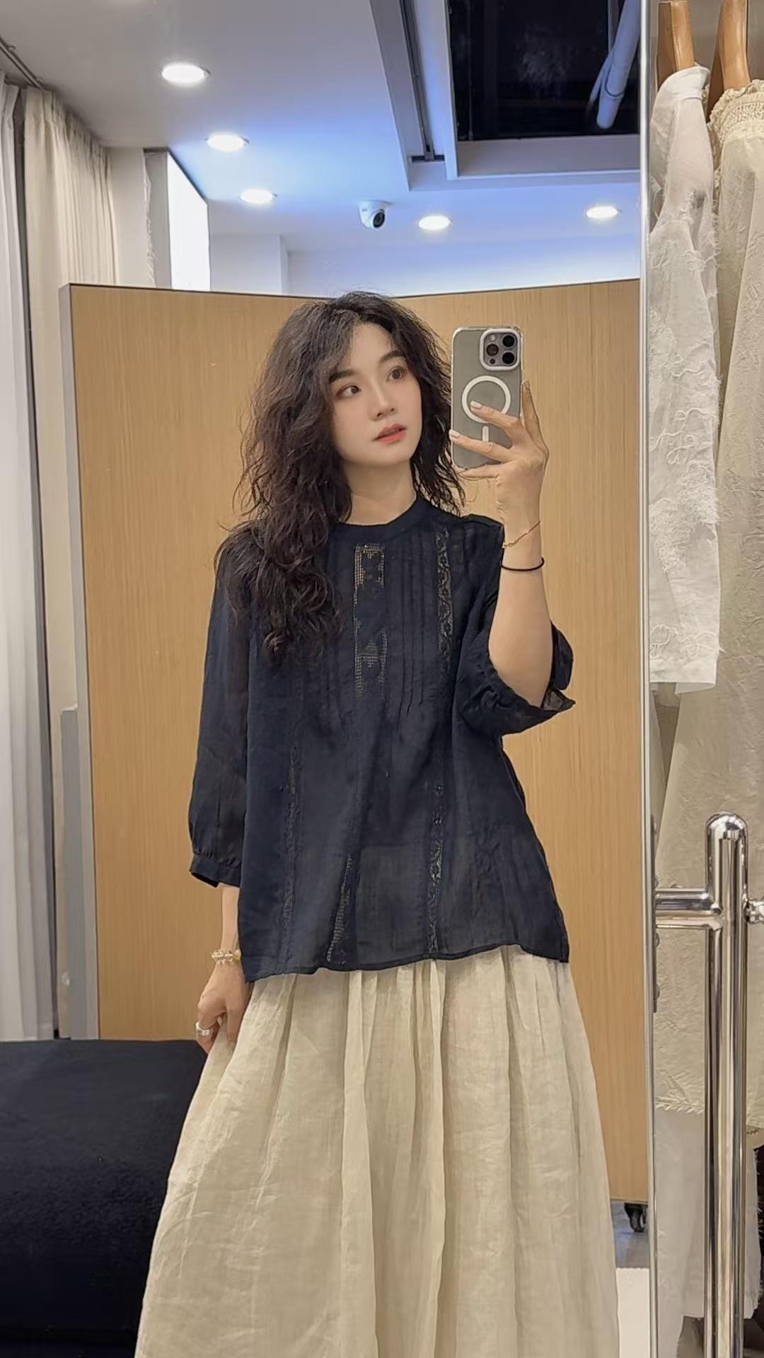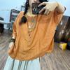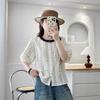 2025 Verano Nuevo Camisa Artística de Ramio Cuello Redondo Versión Holgada Jersey Camiseta de Color Puro Look Adelgazante Mujer