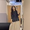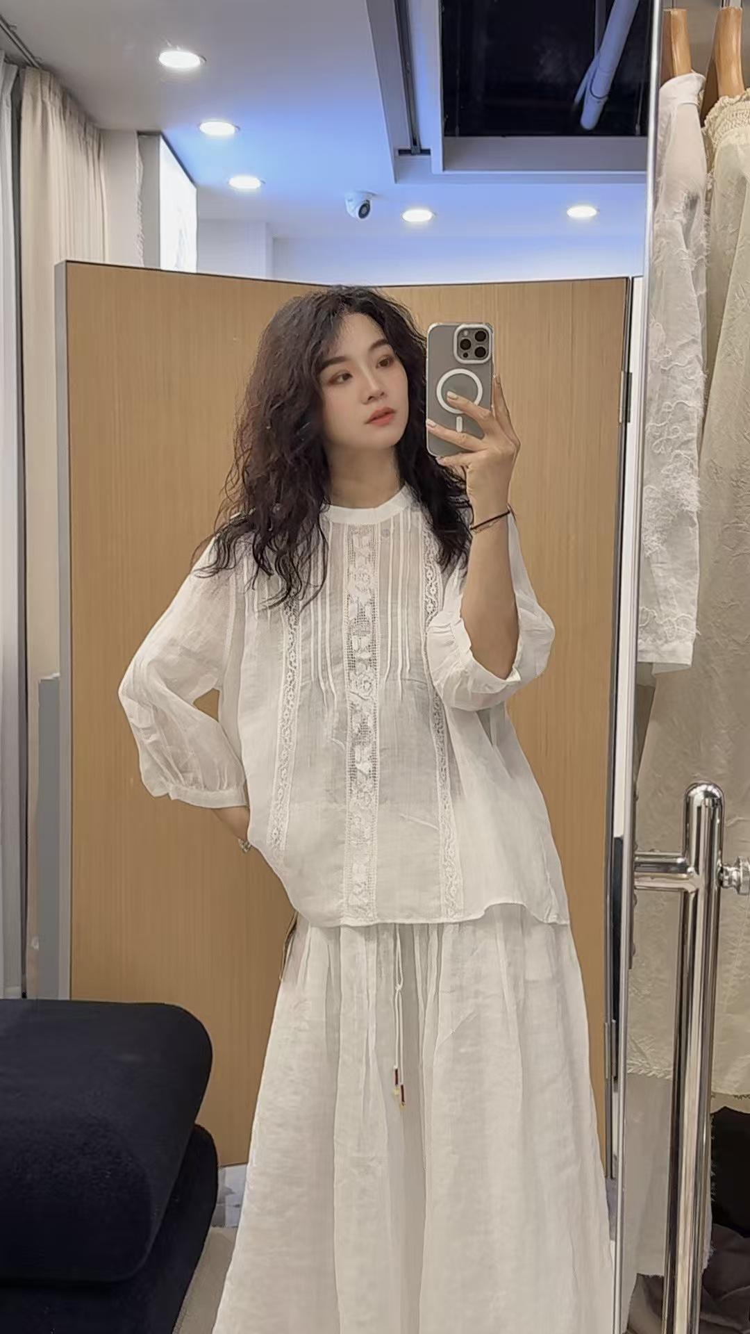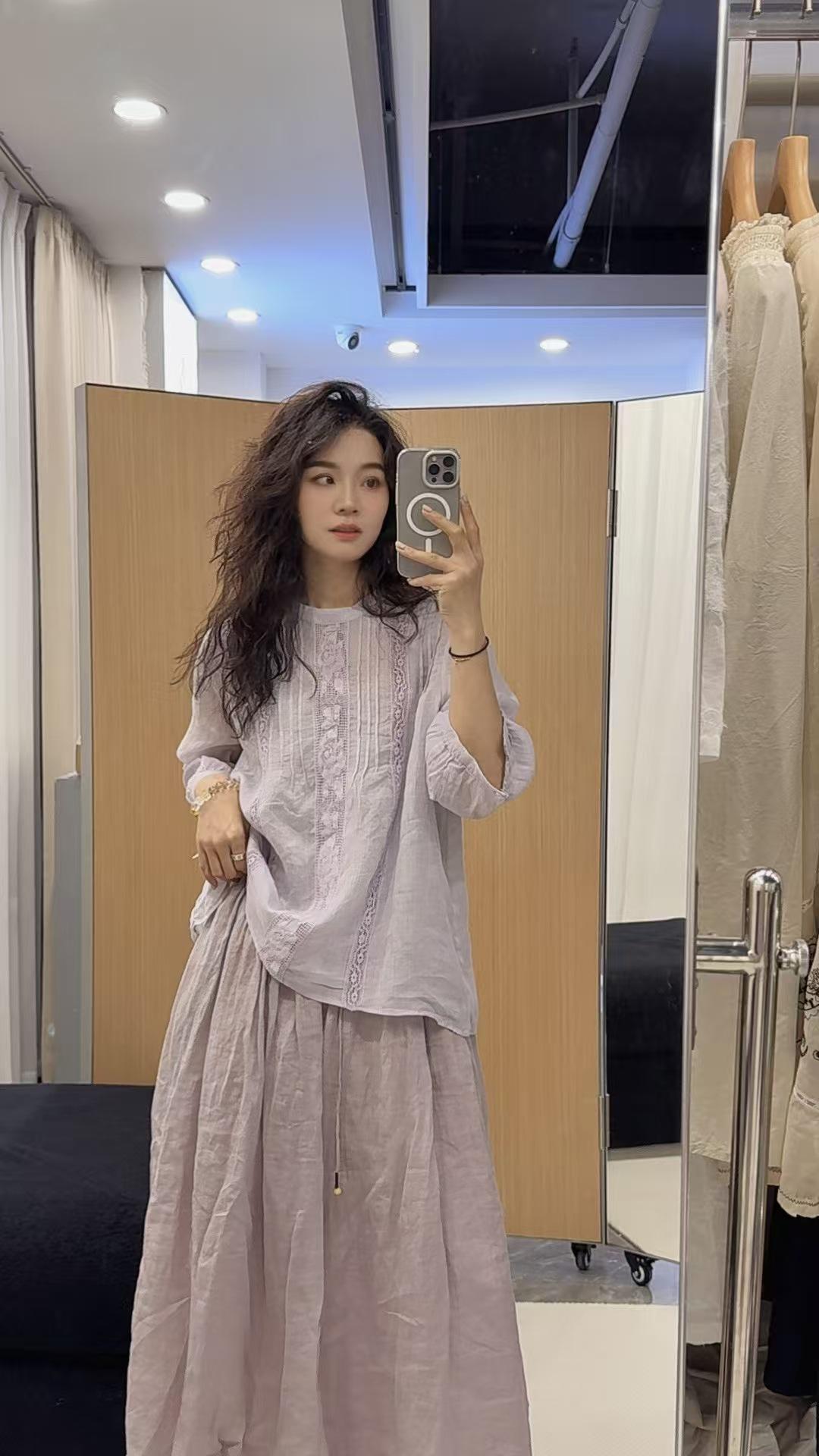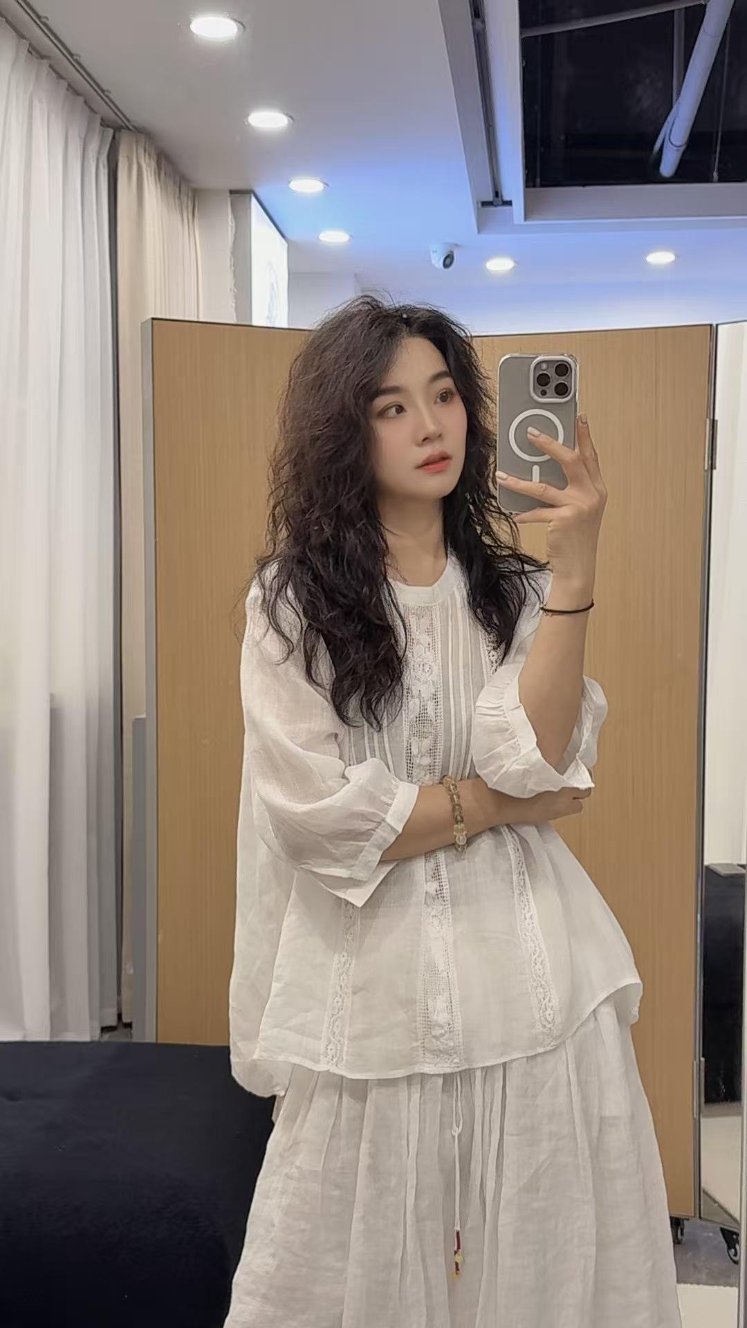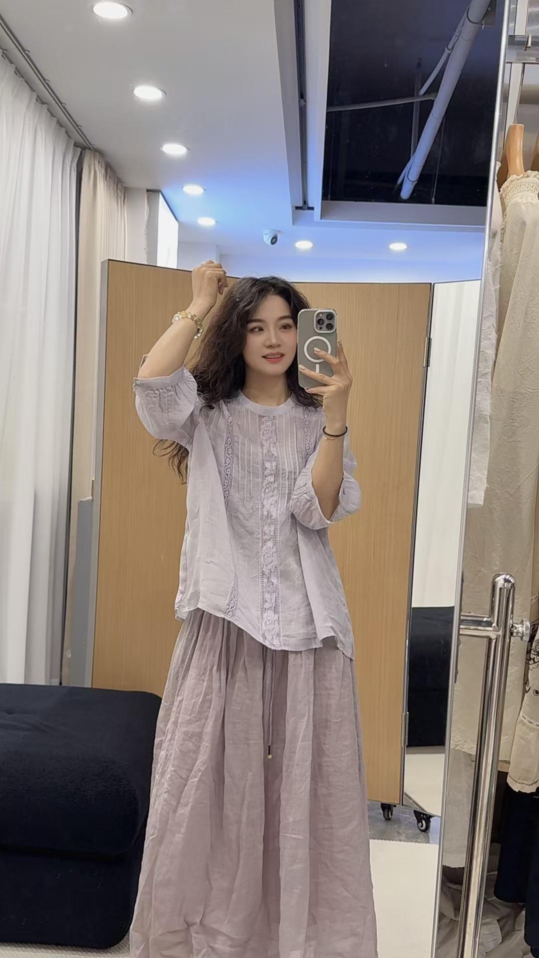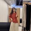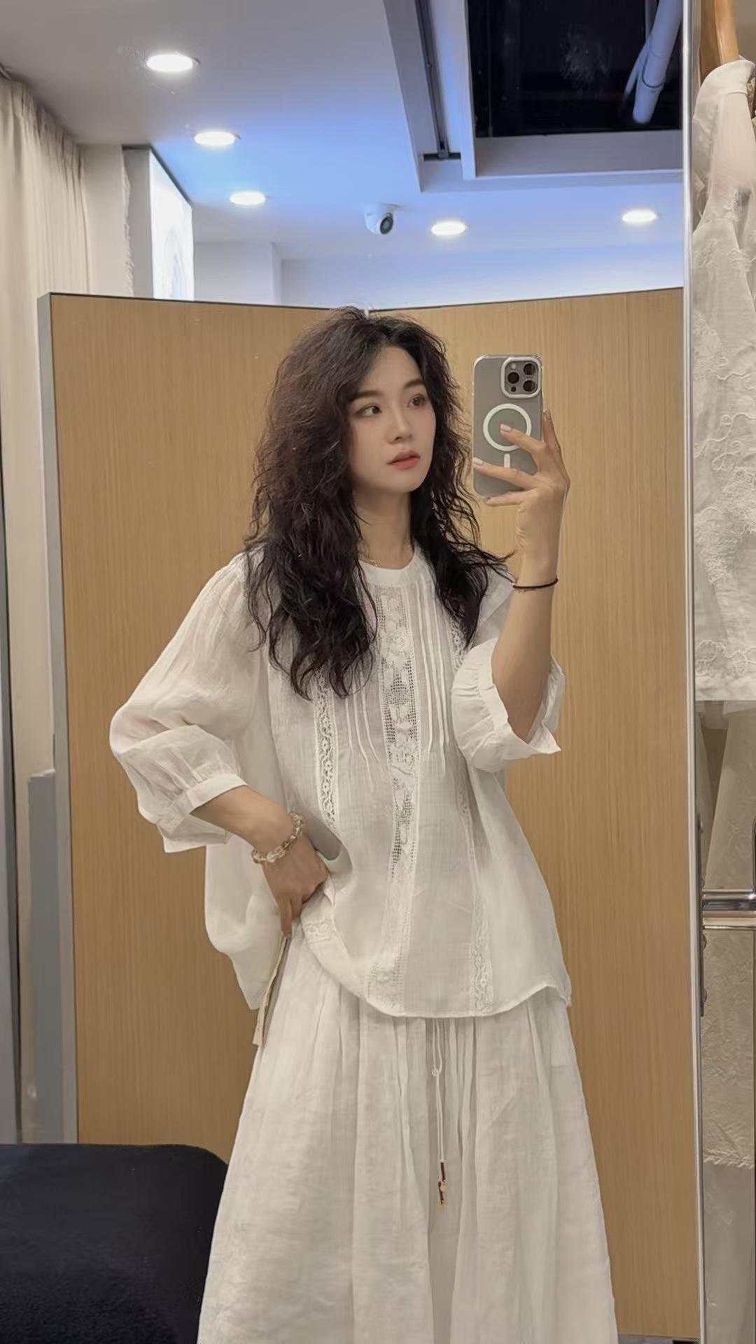 2025 Verano Nuevo Camisa Artística de Ramio Cuello Redondo Versión Holgada Jersey Camiseta de Color Puro Look Adelgazante Mujer
