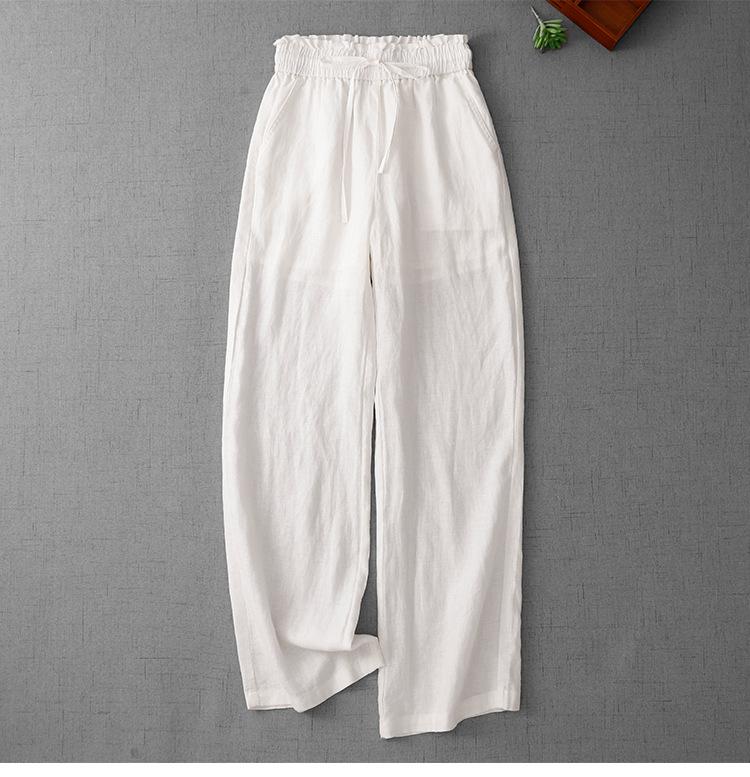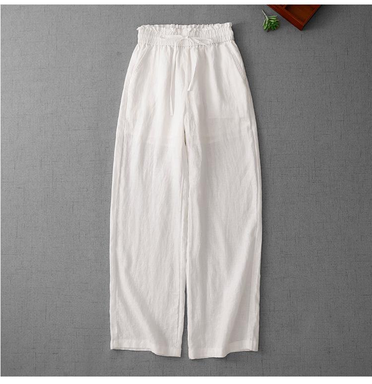 Foto real de 2025 Nuevo Pantalón Holgado de Pierna Ancha para Mujer, Delgado, Versátil, con Caída, Cintura Alta, Blanco, Adelgazante, Casual, de Pierna Recta