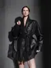 Chaqueta de Cuero Fresca y Elegante que Ceñe la Cintura para Mujer, Gabardina de Piel de Oveja de Longitud Media, Ropa de Abrigo de Piel de Oveja de Alta Gama, Nuevo Modelo de Primavera