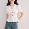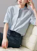 2025 Nueva Moda de Verano Tops Blusas de Rayas de Manga Corta para Mujer Moda
