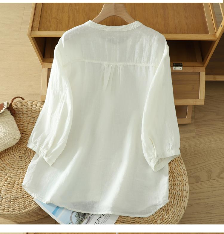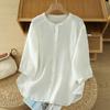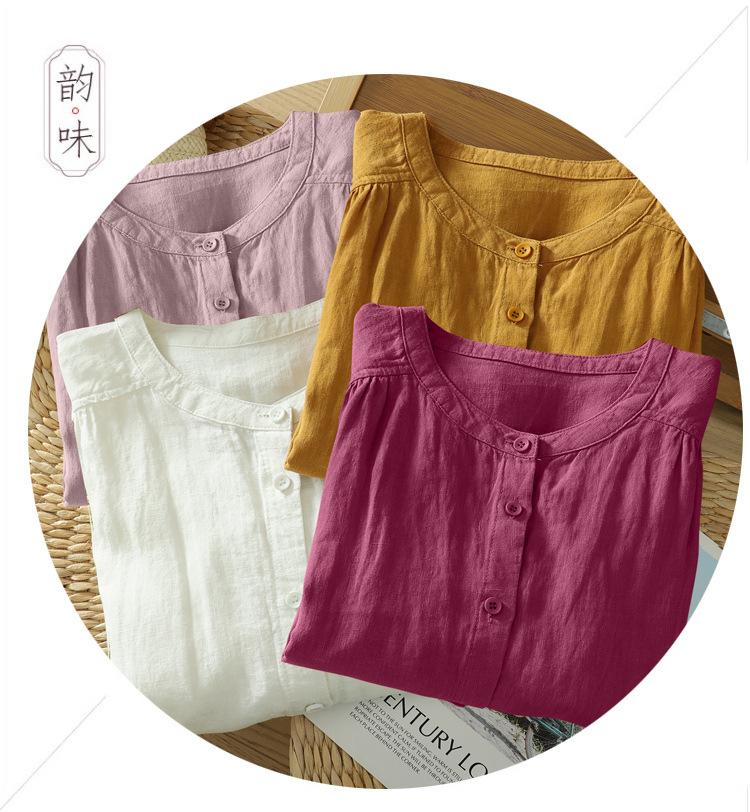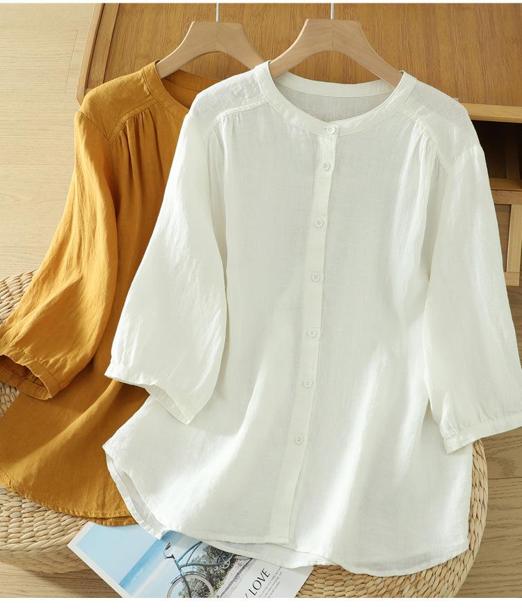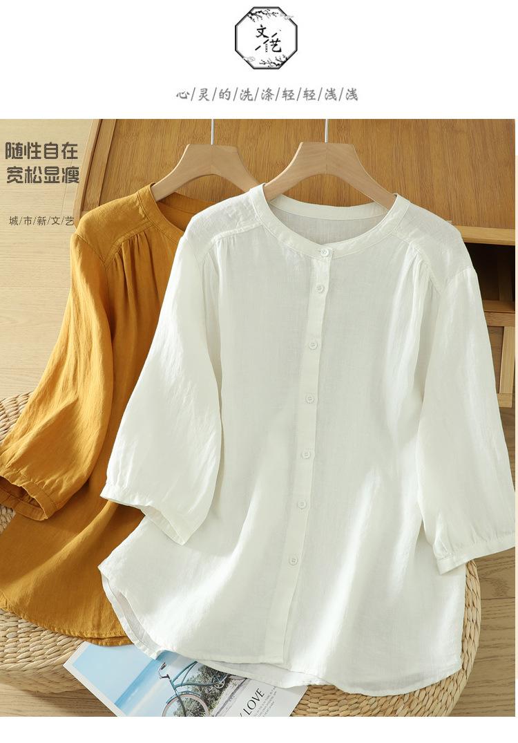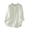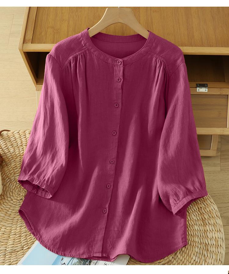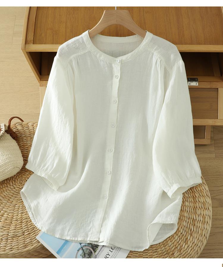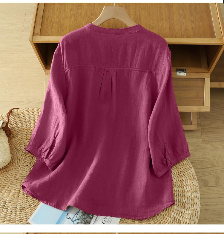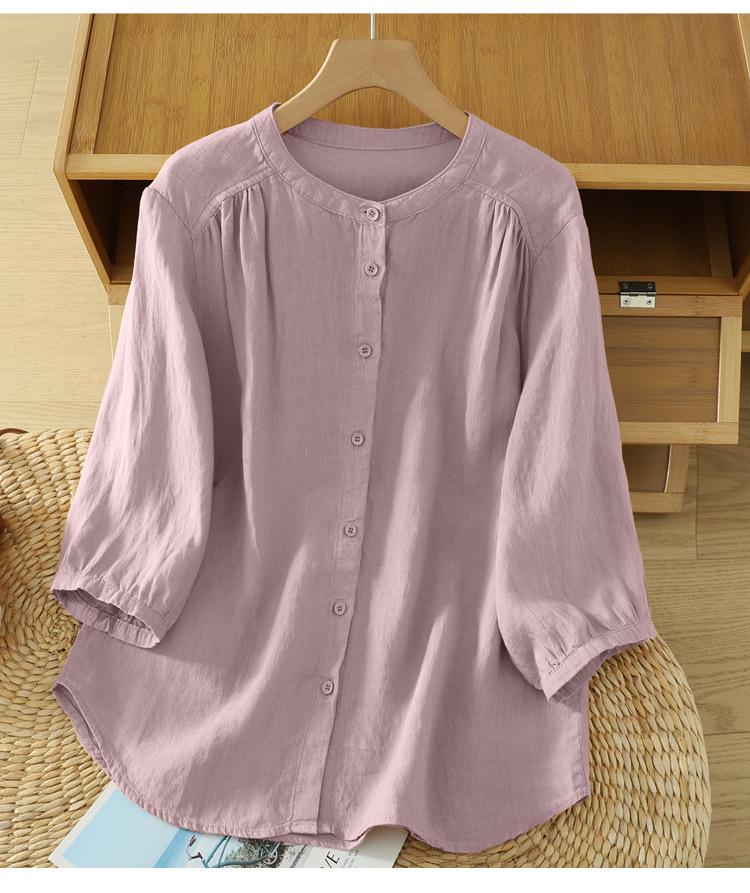 2025 Nuevo Estilo de Verano Literario Retro Simple Algodón y Lino Camisa para Mujer Slim y Versátil Top de Manga Tres Cuartos