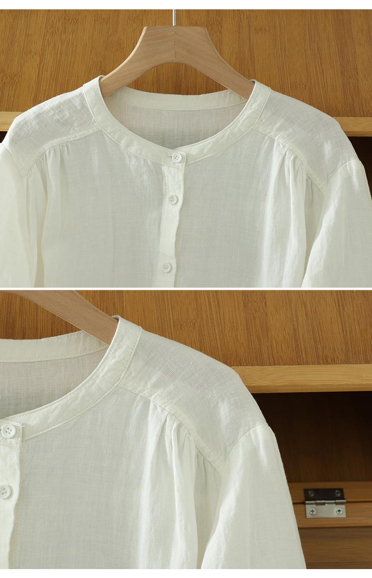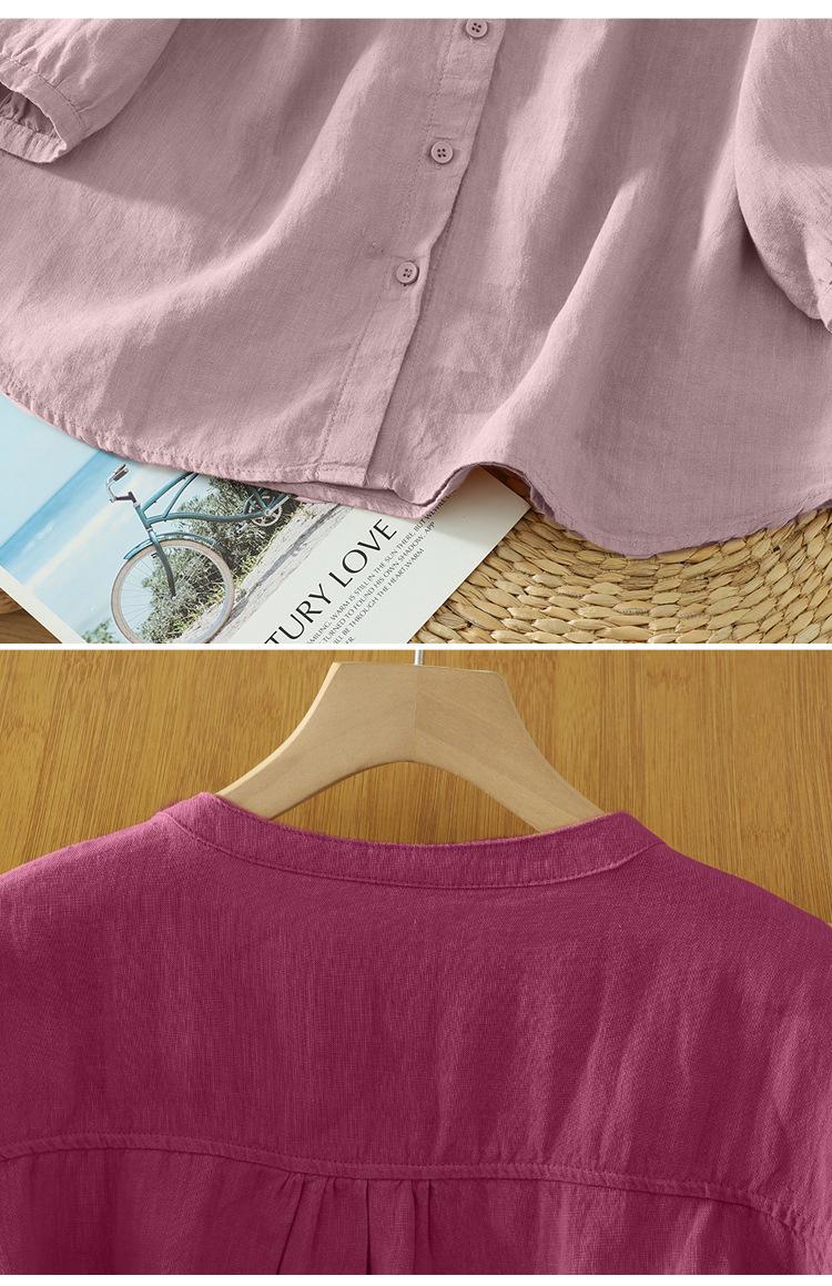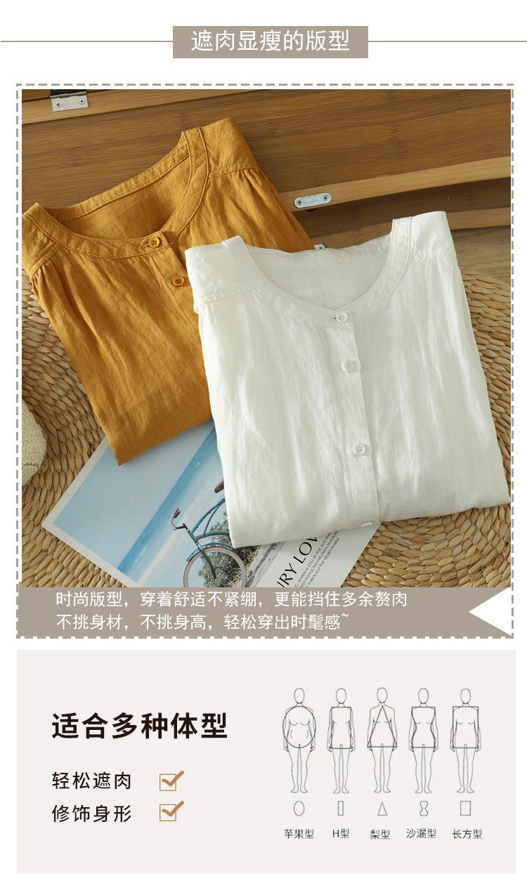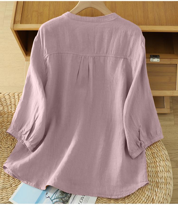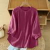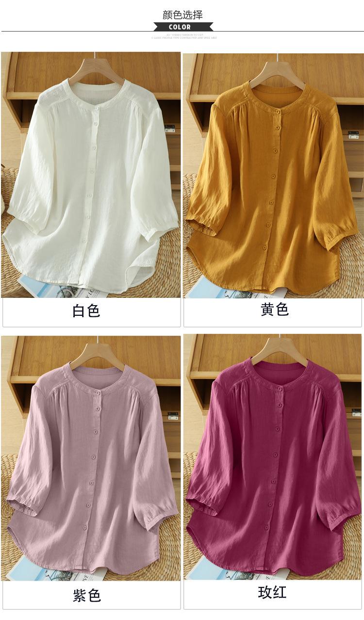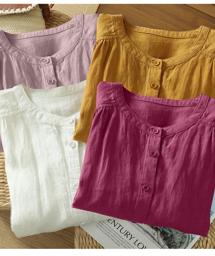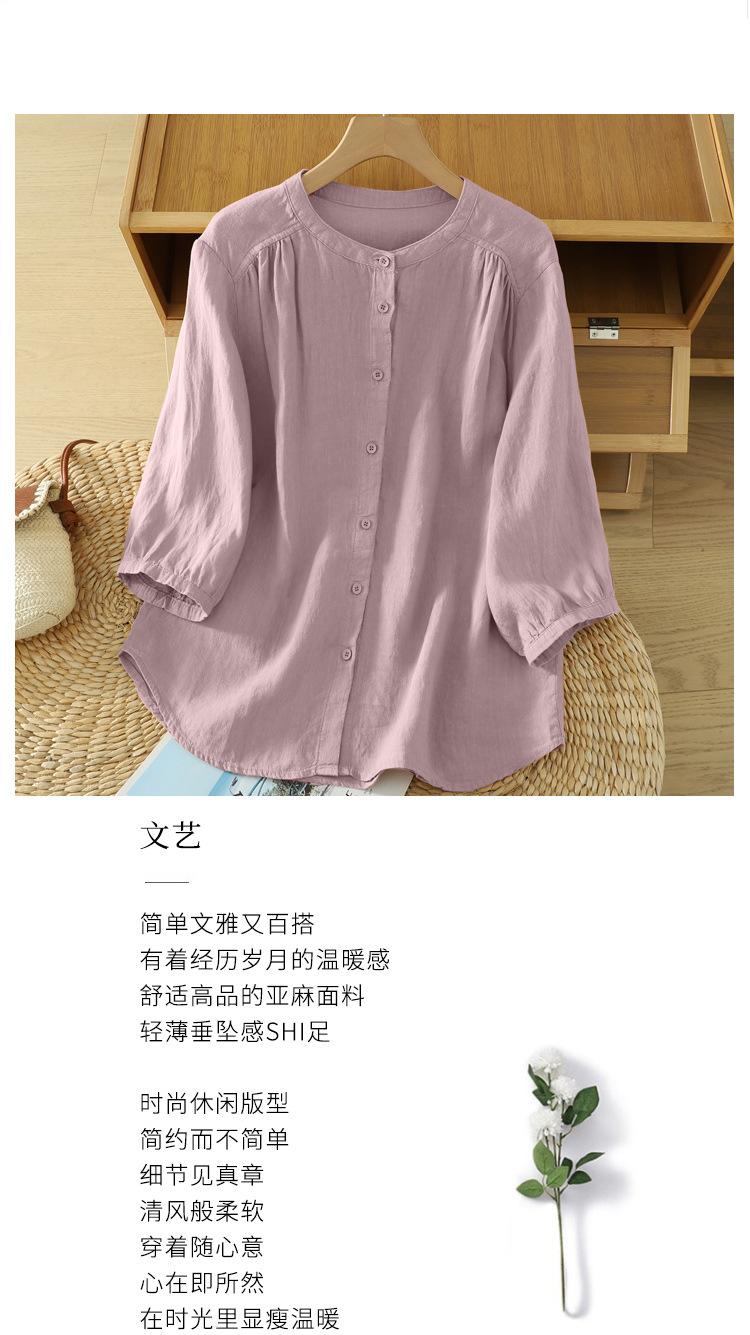 2025 Nuevo Estilo de Verano Literario Retro Simple Algodón y Lino Camisa para Mujer Slim y Versátil Top de Manga Tres Cuartos