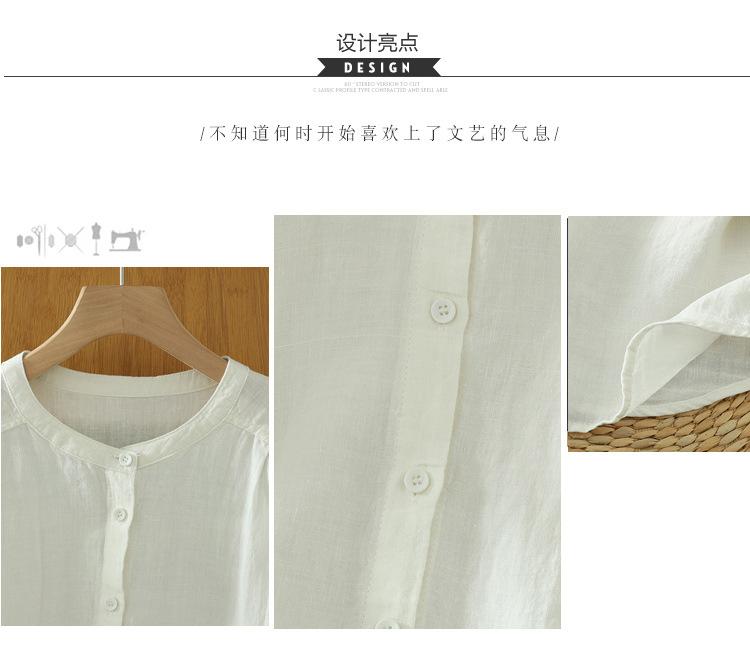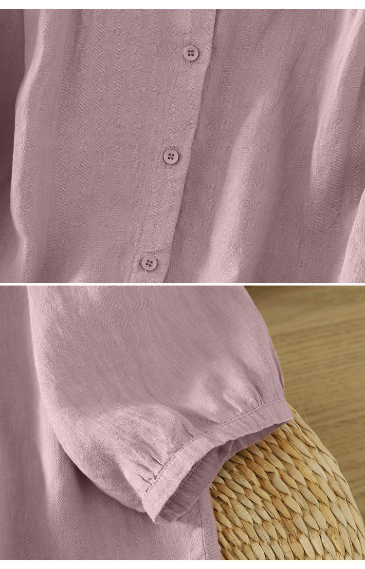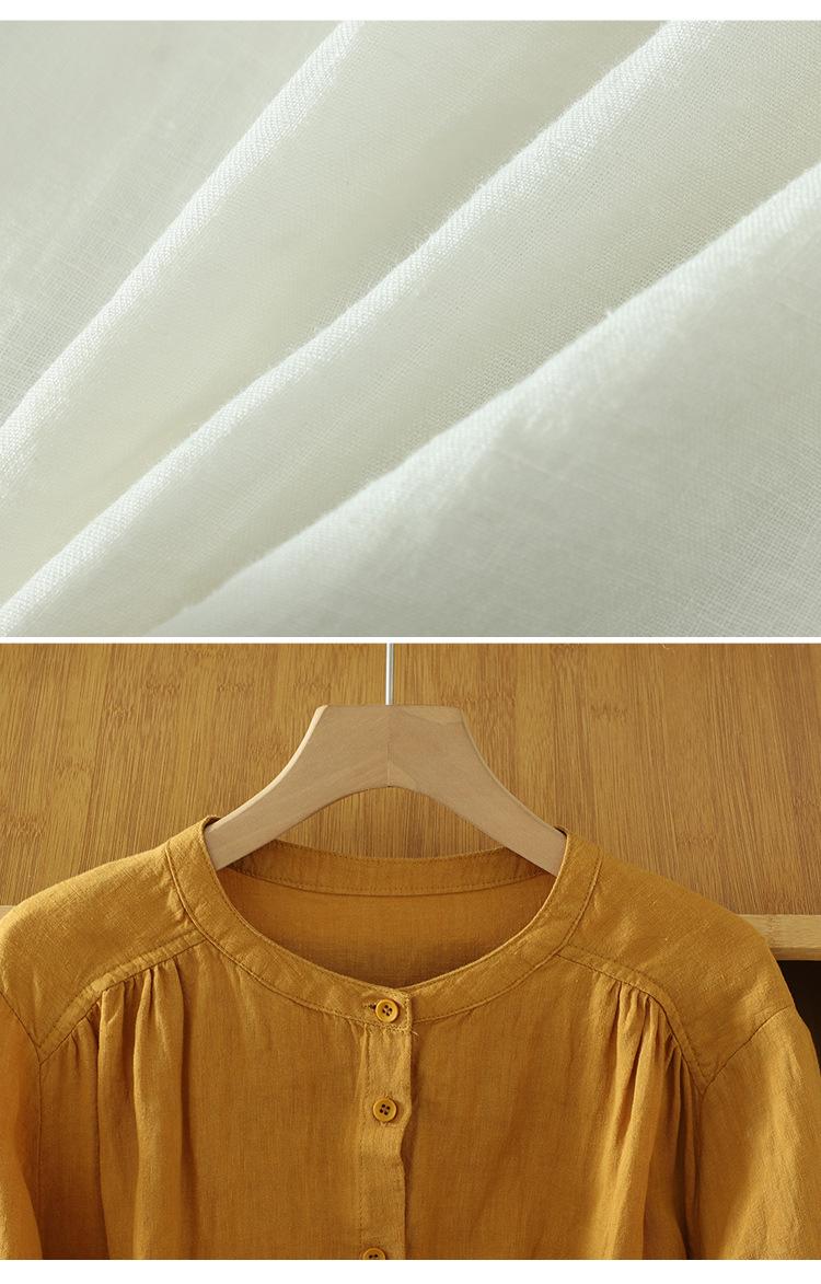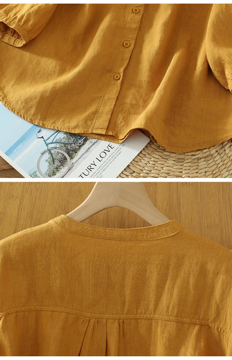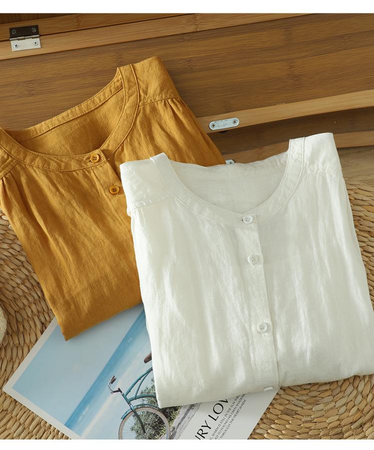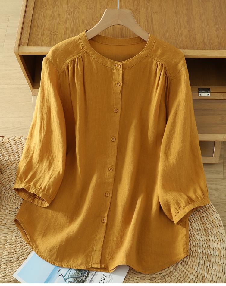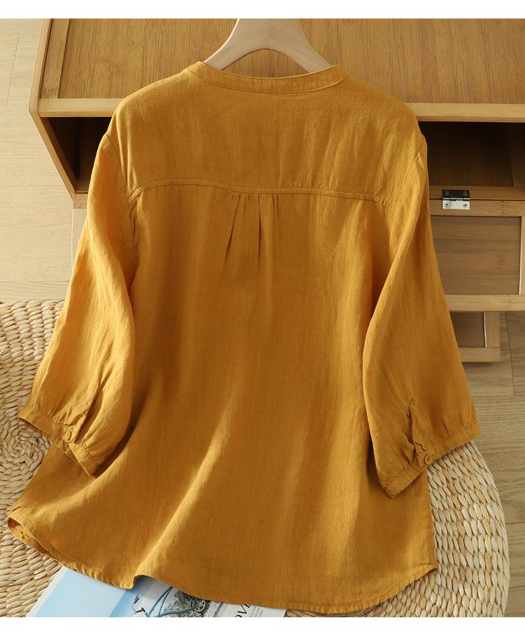 2025 Nuevo Estilo de Verano Literario Retro Simple Algodón y Lino Camisa para Mujer Slim y Versátil Top de Manga Tres Cuartos