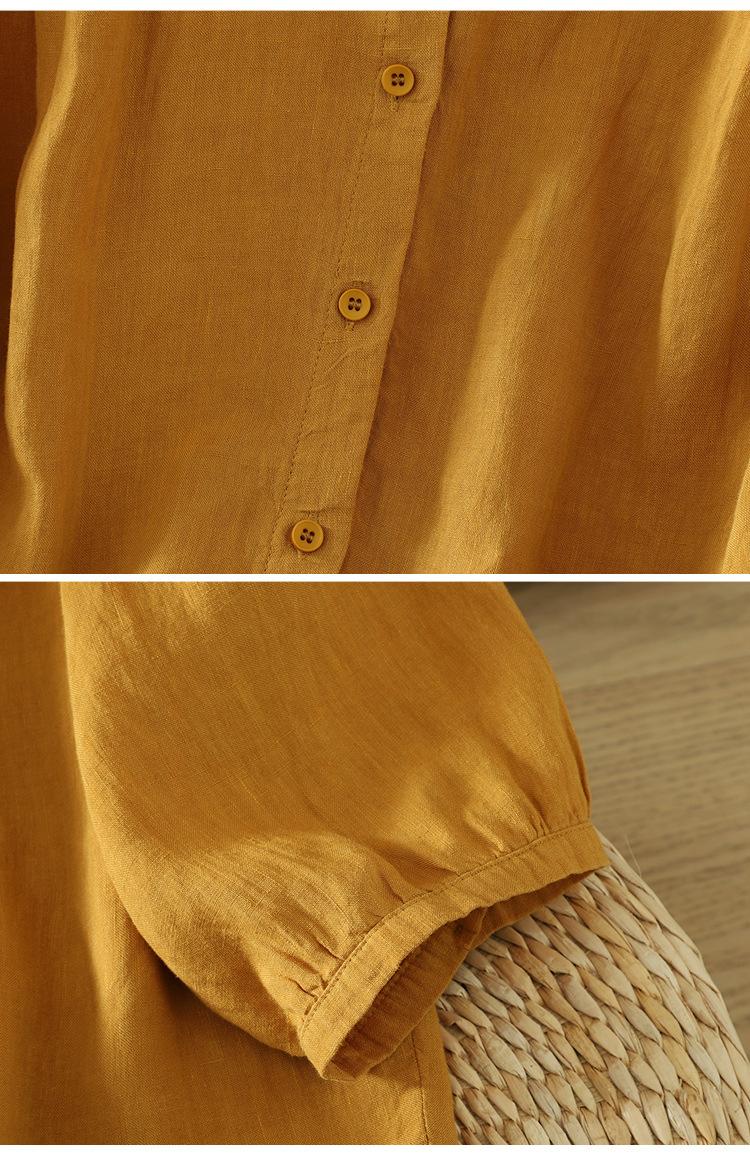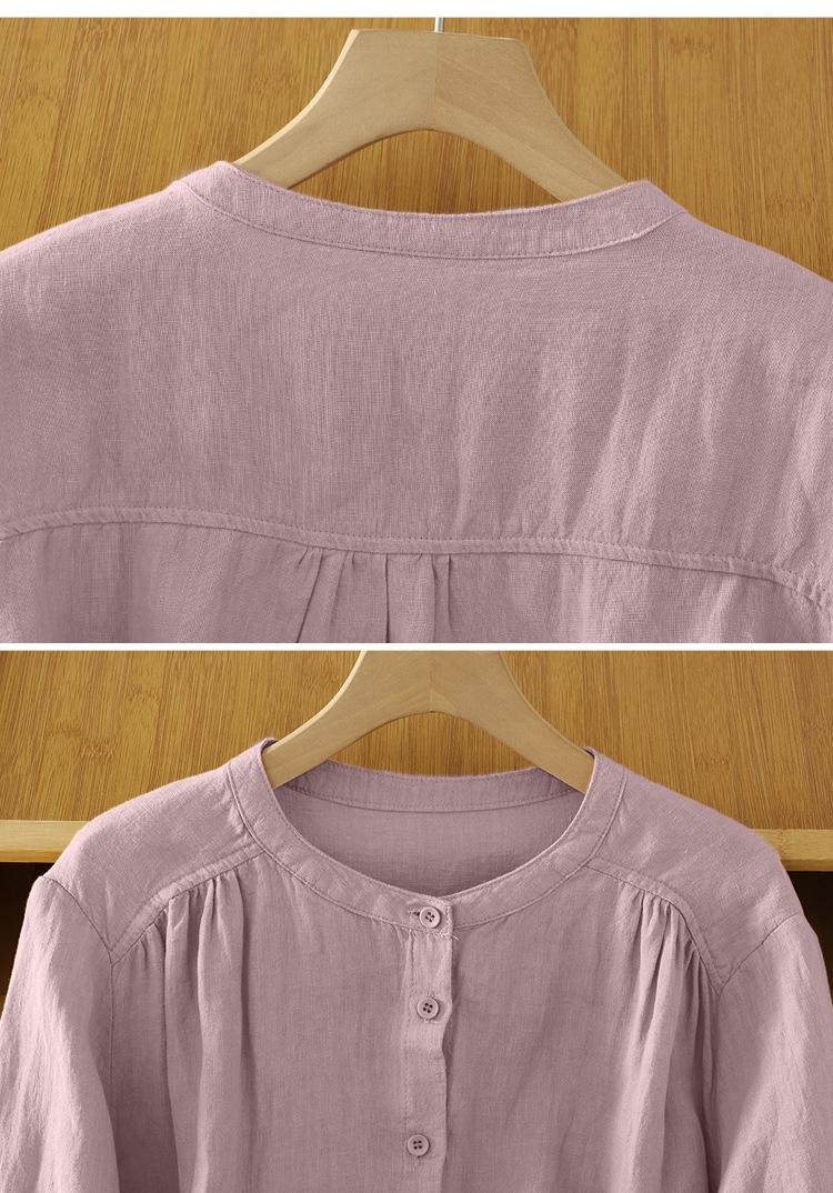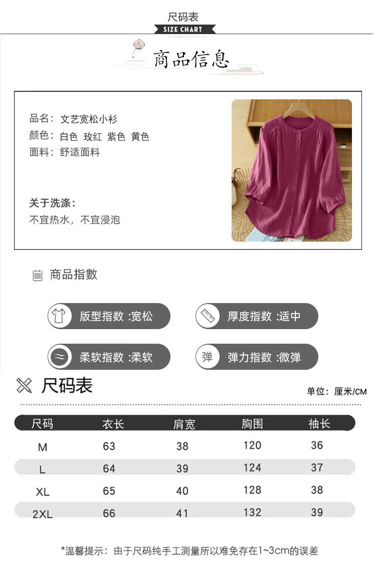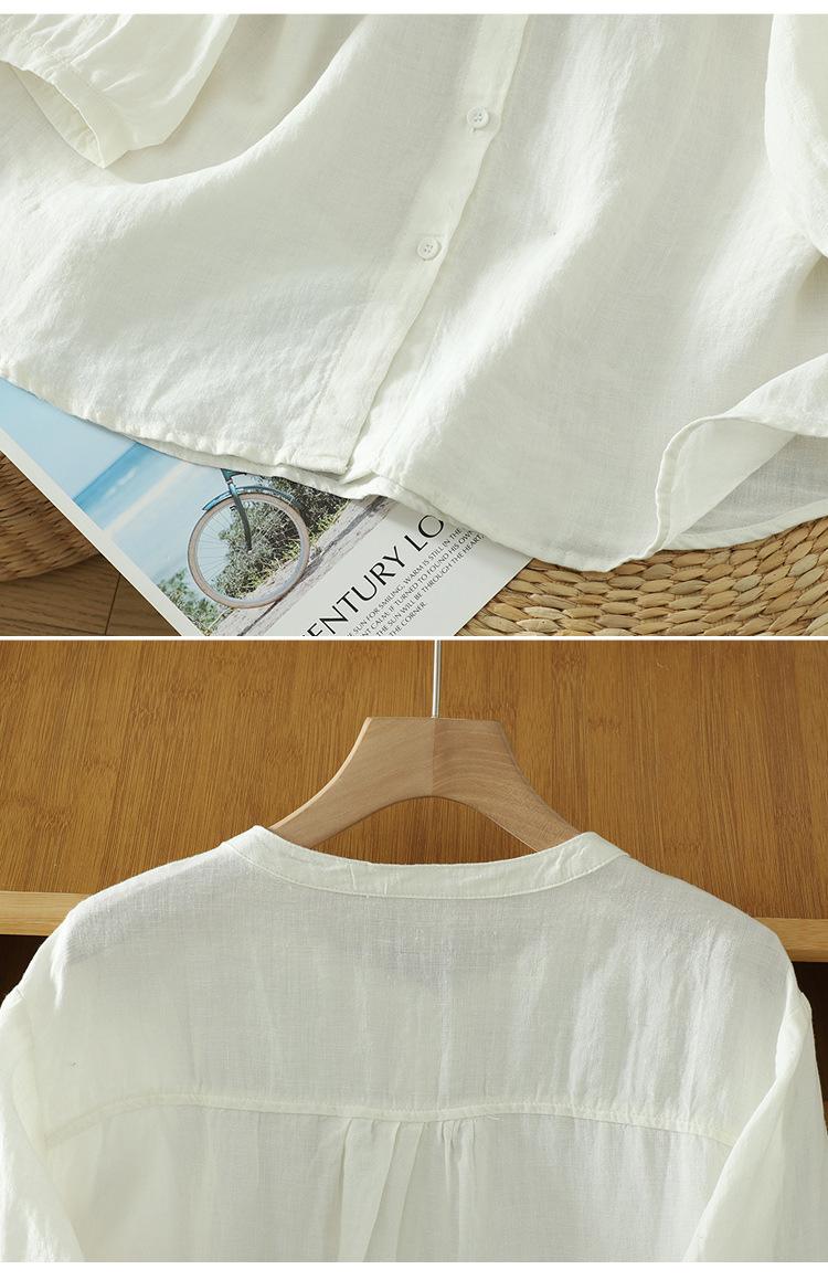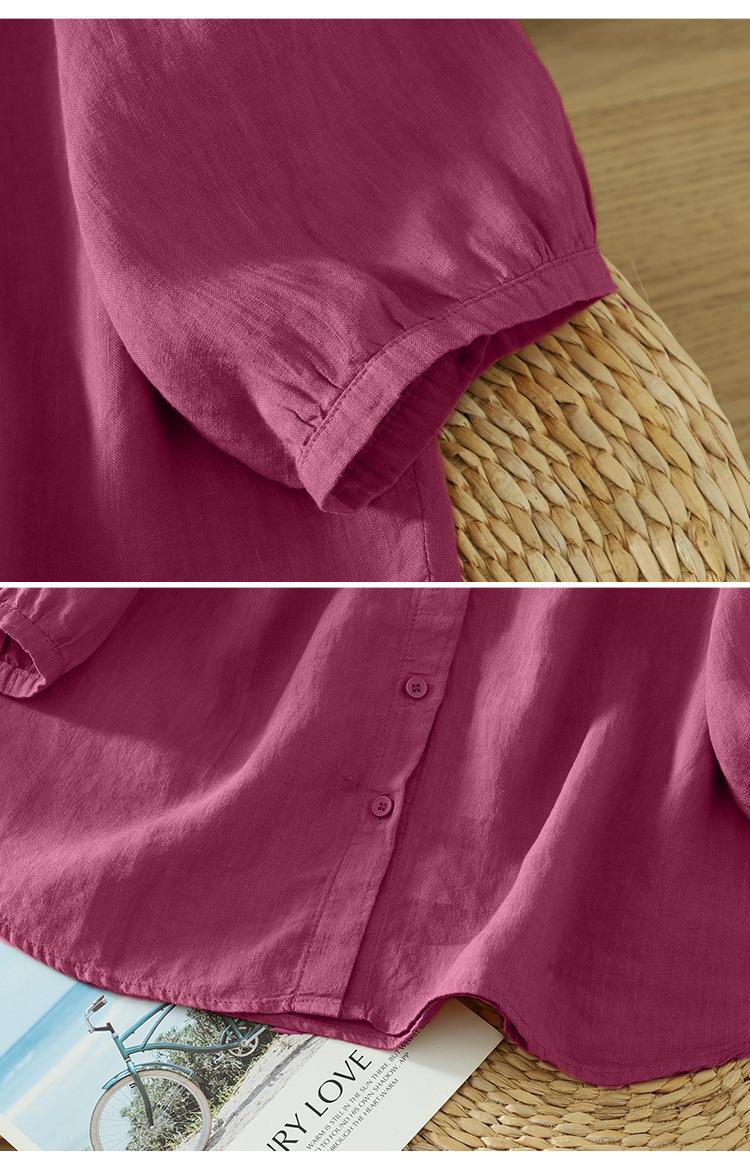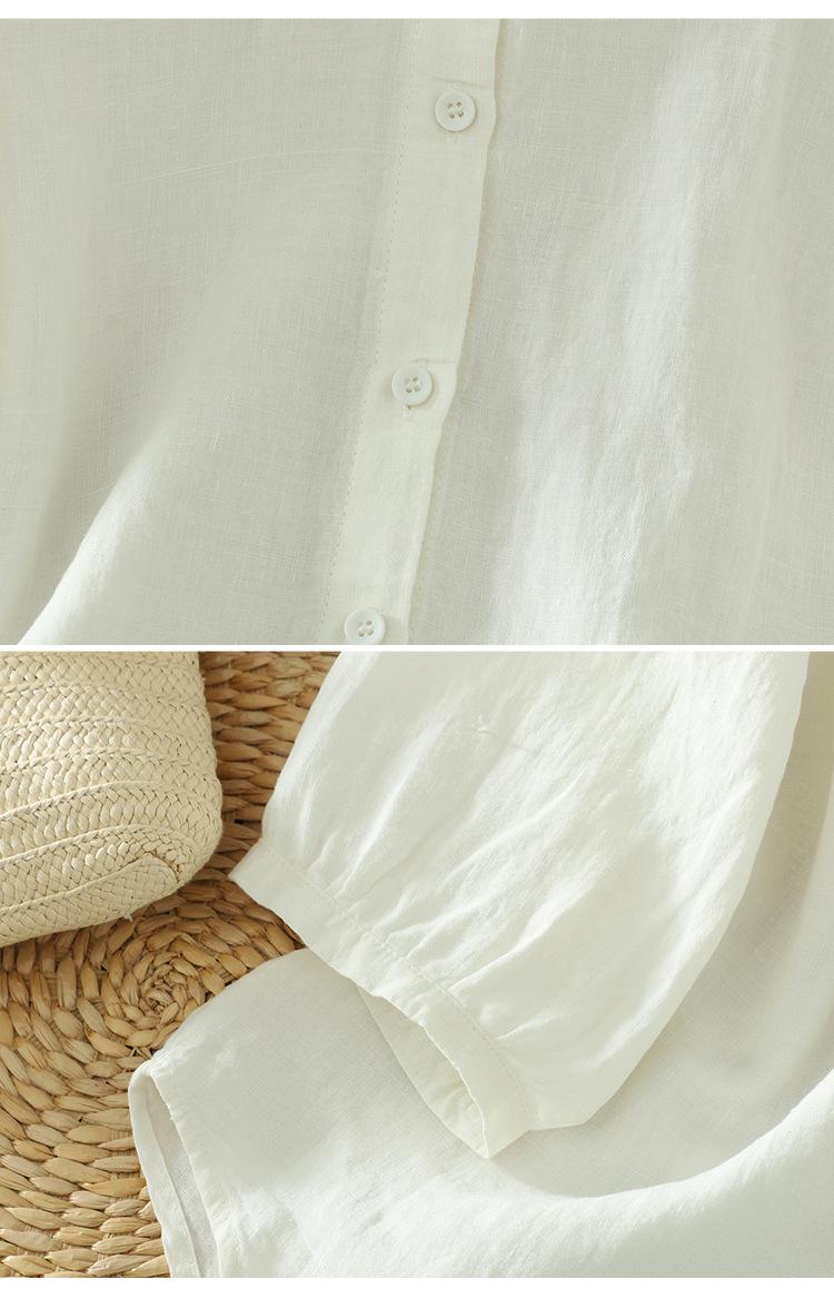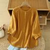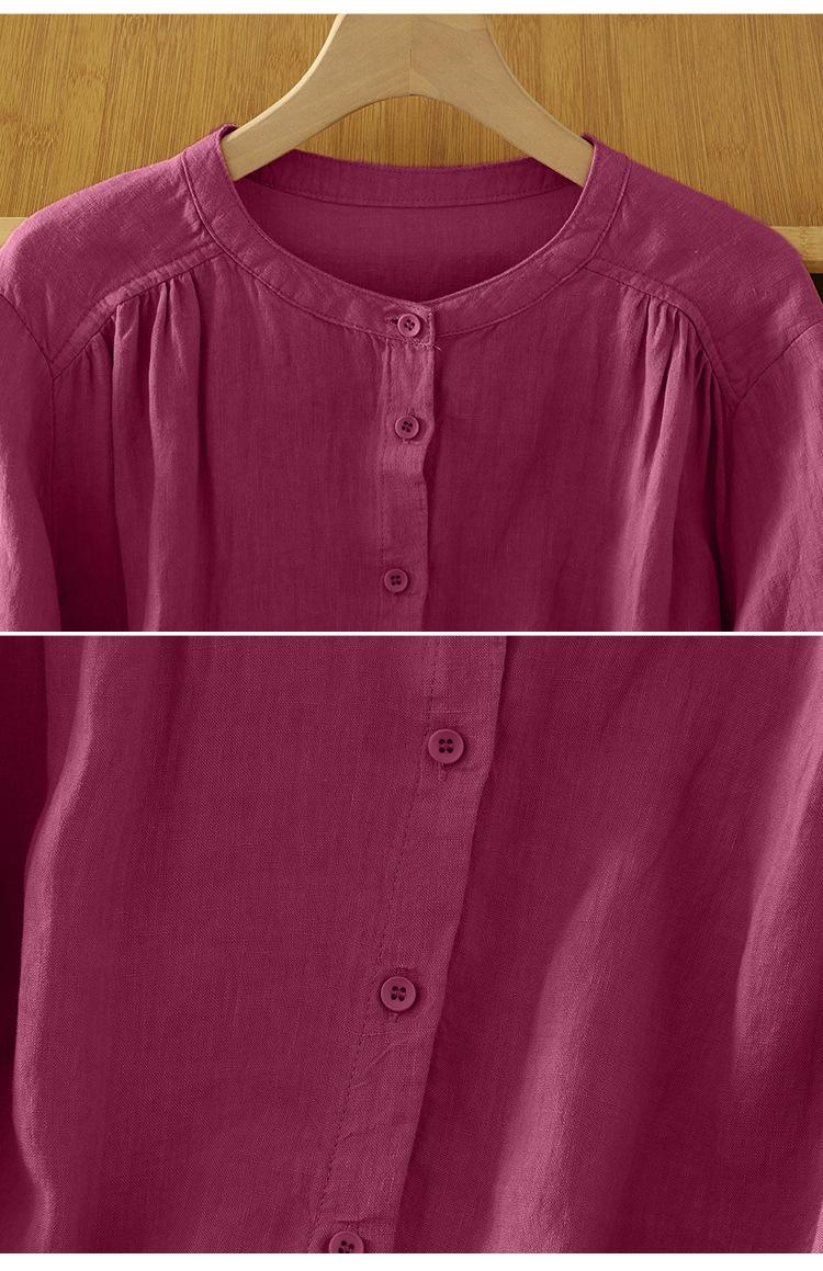 2025 Nuevo Estilo de Verano Literario Retro Simple Algodón y Lino Camisa para Mujer Slim y Versátil Top de Manga Tres Cuartos