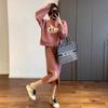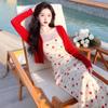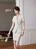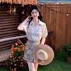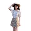 Sensación de relajación veraniega reductor de edad un conjunto de camisa de encaje calado de manga abullonada color albaricoque traje de falda floral