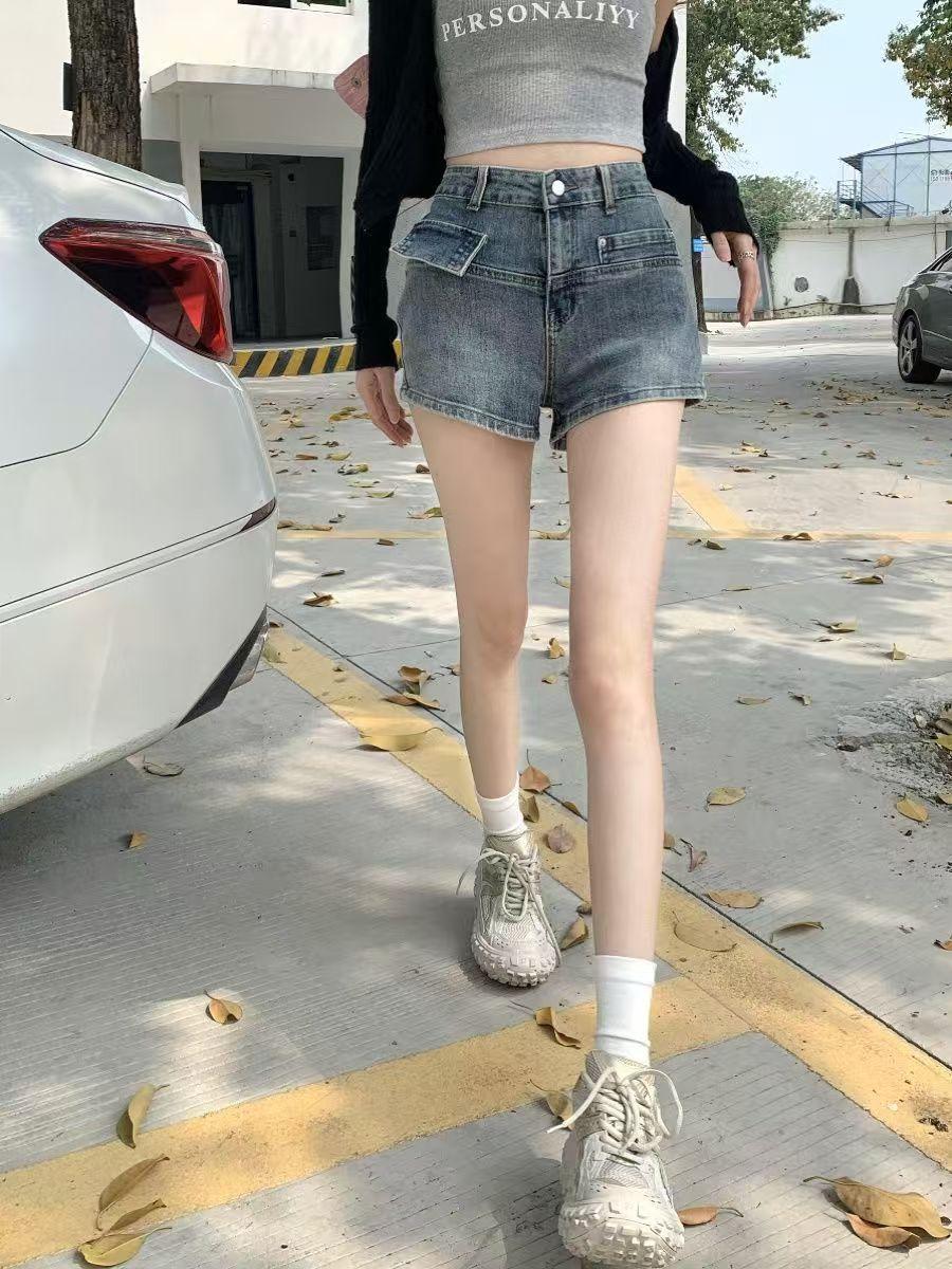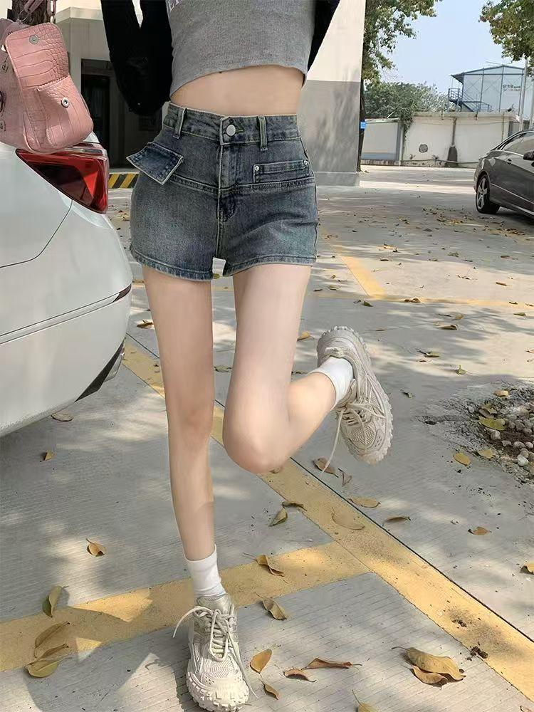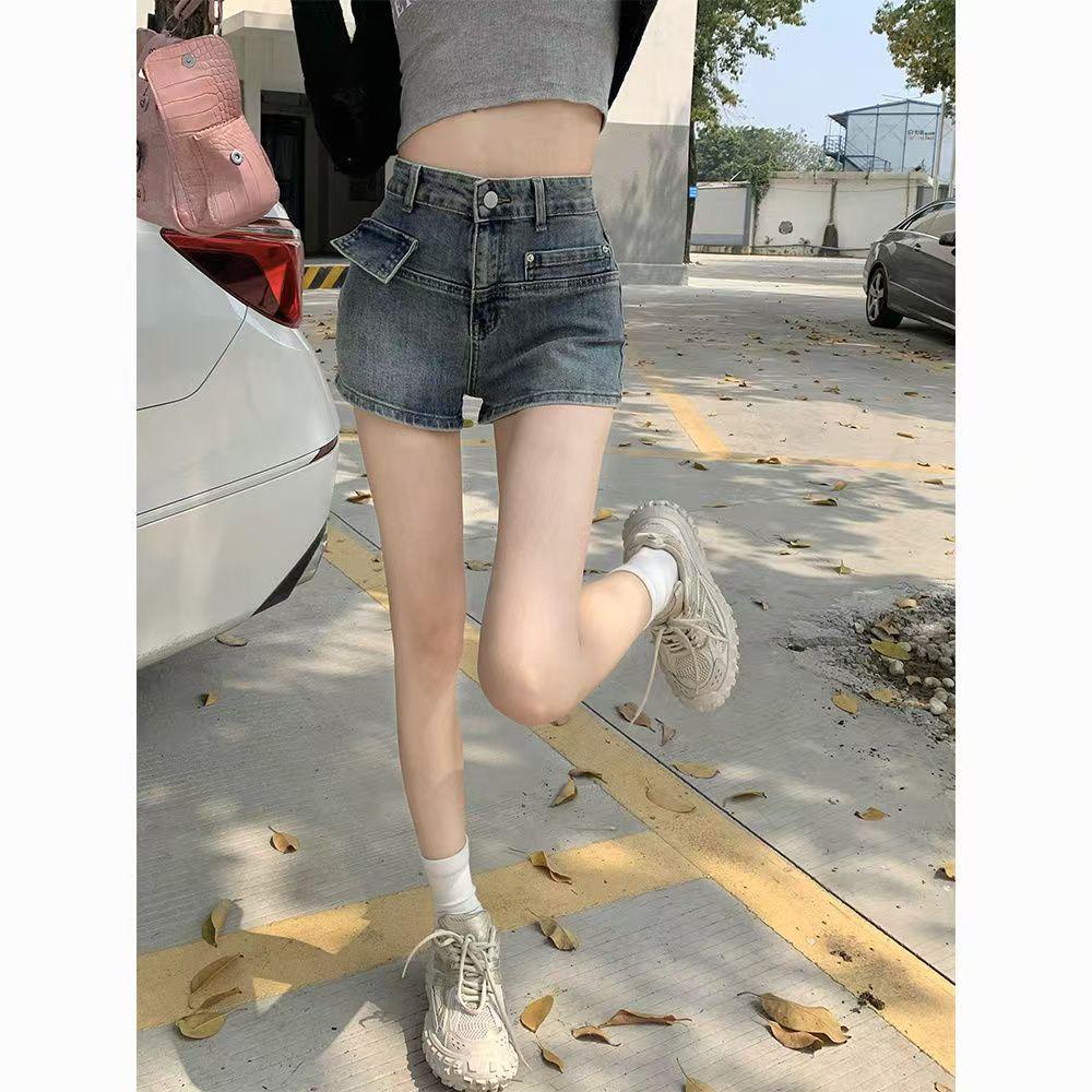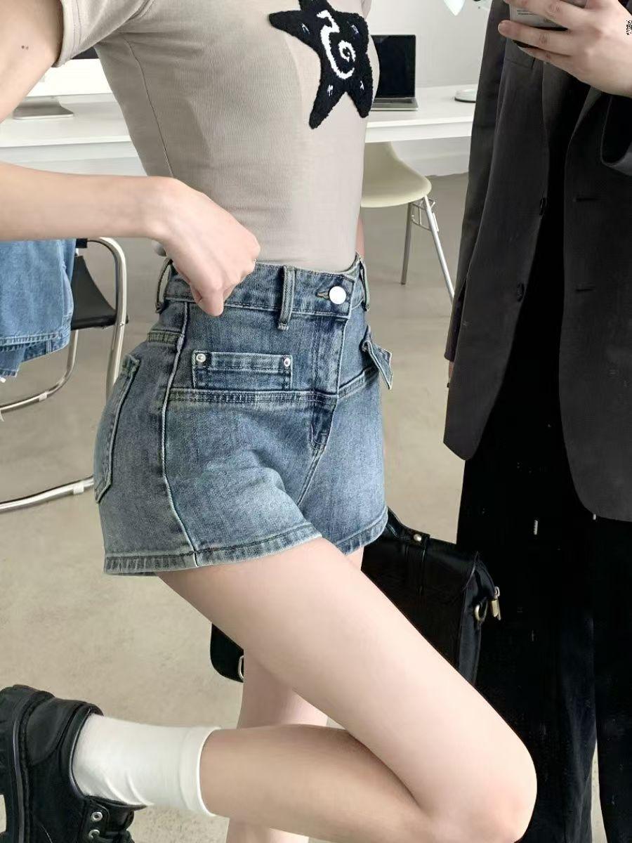 Shorts de Mezclilla de Cintura Alta Diseñados para Adelgazar y Versátiles para Mujer, Pantalones Cortos Retro Hot Girl con Bolsillos, Nuevo Estilo Verano 2025