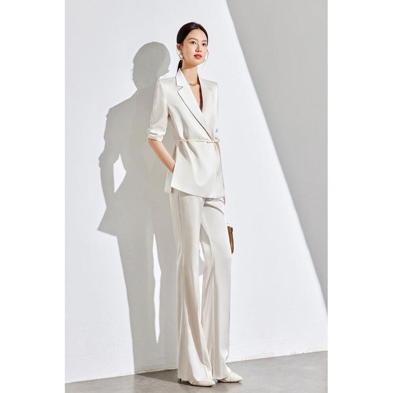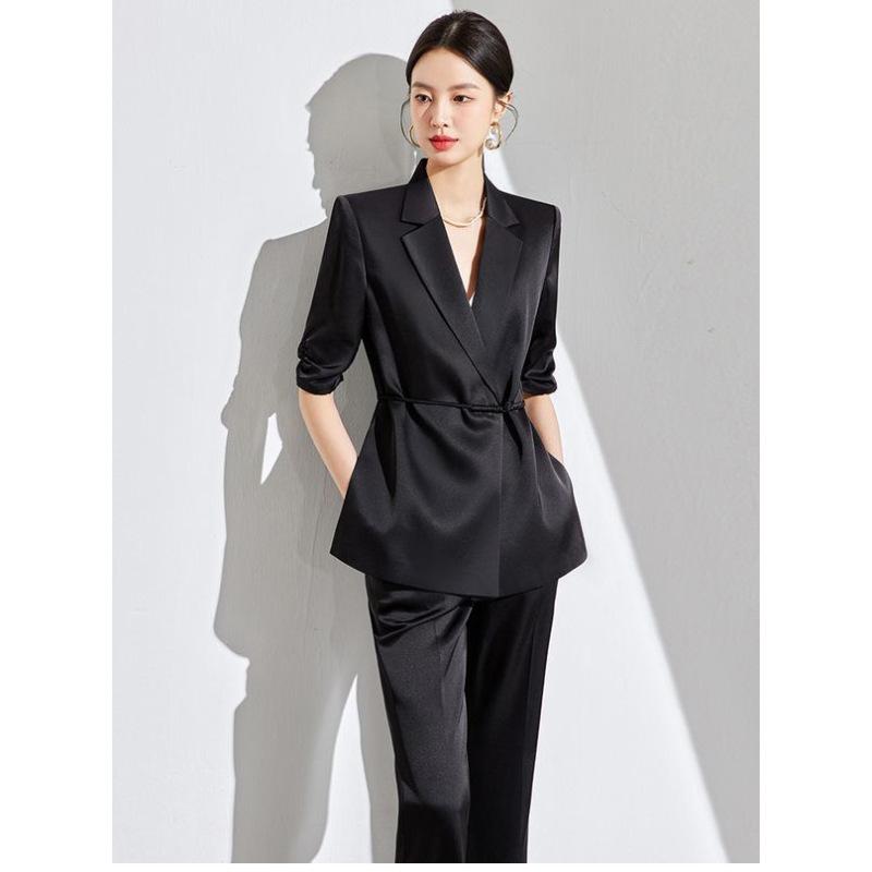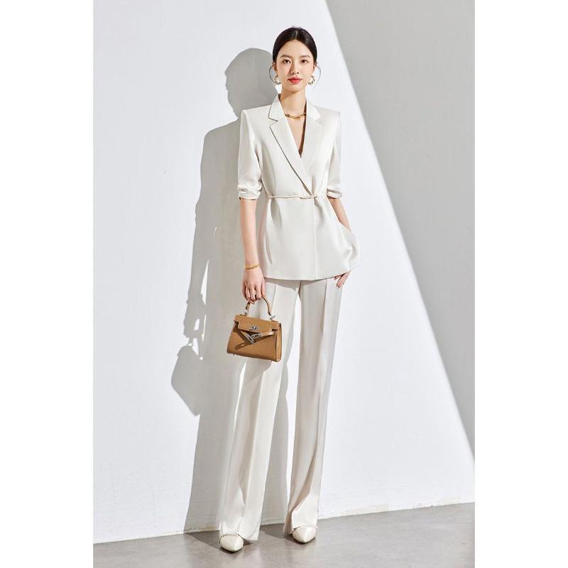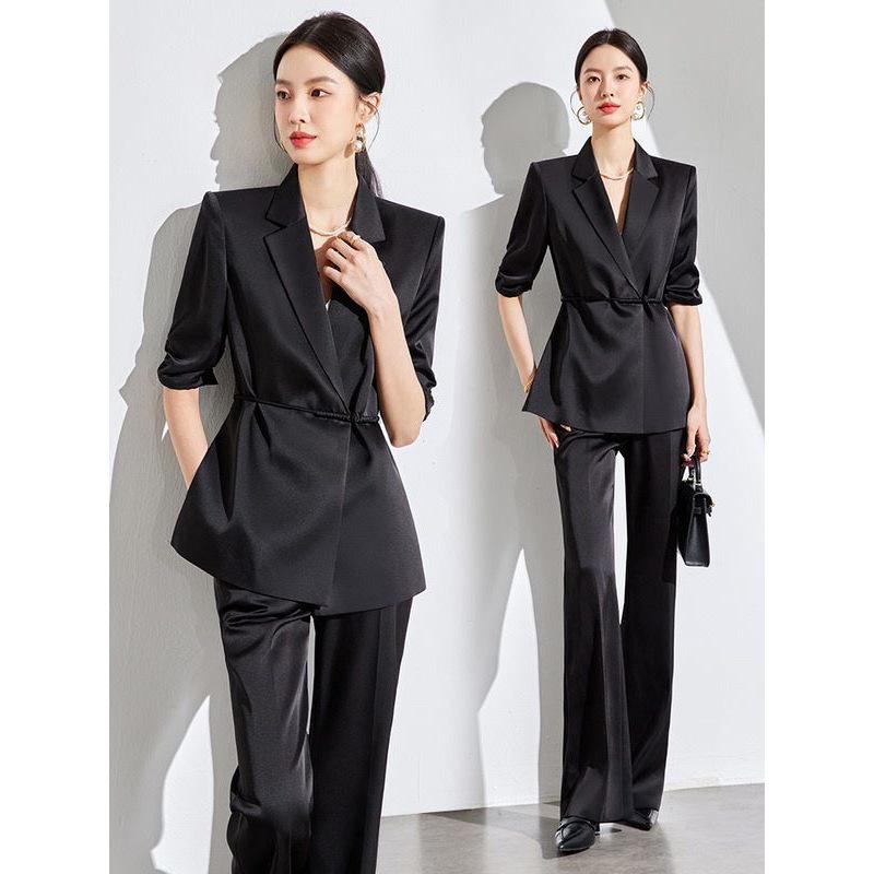 Traje Elegante Profesional para Mujer 2025 Verano Nuevo Moderno a la Moda Pantalón de Pierna Ancha para Mujer Conjunto de Dos Piezas