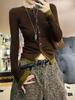 Cárdigan de punto de manga larga de otoño e invierno de corte ajustado estilo occidental de dos piezas falsas en color contrastante Camiseta básica elegante a la moda Top Ins