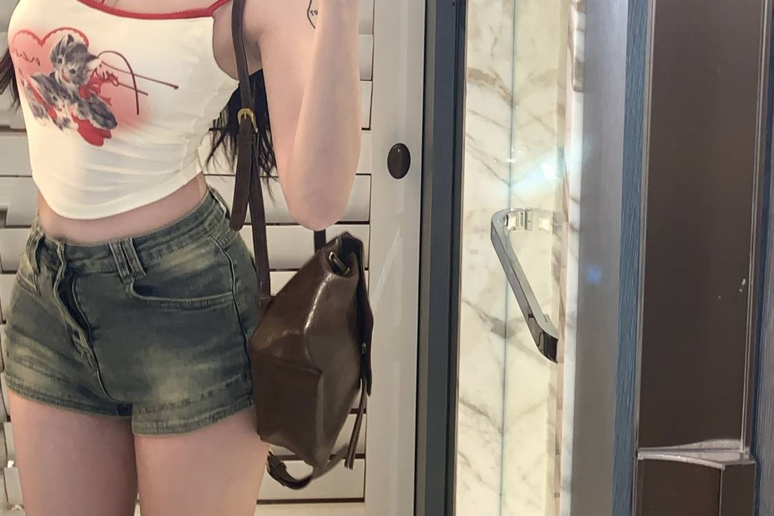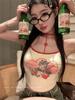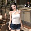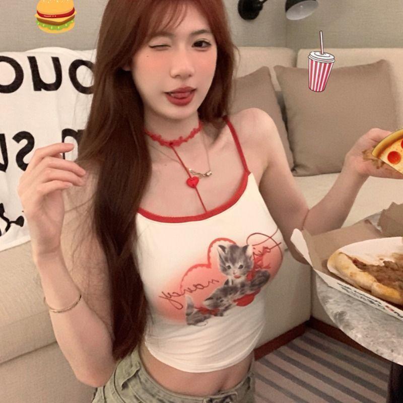 Camisola de Verano con Cuello Halter y Parche de Estampado de Gatito Pure Desire, Ajustada, para Usar como Top Interior, con Almohadilla en el Pecho