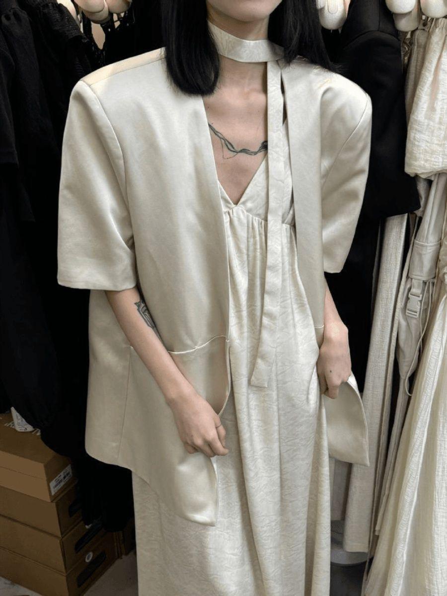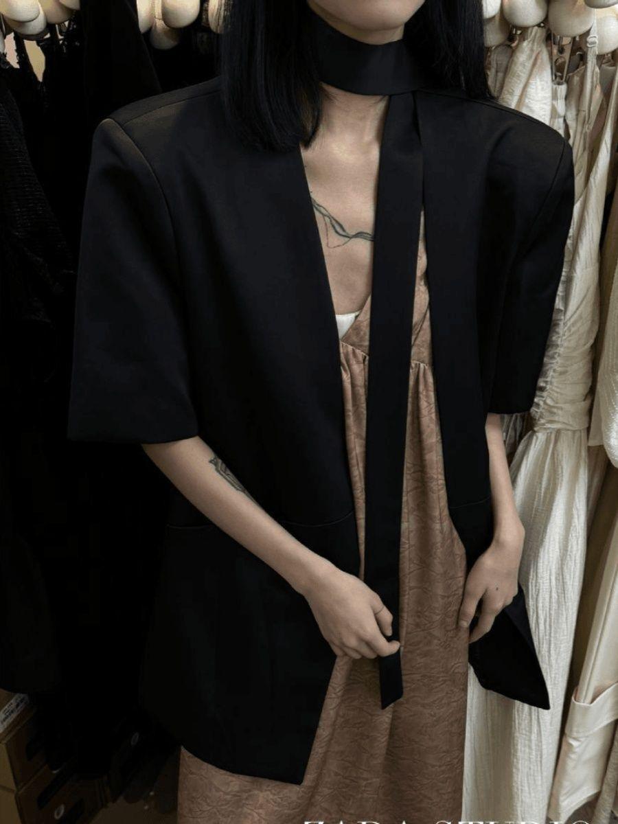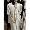 2025 Verano Nuevo Coreano Cuello en V Manga Corta Chaqueta de Traje Sentido de Alta Gama Elegante Suelta Chaqueta de Traje Moda para Mujer