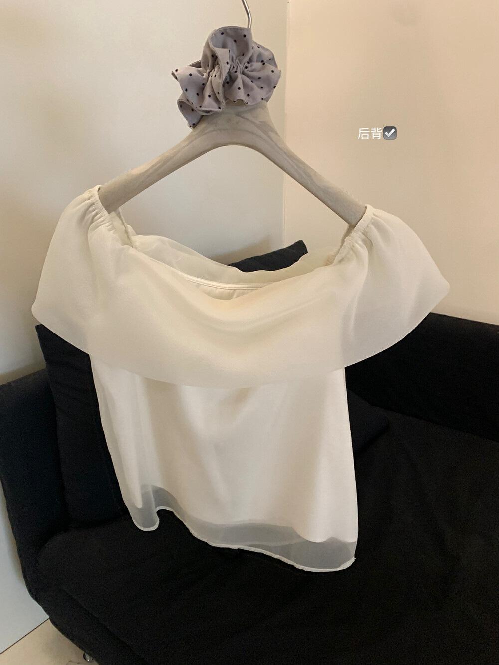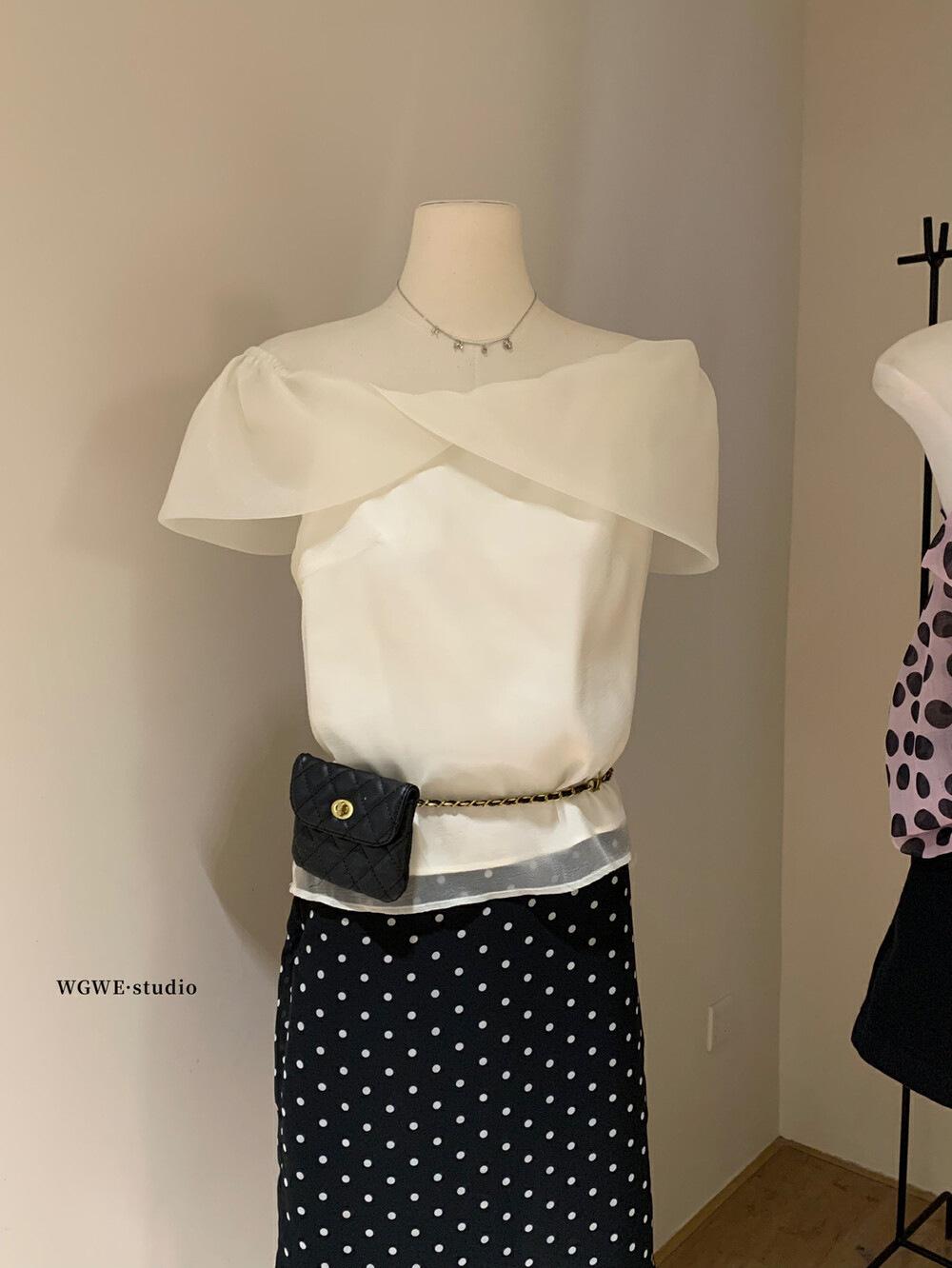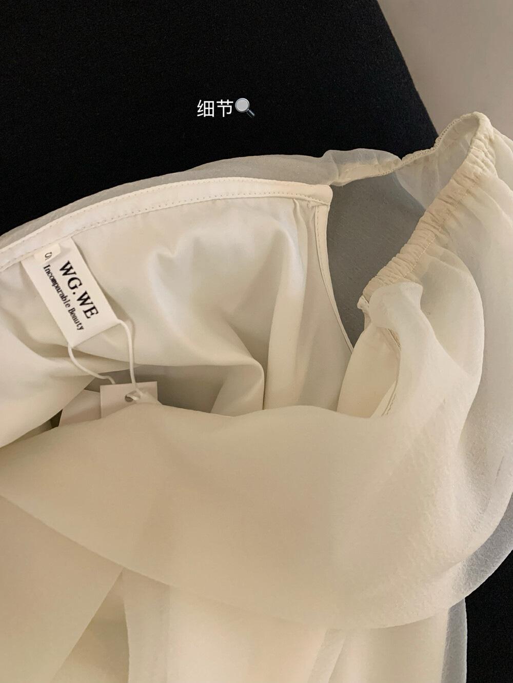Wgwe Verano Francés Suave Elegante Camisa de Gasa Versátil Look Adelgazante Top de Malla de Manga Corta W6003
