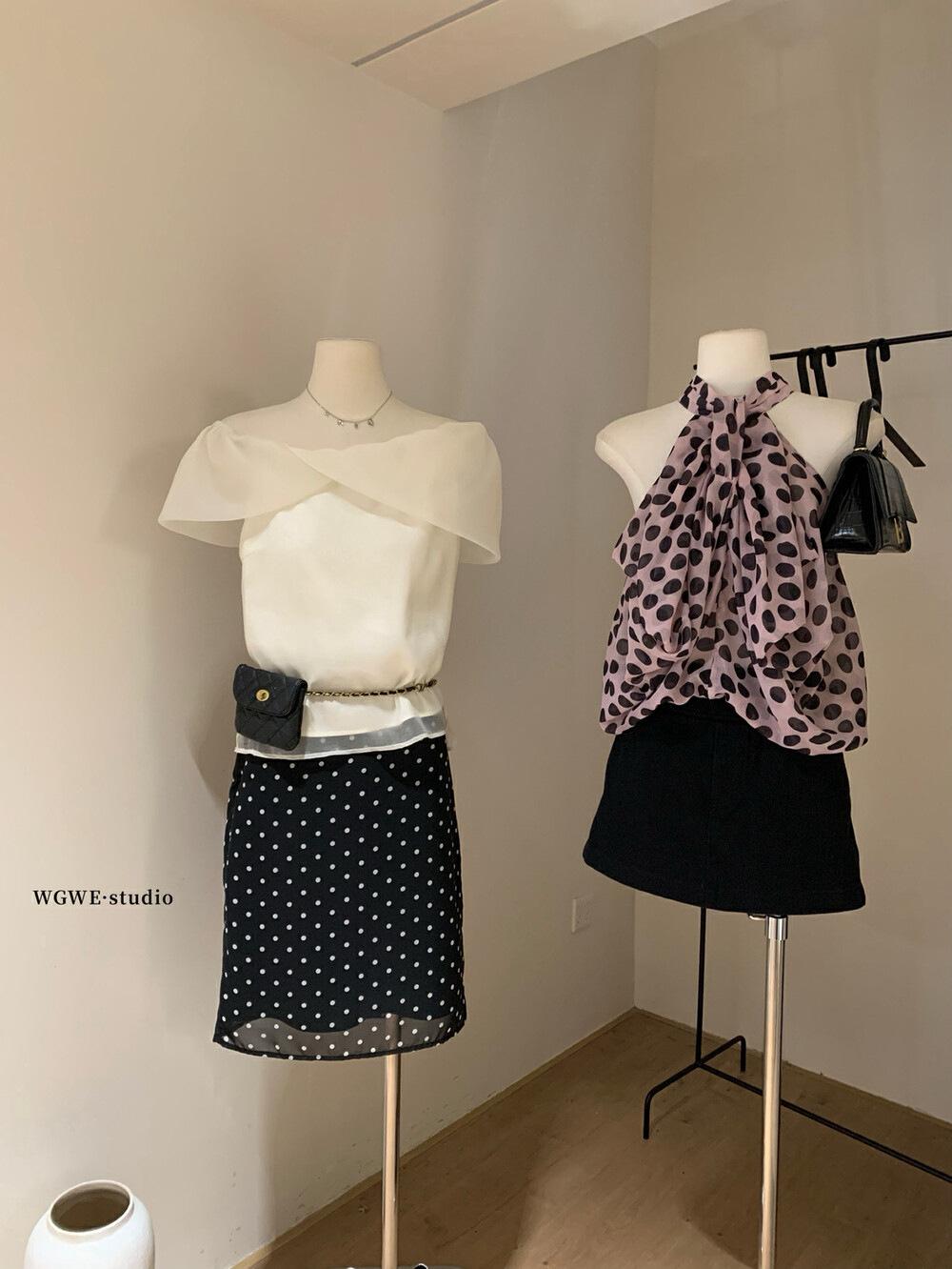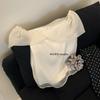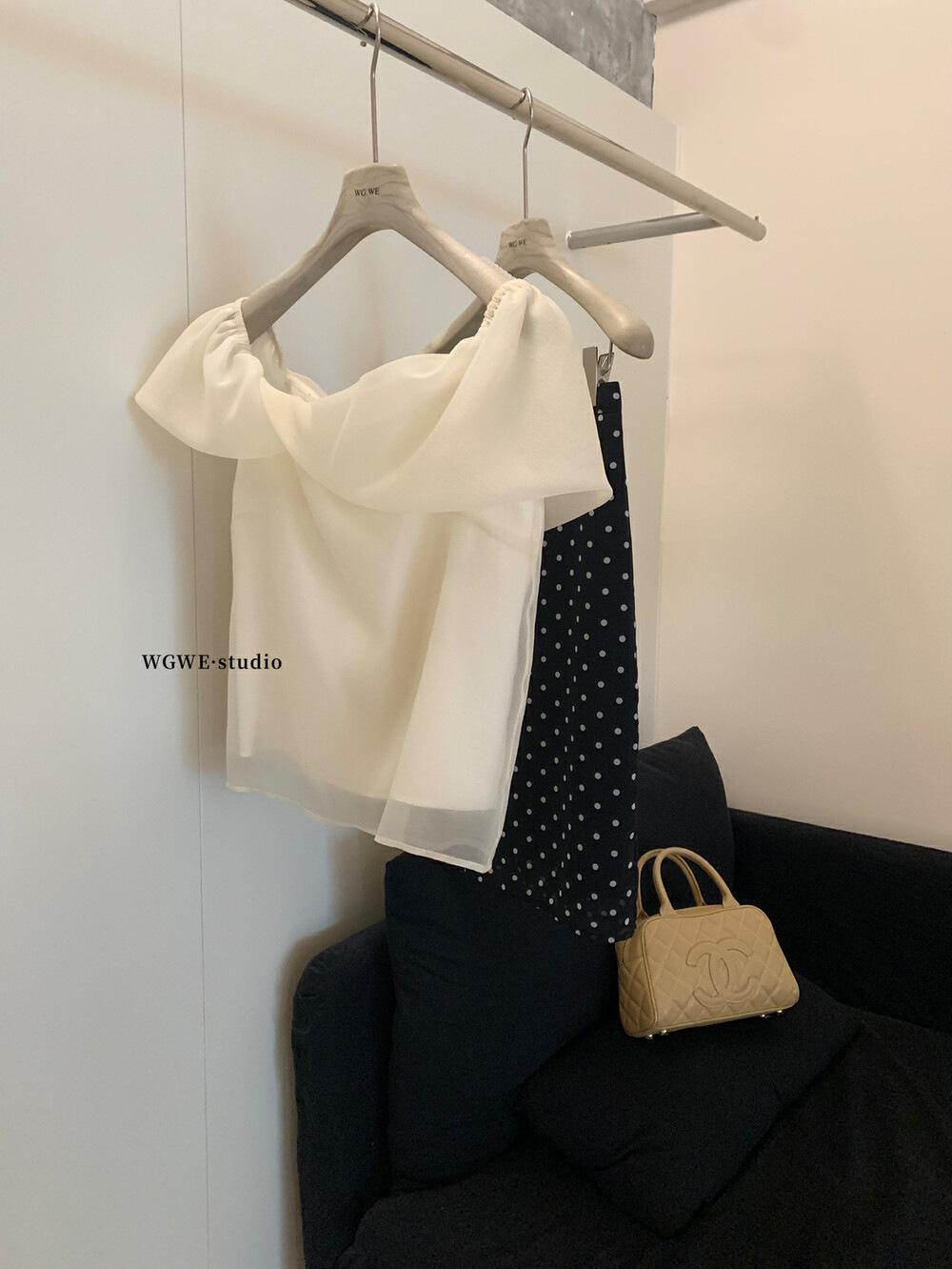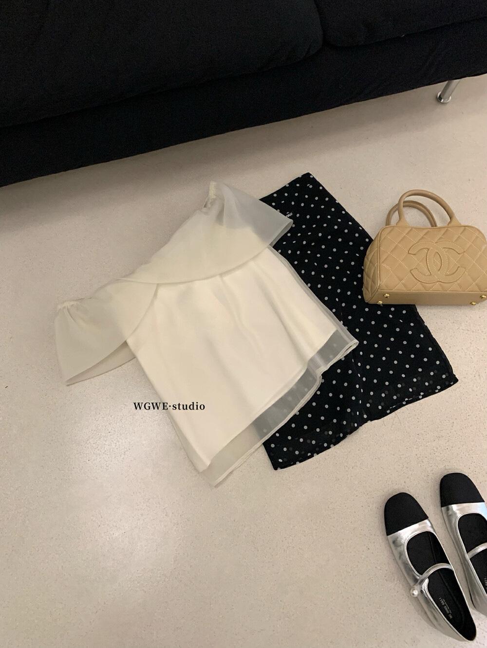 Wgwe Verano Francés Suave Elegante Camisa de Gasa Versátil Look Adelgazante Top de Malla de Manga Corta W6003