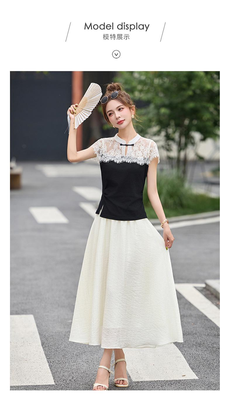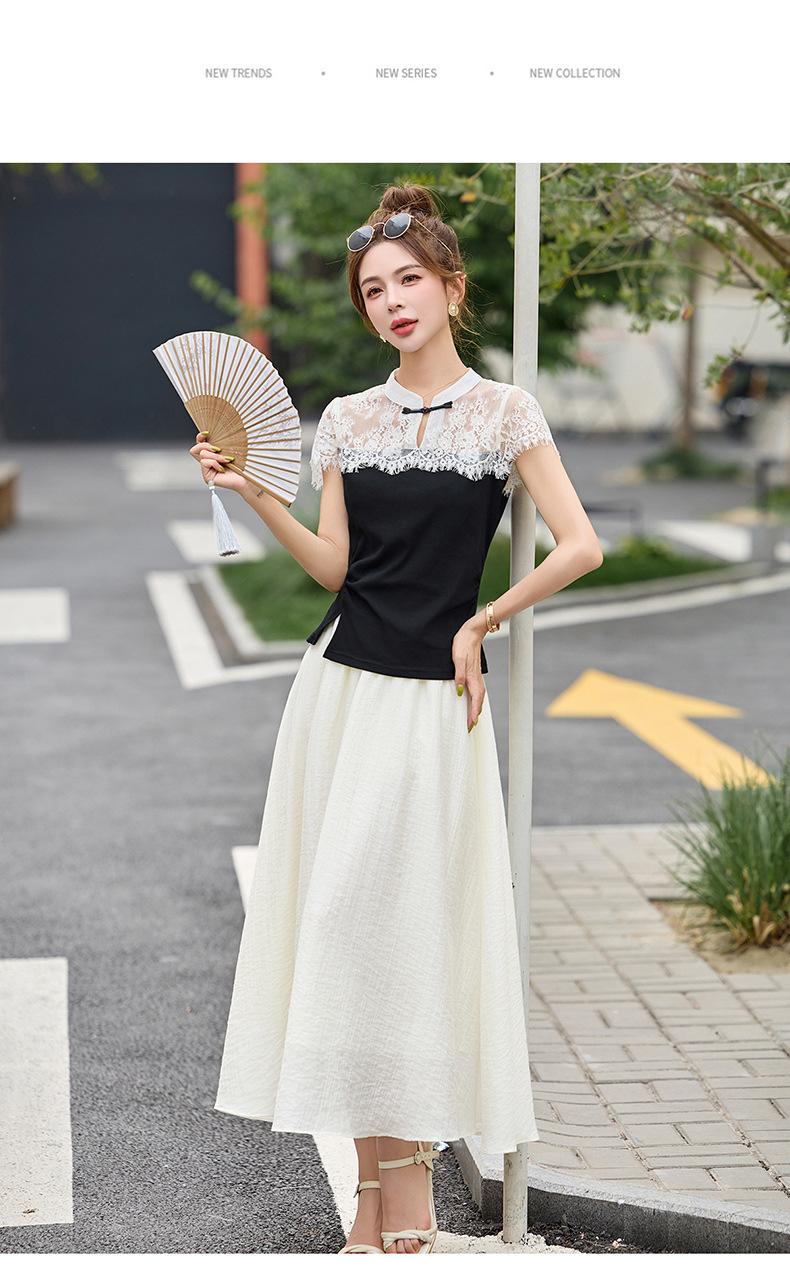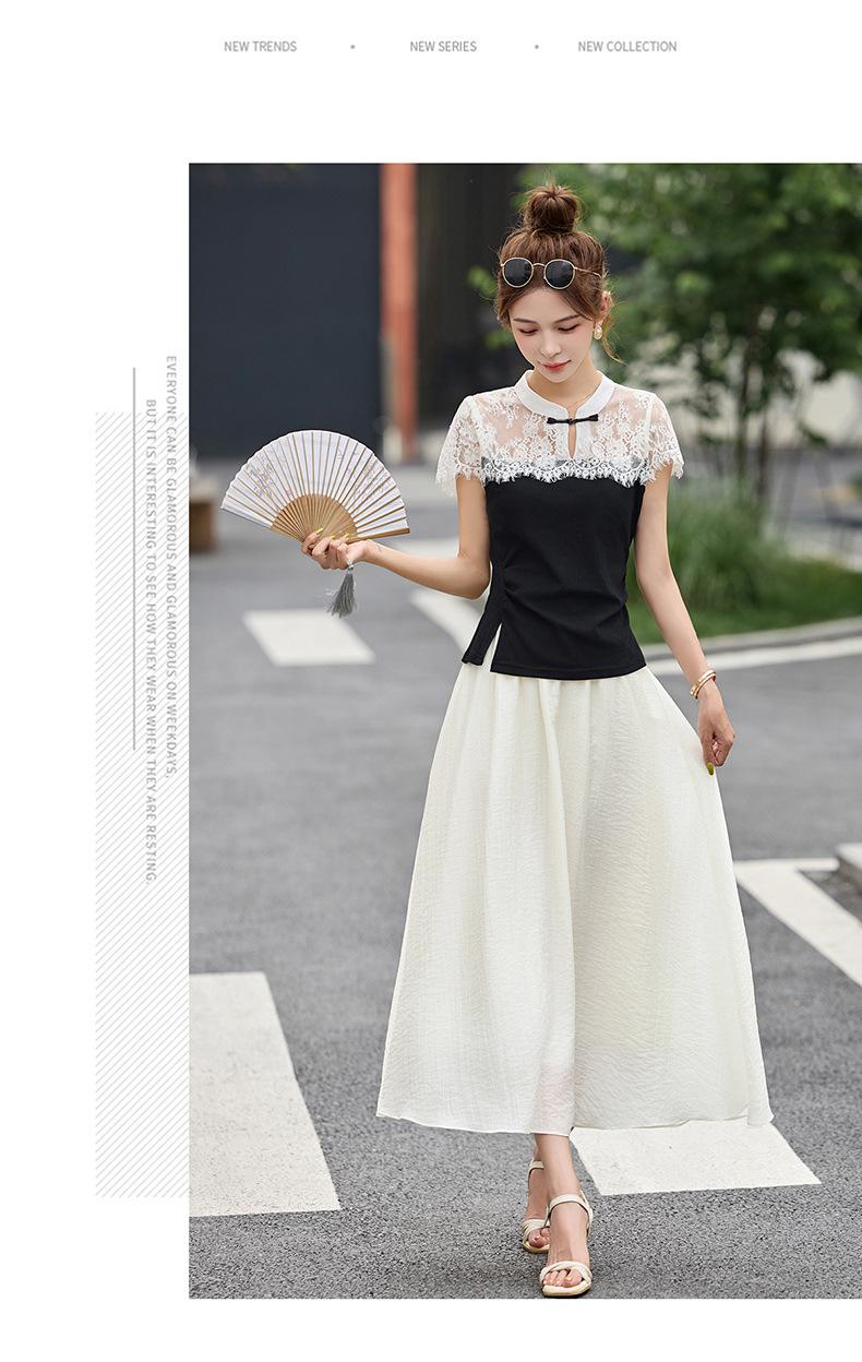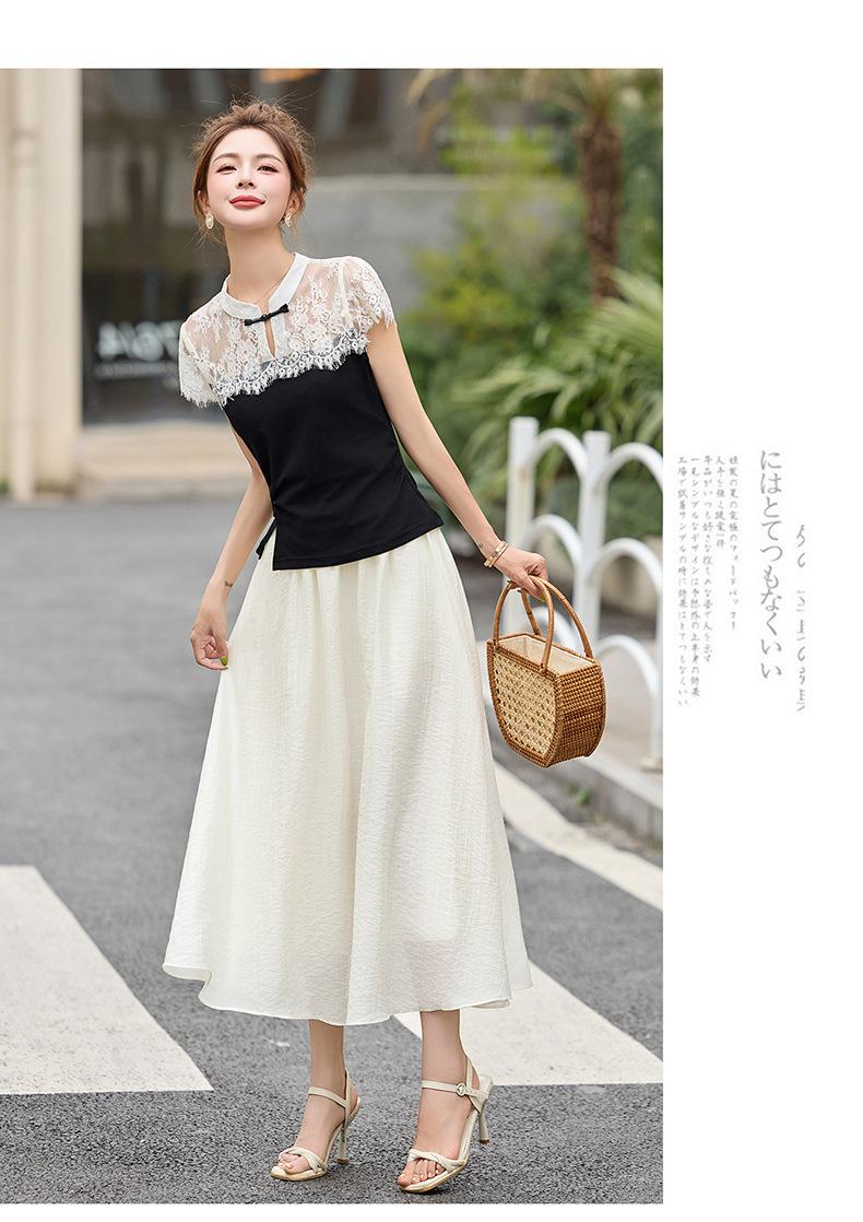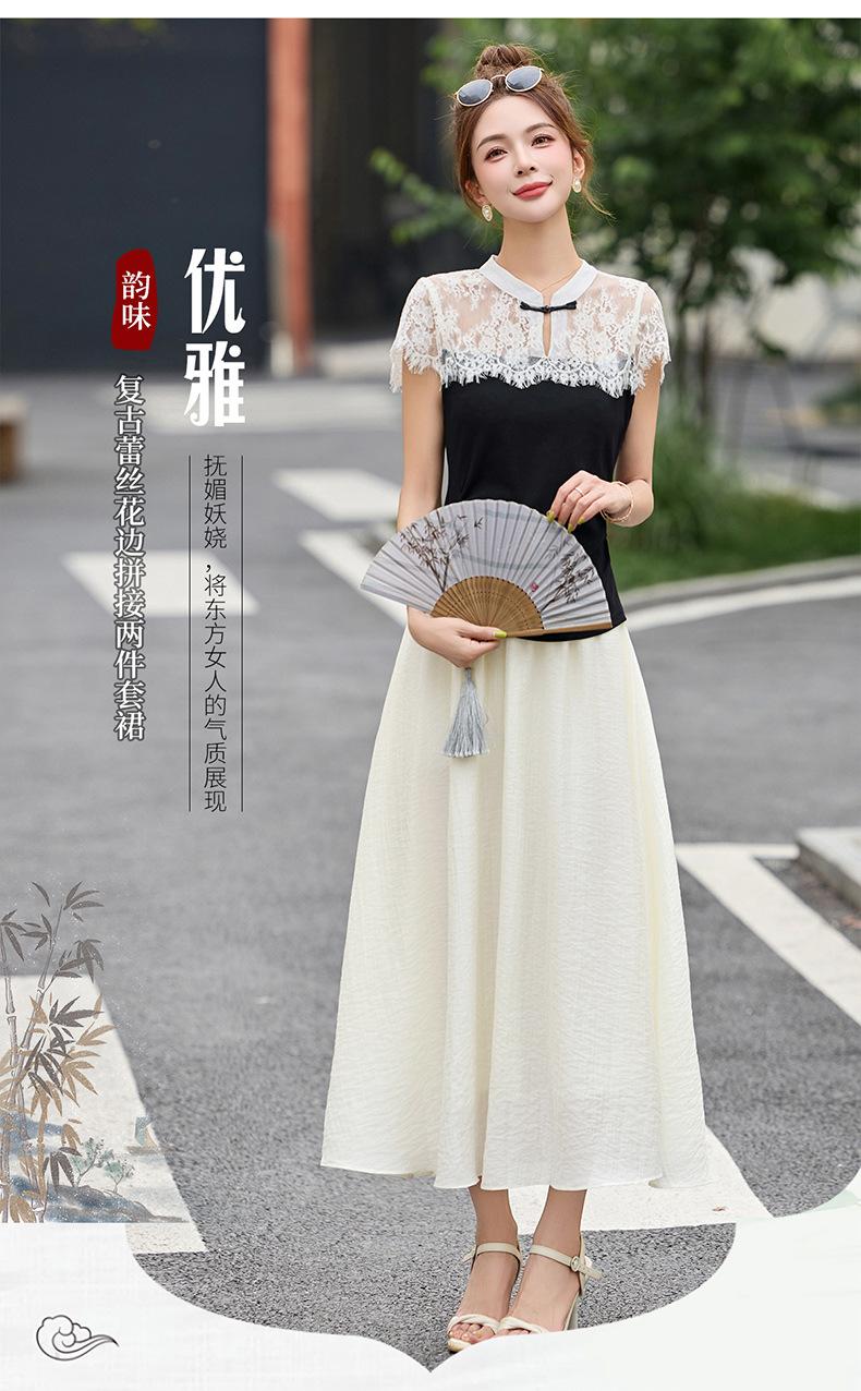2025 Nueva Moda de Verano Casual Versátil Reductor de Edad Encaje Cómodo Nuevo Estilo Chino Falda de Dos Piezas Slim y Elegante