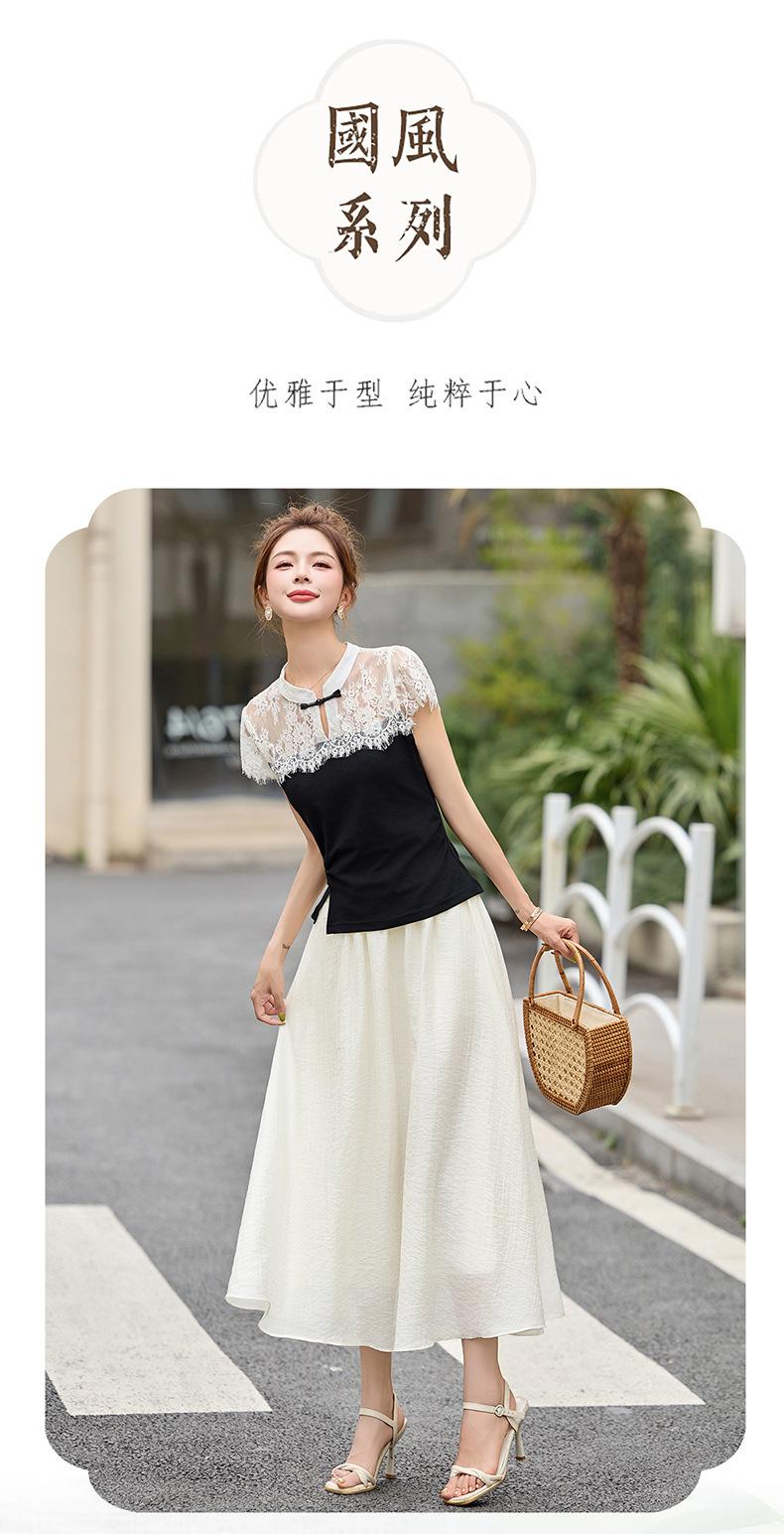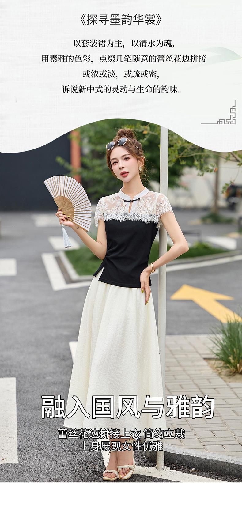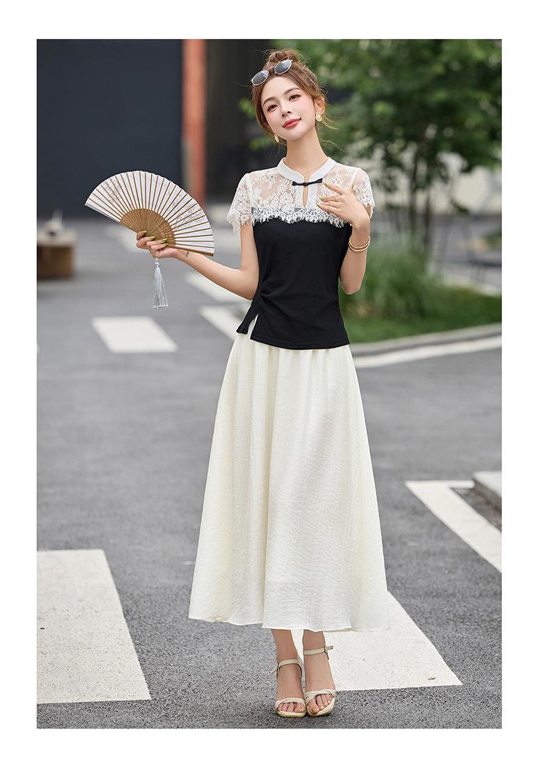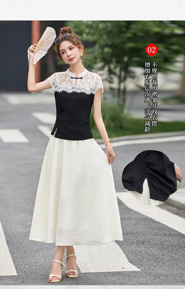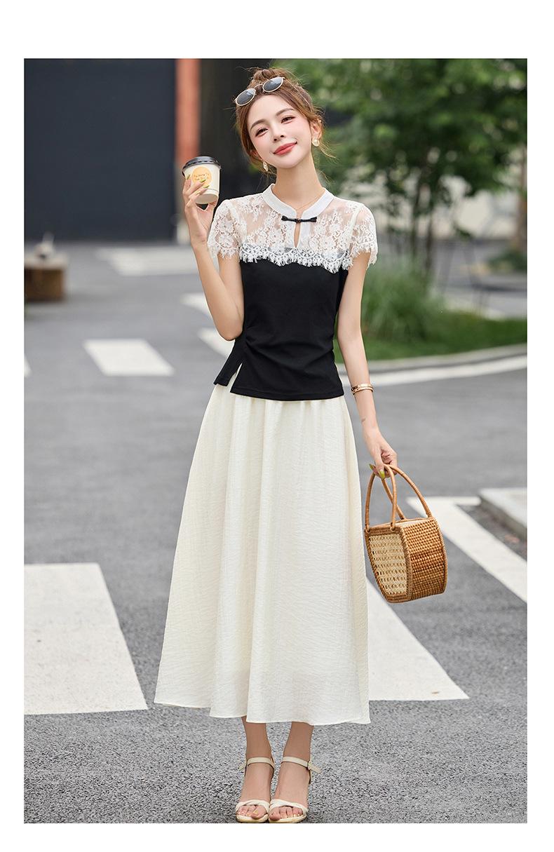 2025 Nueva Moda de Verano Casual Versátil Reductor de Edad Encaje Cómodo Nuevo Estilo Chino Falda de Dos Piezas Slim y Elegante