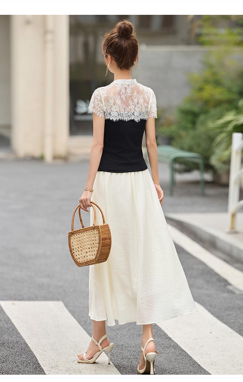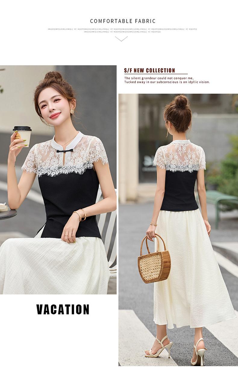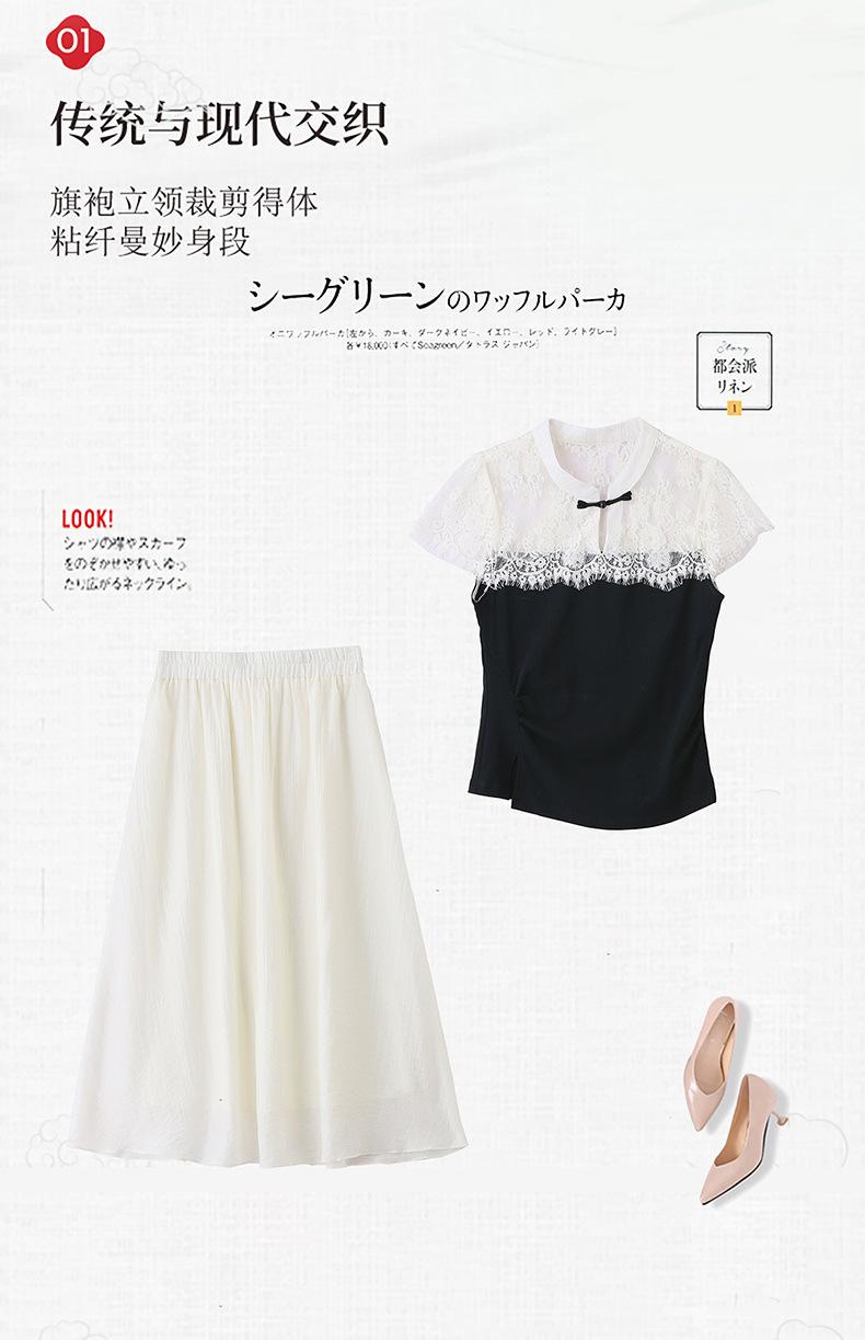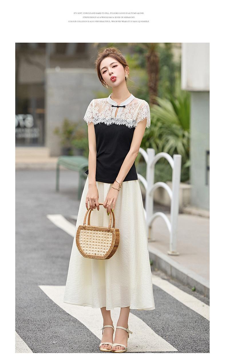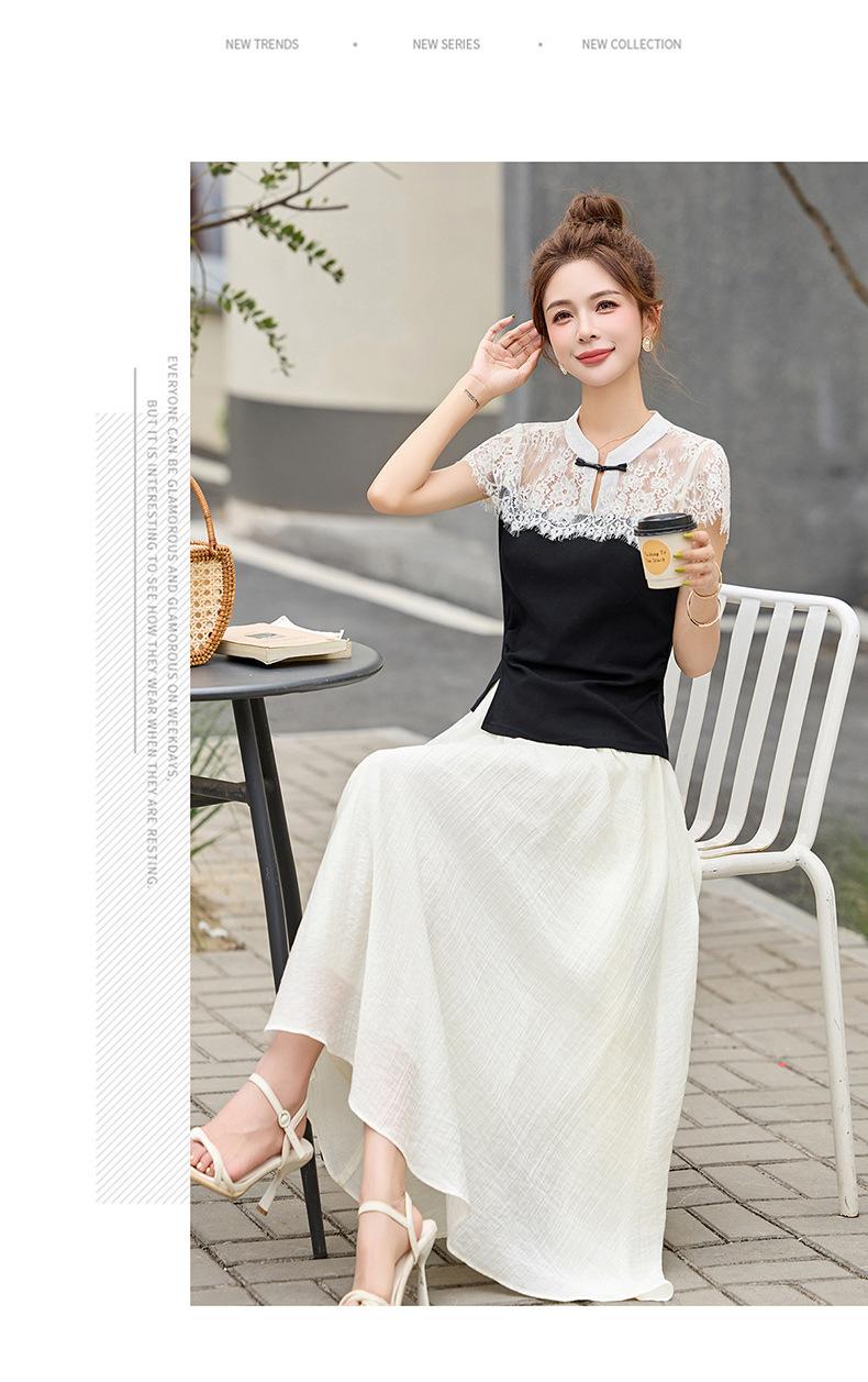 2025 Nueva Moda de Verano Casual Versátil Reductor de Edad Encaje Cómodo Nuevo Estilo Chino Falda de Dos Piezas Slim y Elegante
