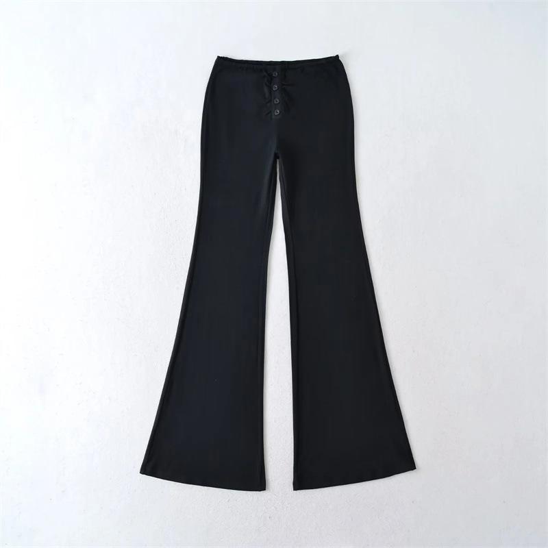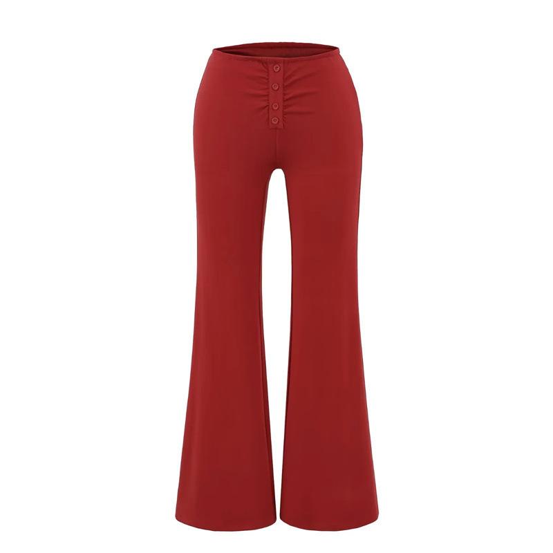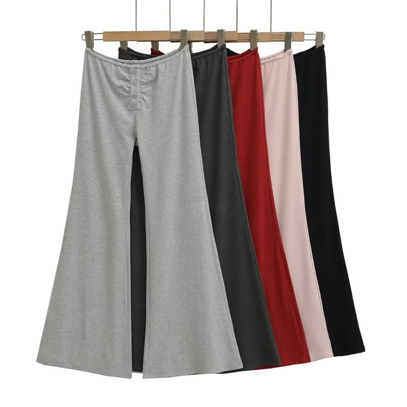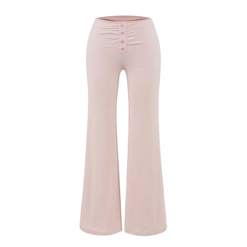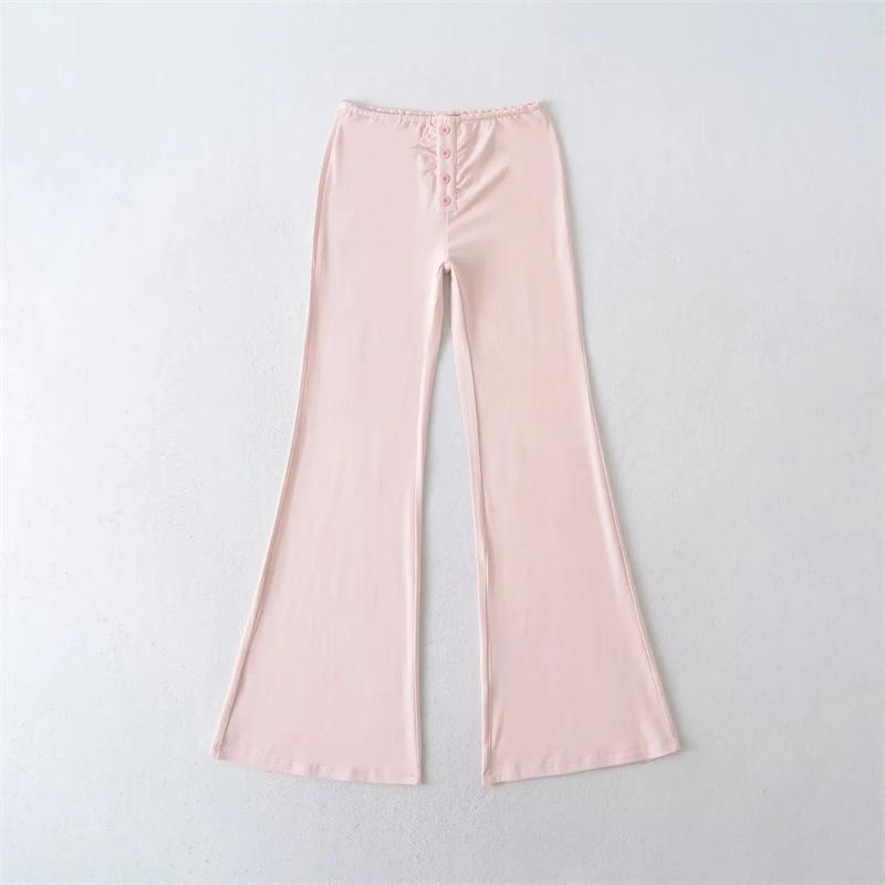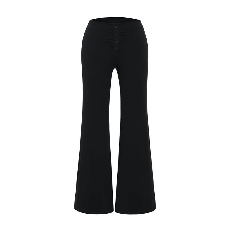 Pantalones acampanados de tiro bajo de moda con cuatro botones 2025 Verano Nuevo Versátil Ajustado Casual Pantalones Largos para Mujer
