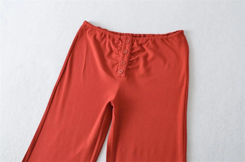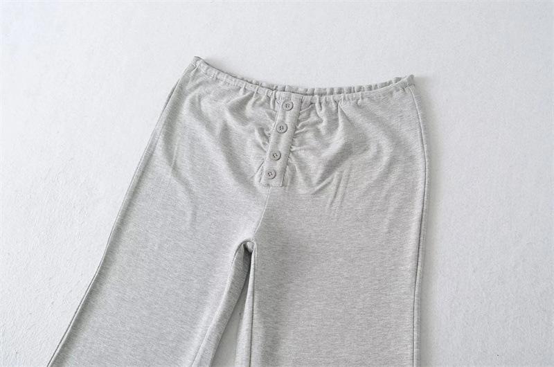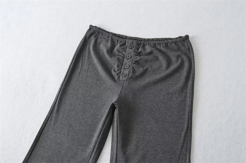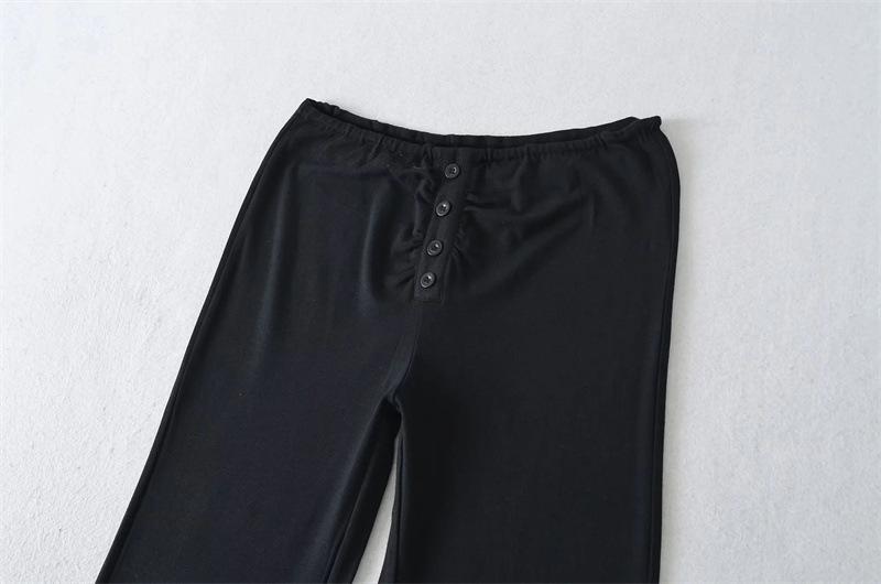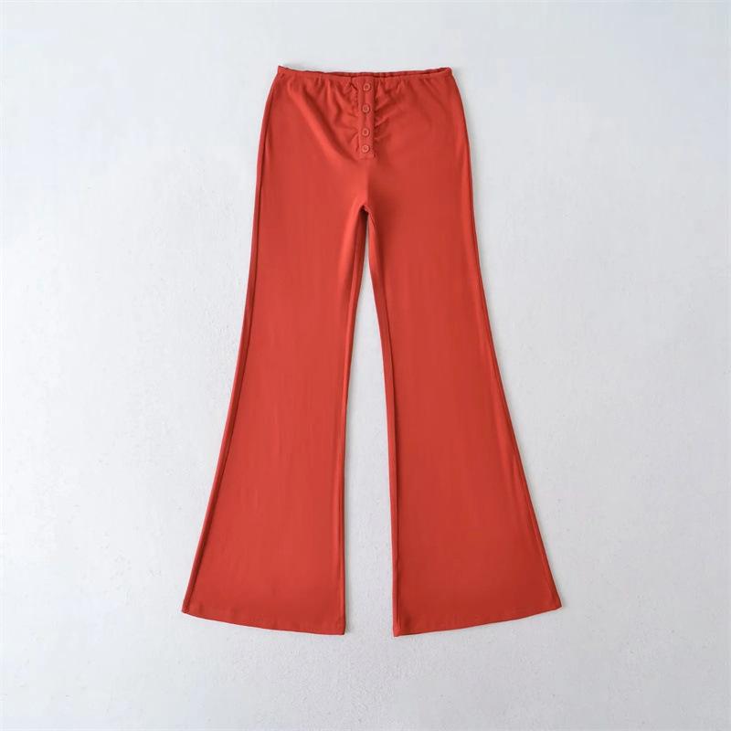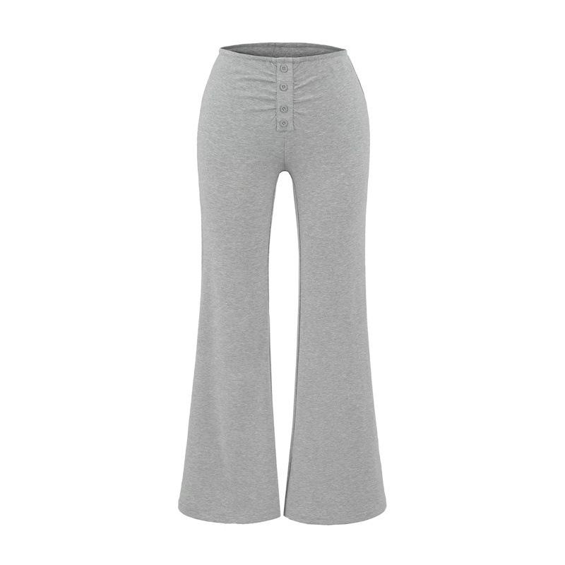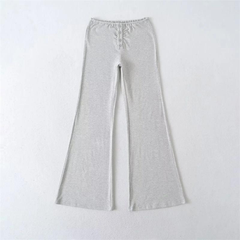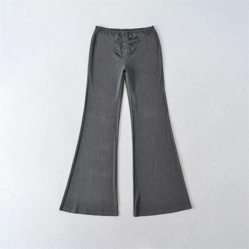 Pantalones acampanados de tiro bajo de moda con cuatro botones 2025 Verano Nuevo Versátil Ajustado Casual Pantalones Largos para Mujer