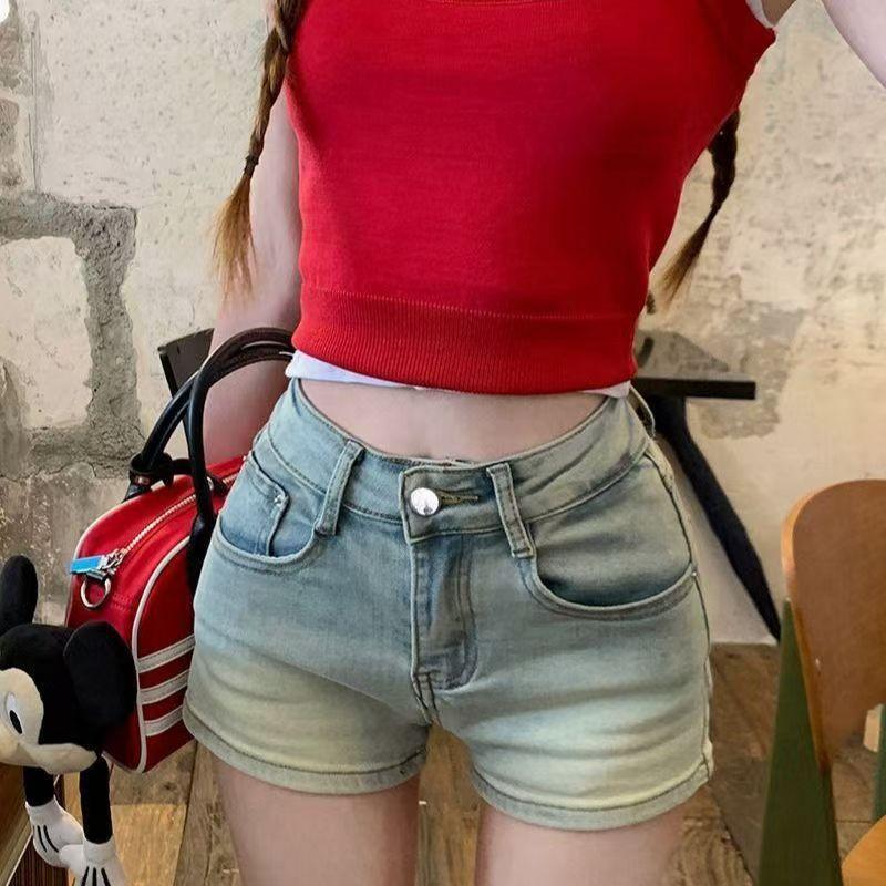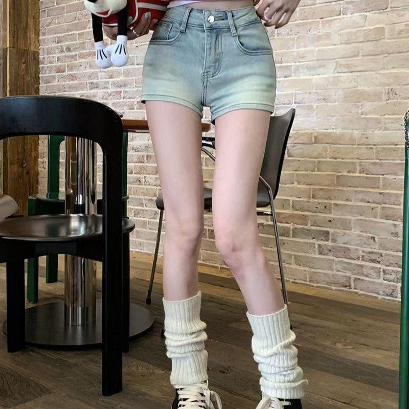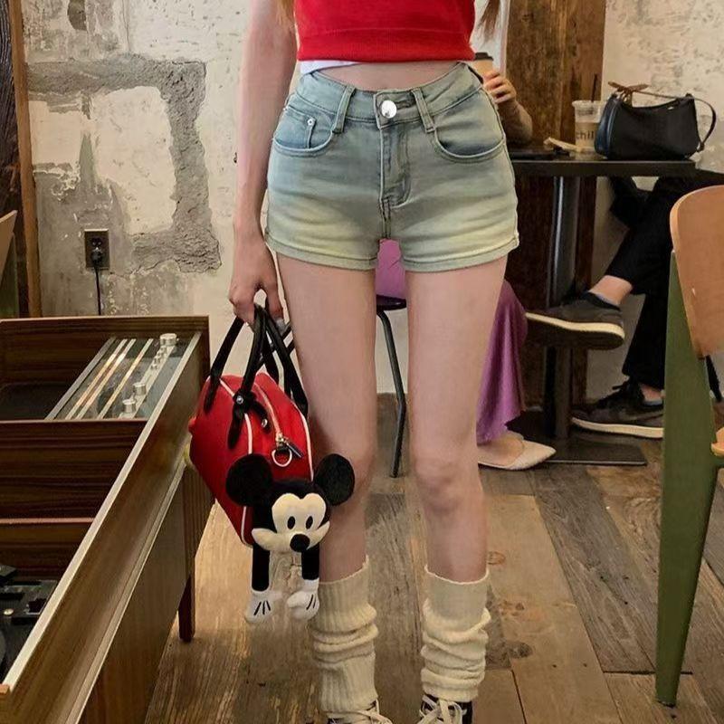 Verano Retro Cintura Alta 2025 Nuevo Shorts de Mezclilla Azul Claro Pantalones Rectos Casuales para Mujer Sexy Ajustados Hot Pants