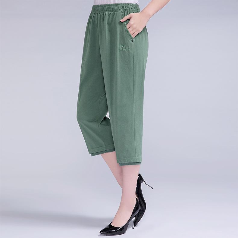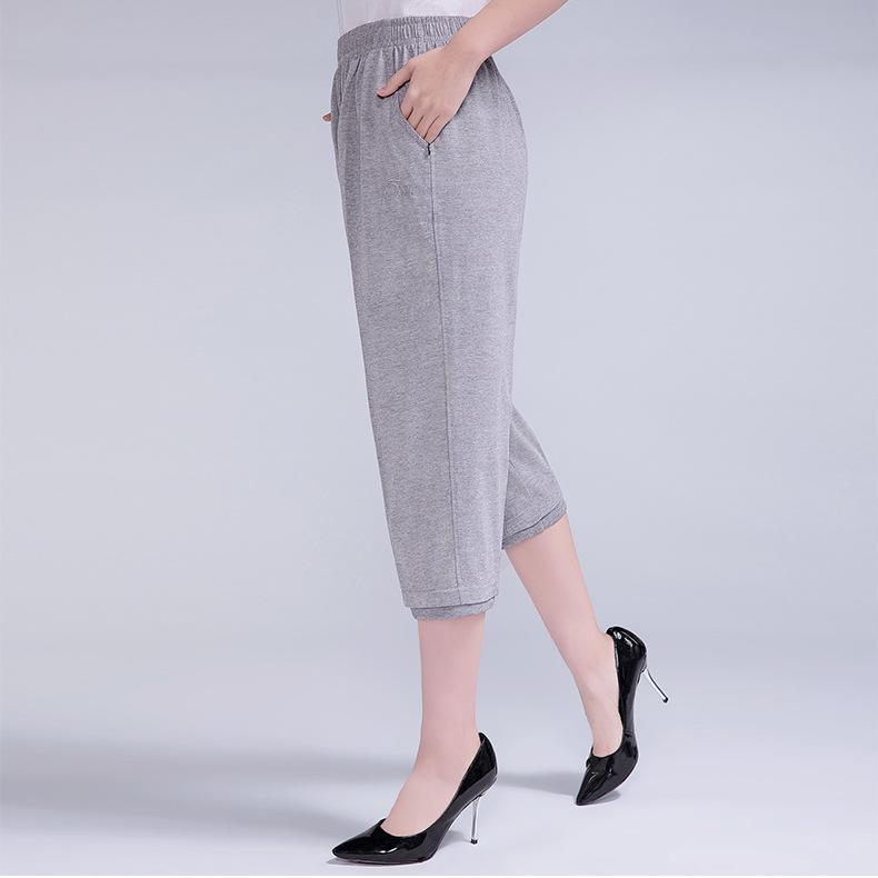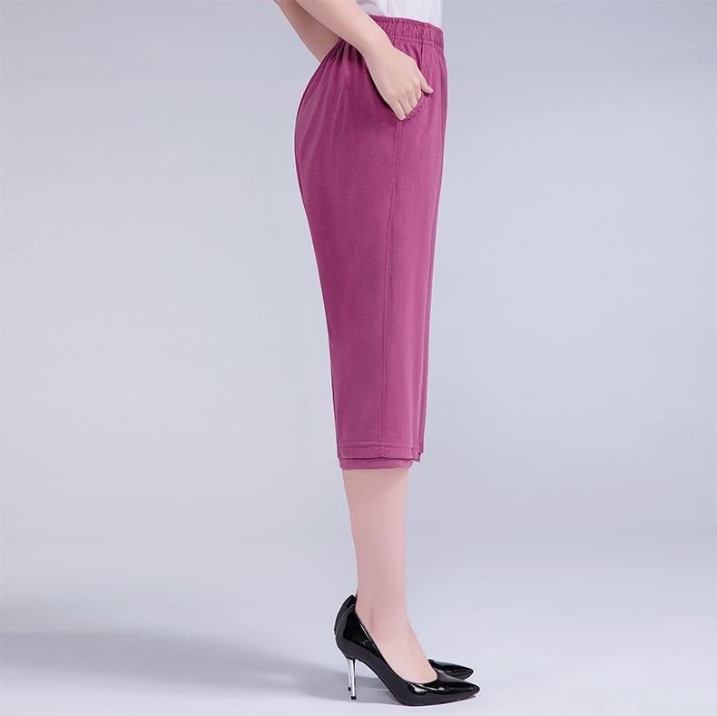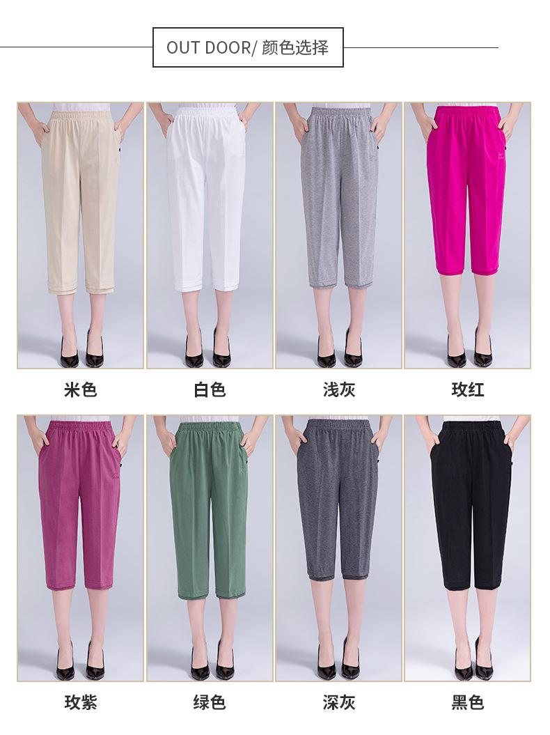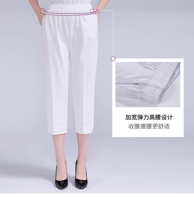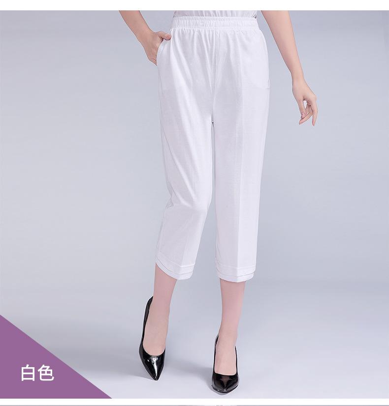 Pantalones Capri Casuales de Verano Delgados de Talla Grande para Mujer Pantalones de Mujer Cintura Elástica Verano para Mujer Color Sólido Sencillos de Algodón Transpirables