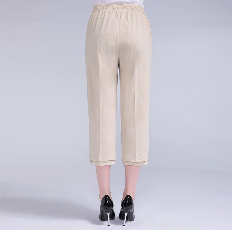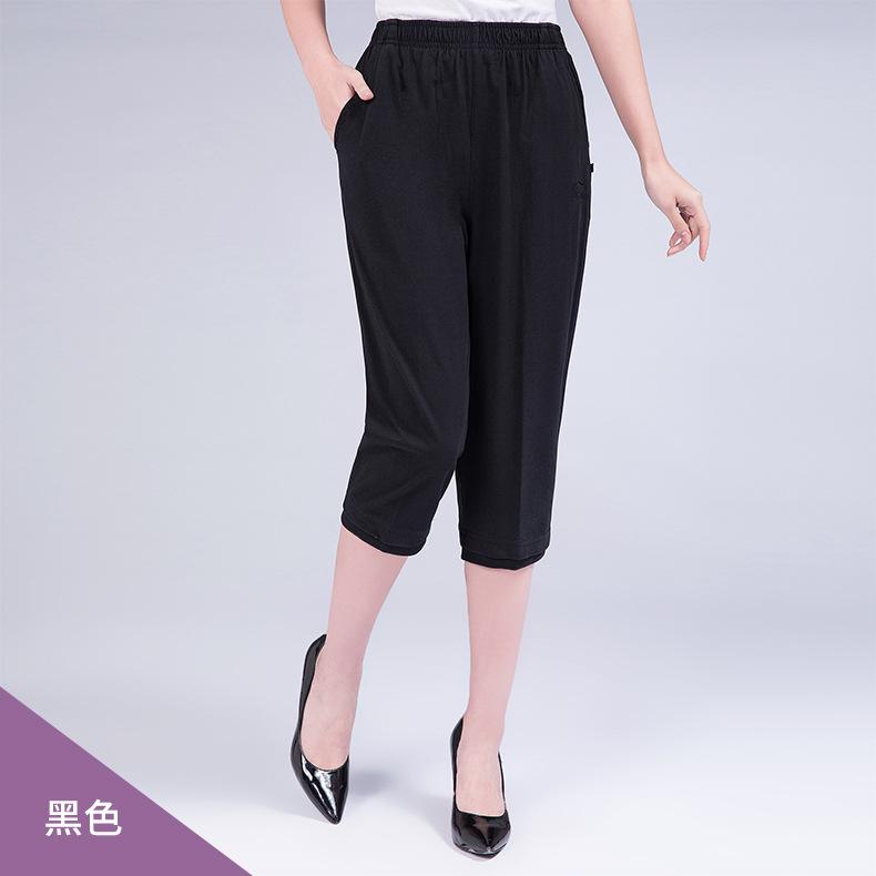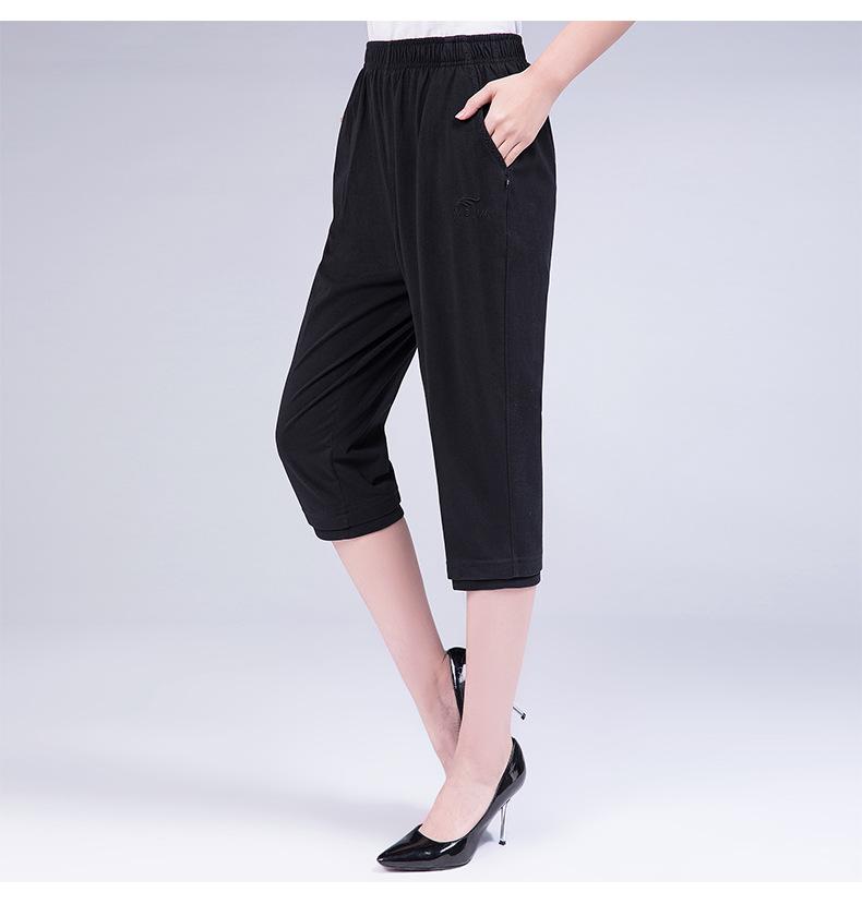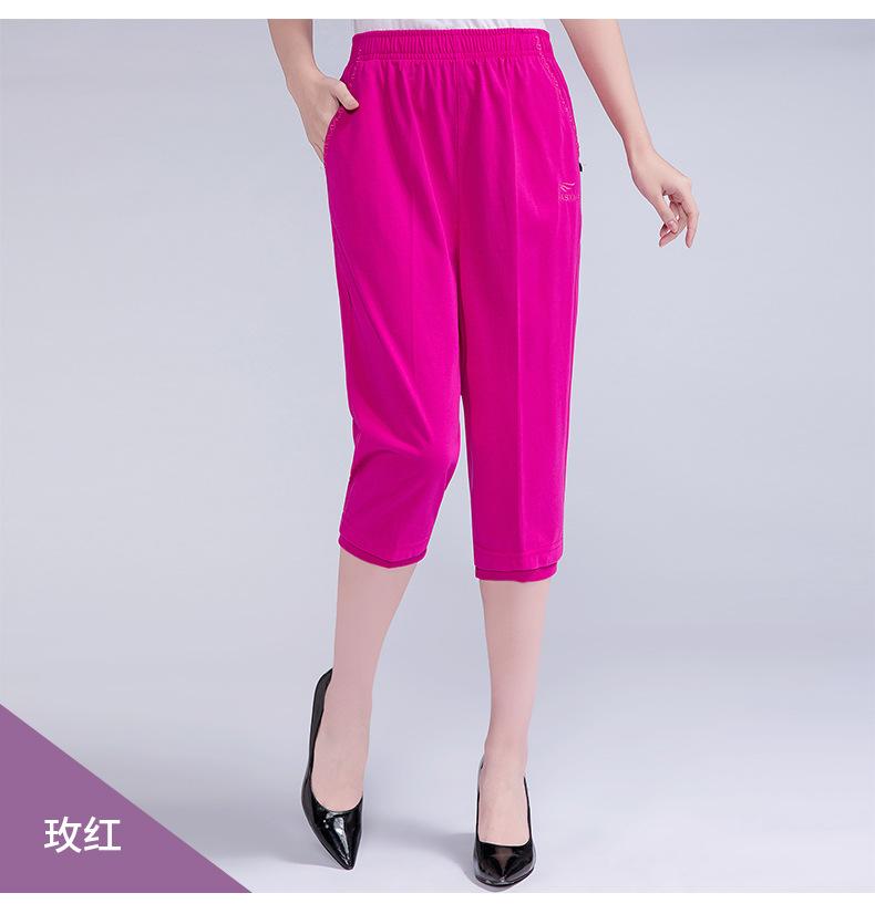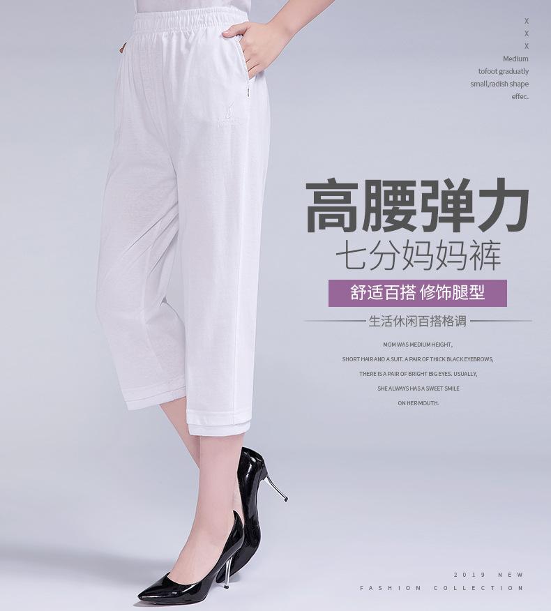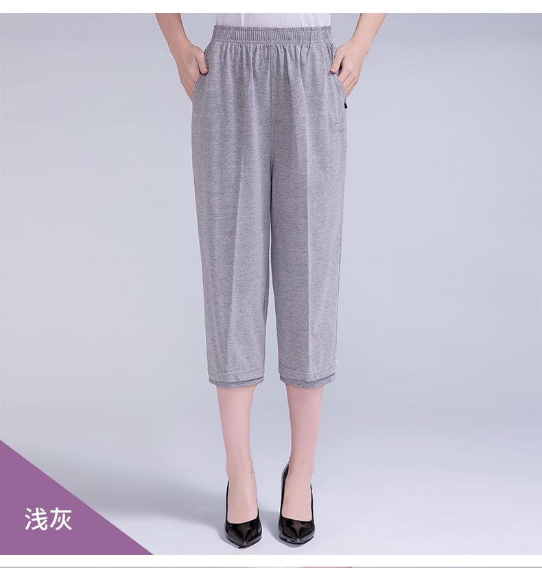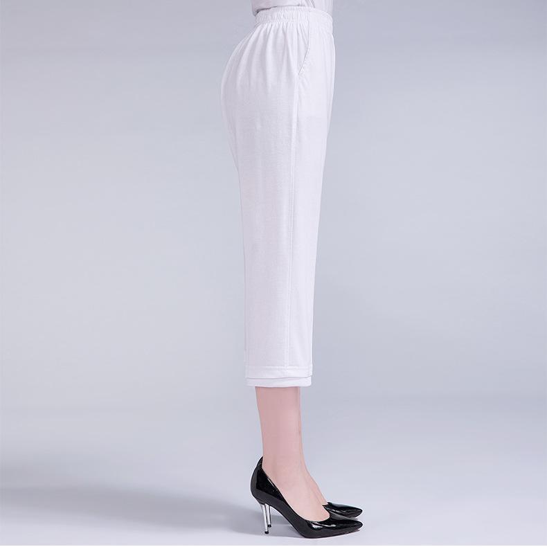 Pantalones Capri Casuales de Verano Delgados de Talla Grande para Mujer Pantalones de Mujer Cintura Elástica Verano para Mujer Color Sólido Sencillos de Algodón Transpirables