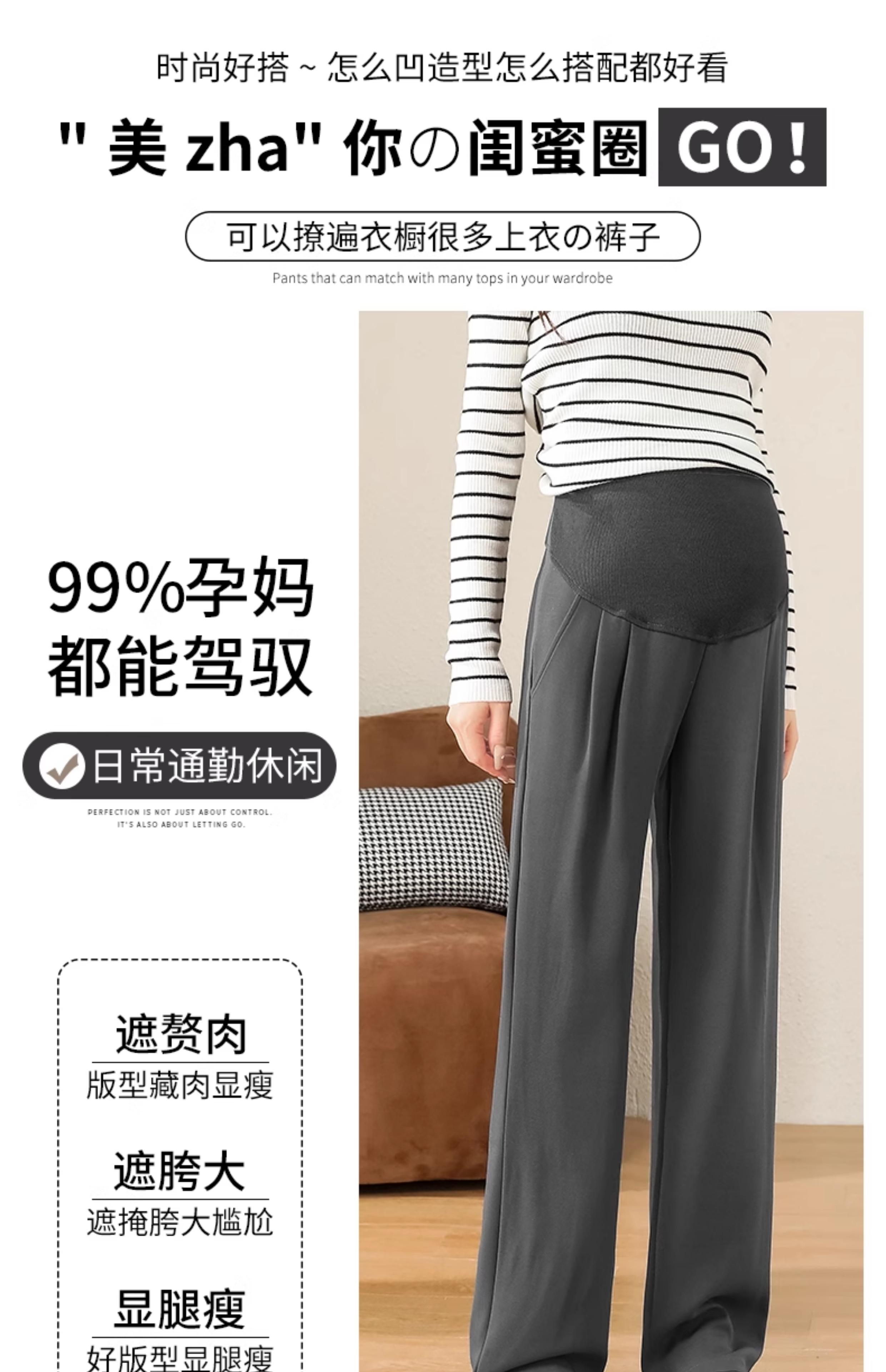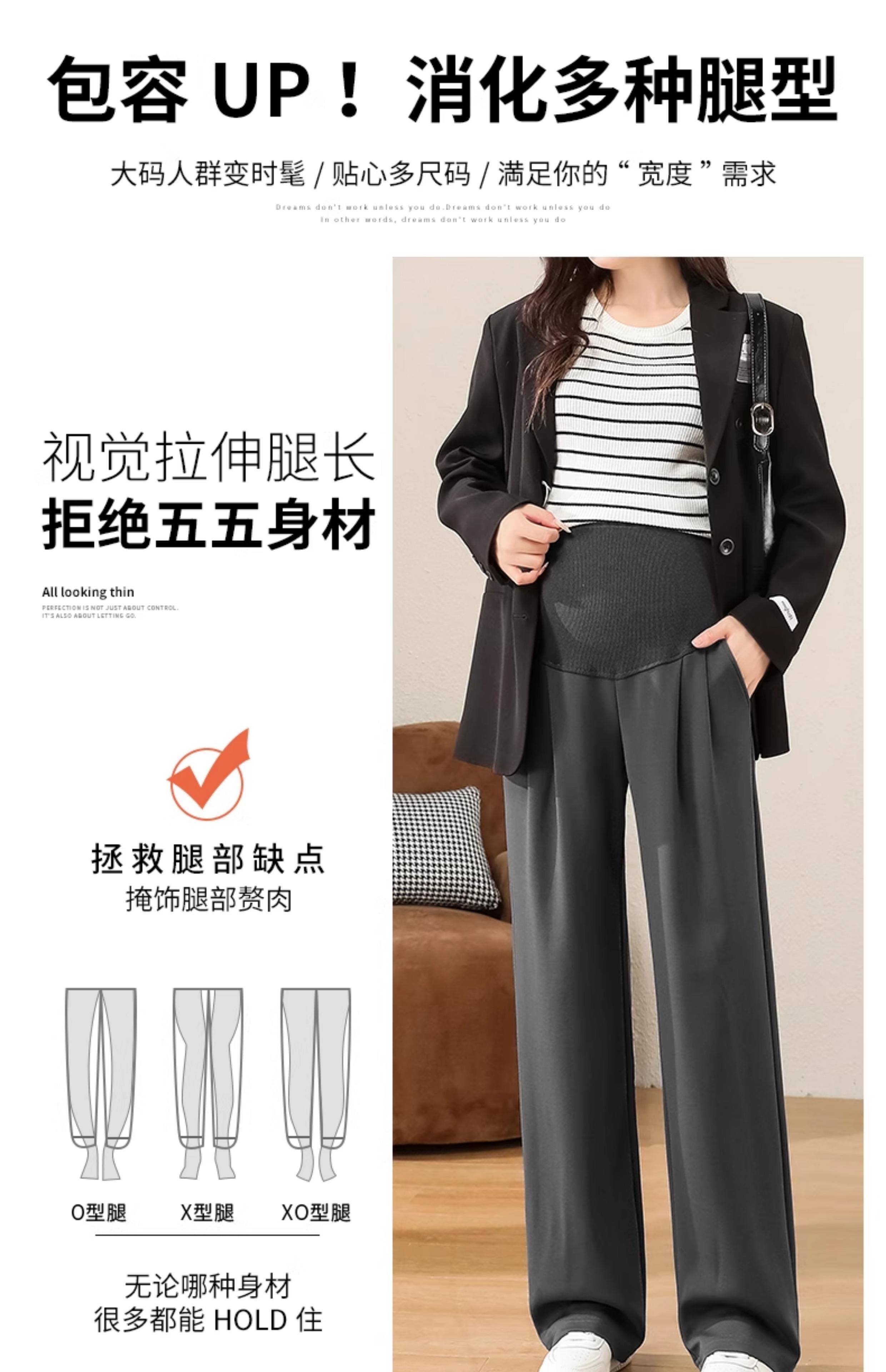 Pantalones de Pierna Ancha de Maternidad Verano Delgados Ropa Exterior para Mujeres Embarazadas Altas Final del Embarazo Verano Talla Grande Pantalones de Traje Negros Primavera Verano Largo Extendido