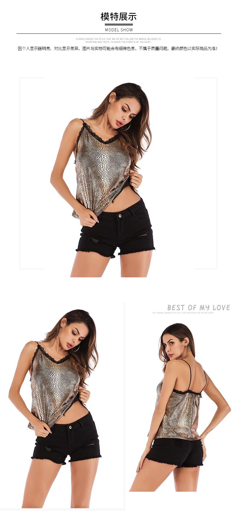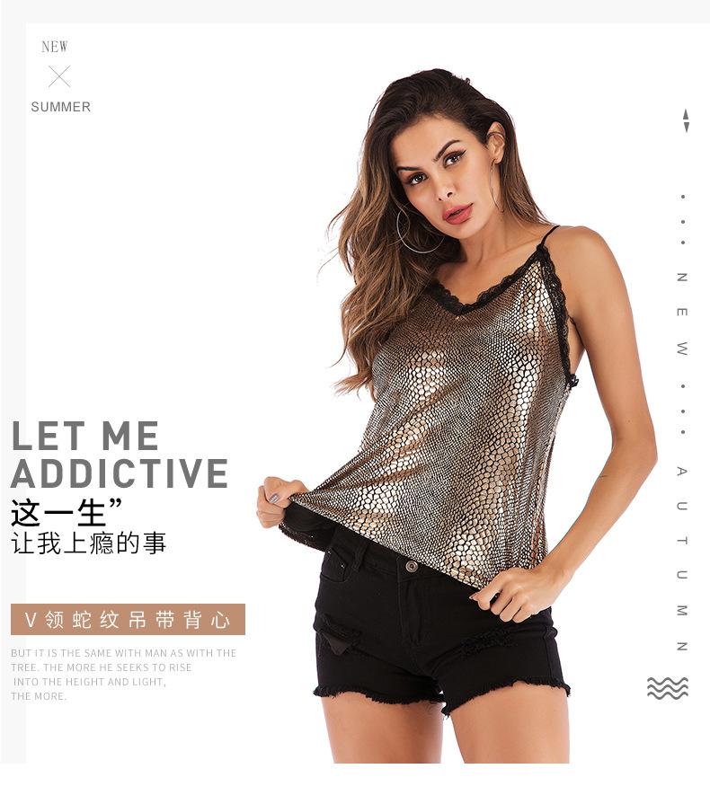 2024 Europeo y Americano Transfronterizo Encaje Sin Mangas Encaje Cuello V Estampado de Serpiente Camisola Básica Tops de Verano para Mujer al Mayoreo