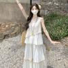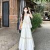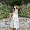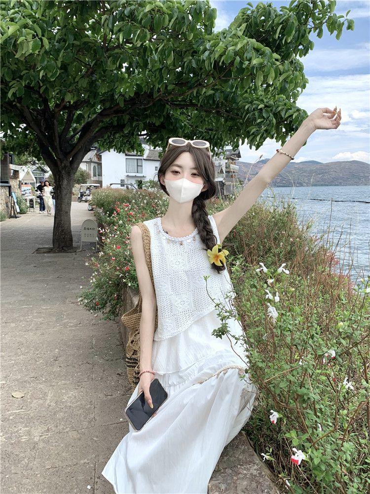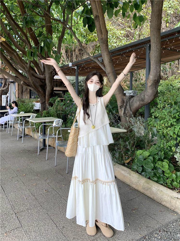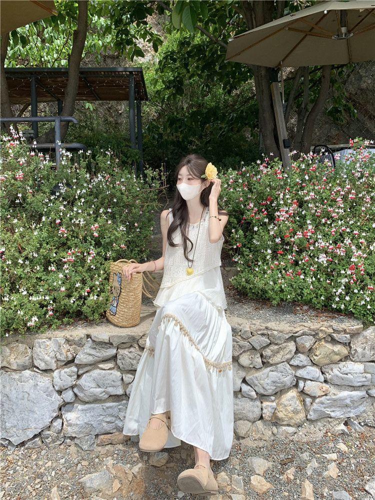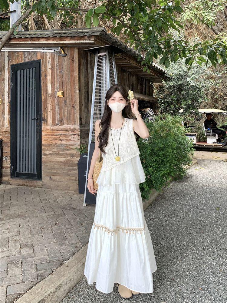 Estilo Vacacional Bohemio Camisola Falsa de Dos Piezas Ropa Exterior para Mujer Top sin Mangas Cintura Alta Media Longitud Conjunto de Dos Piezas