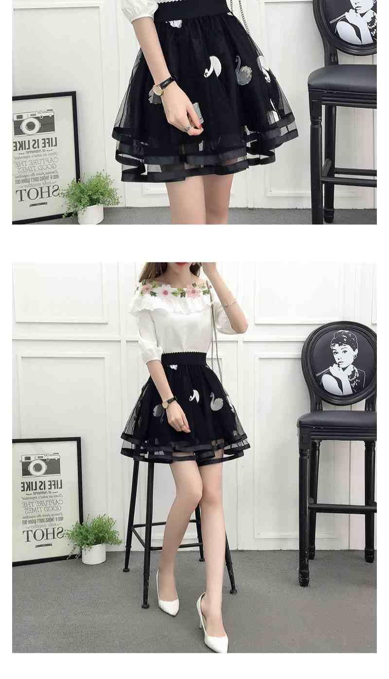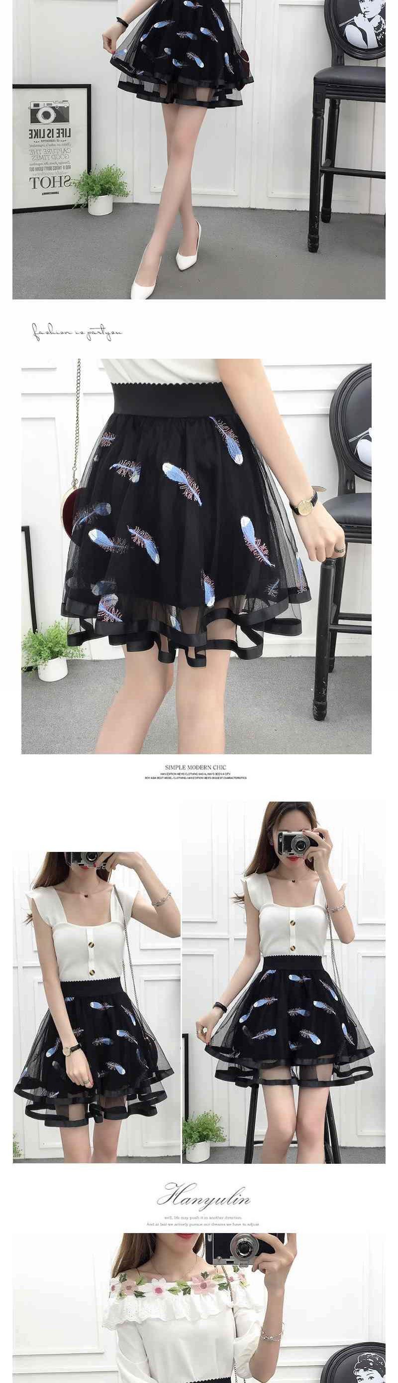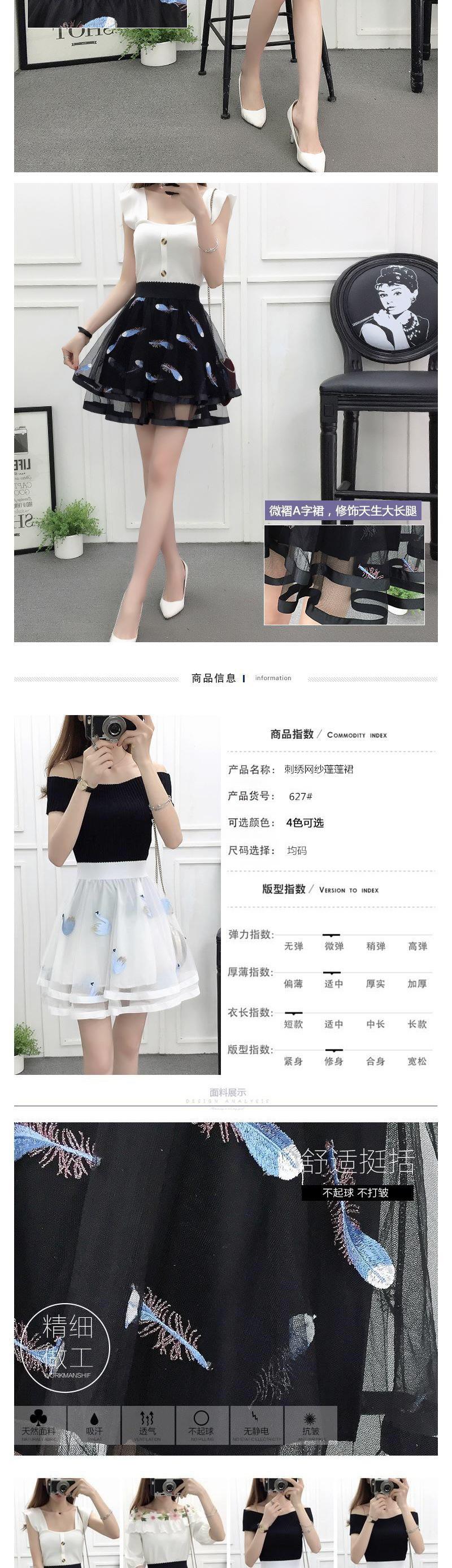 2024 Nuevo Estilo de Verano Cintura Elástica Versátil Falda Tutú Bordada Línea A Cintura Alta Falda de Malla
